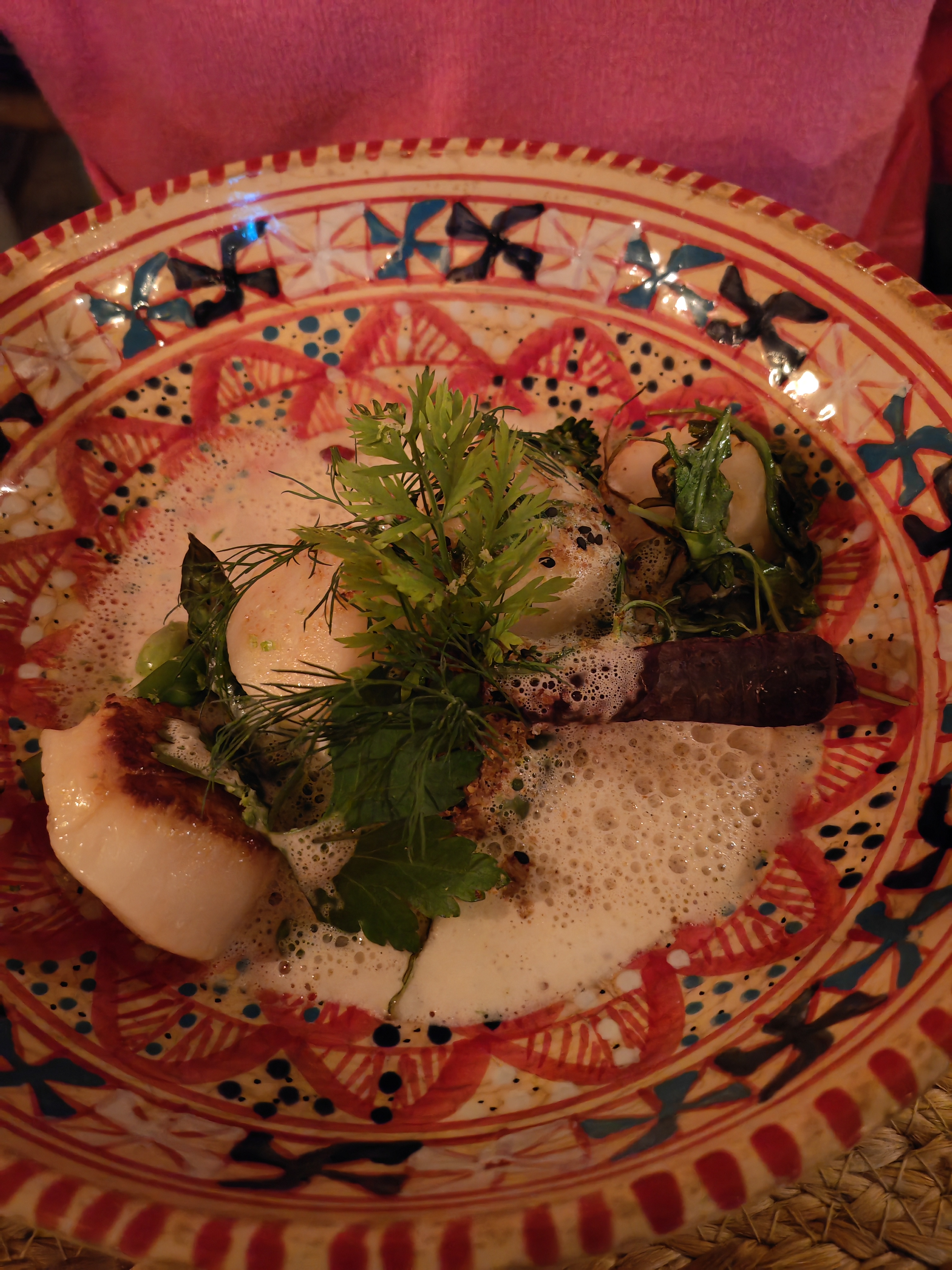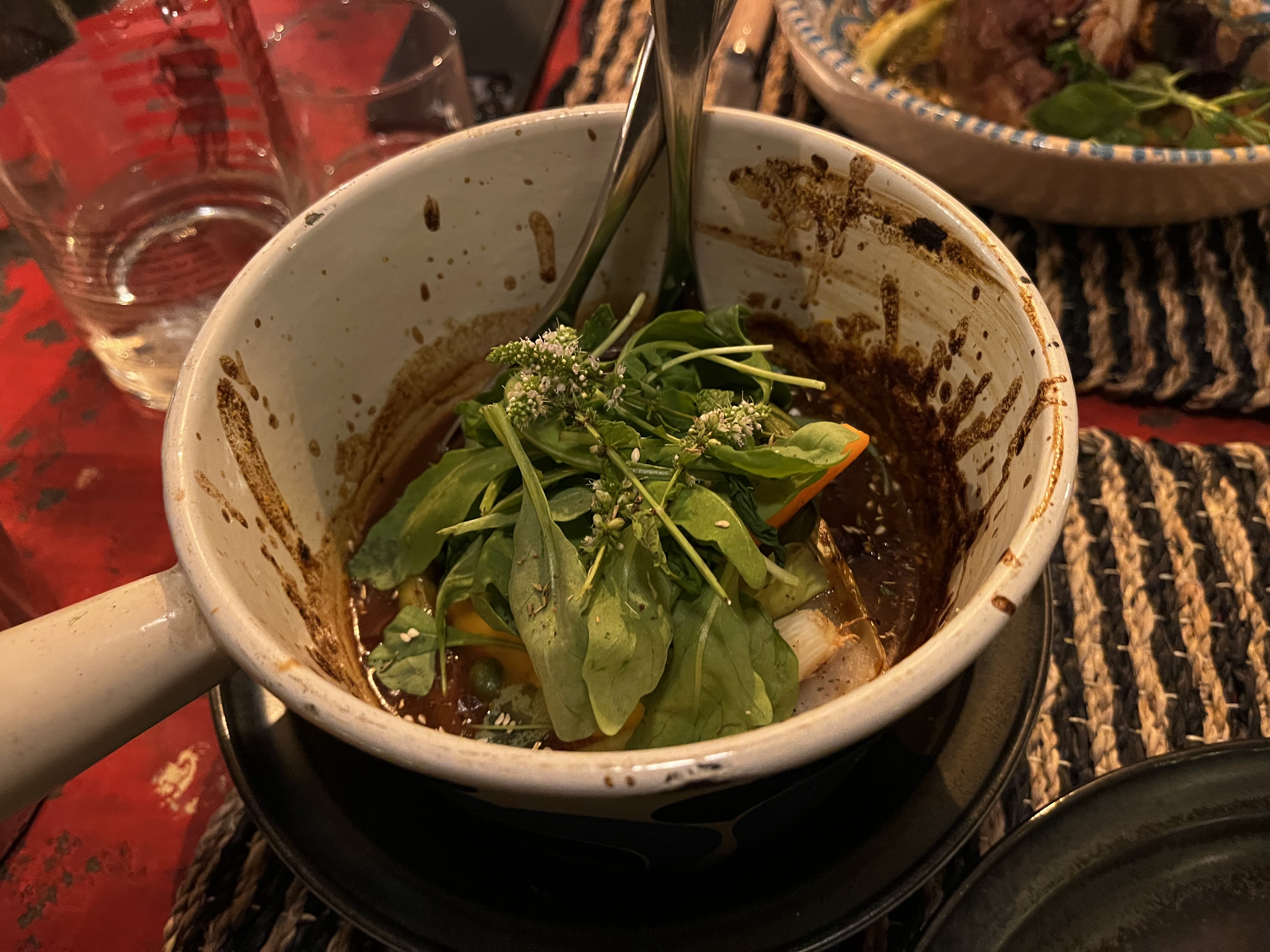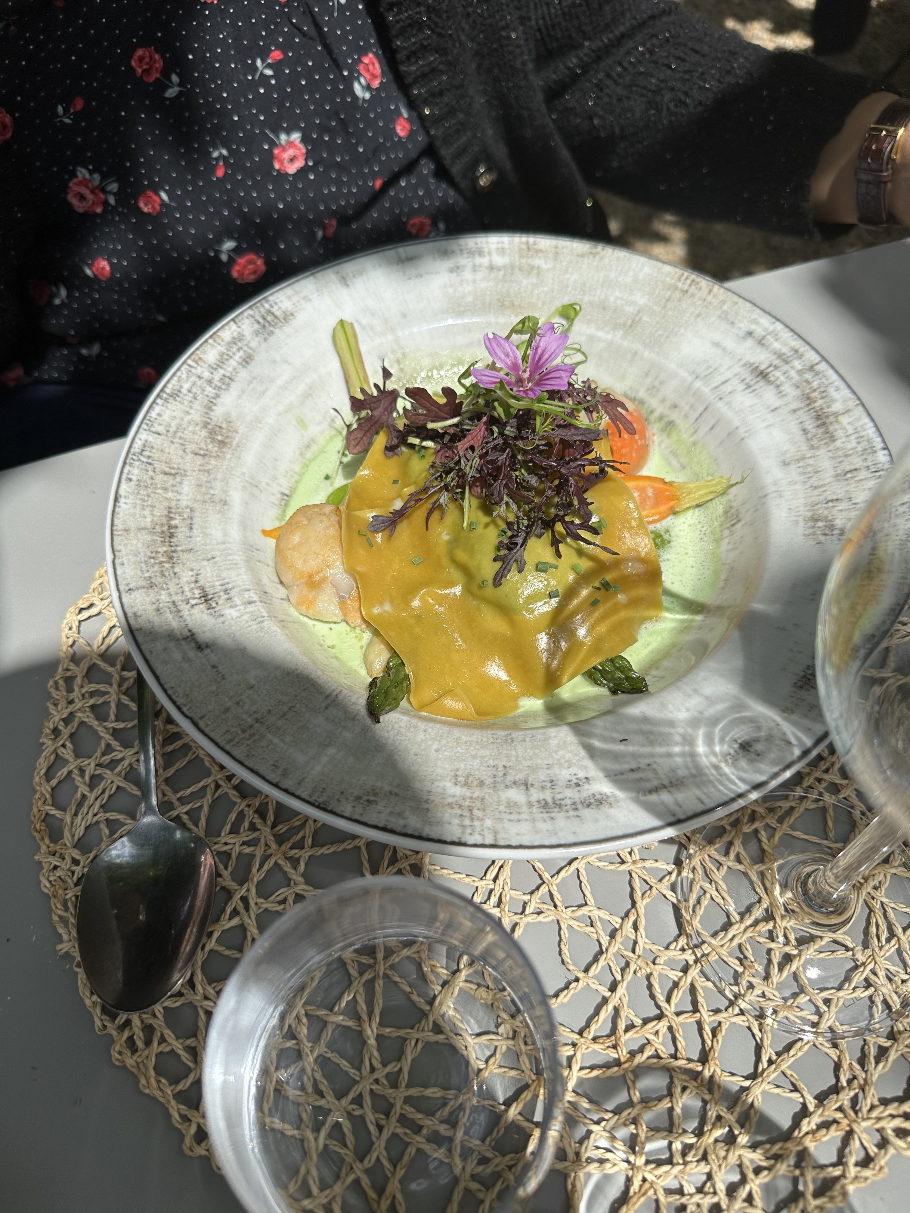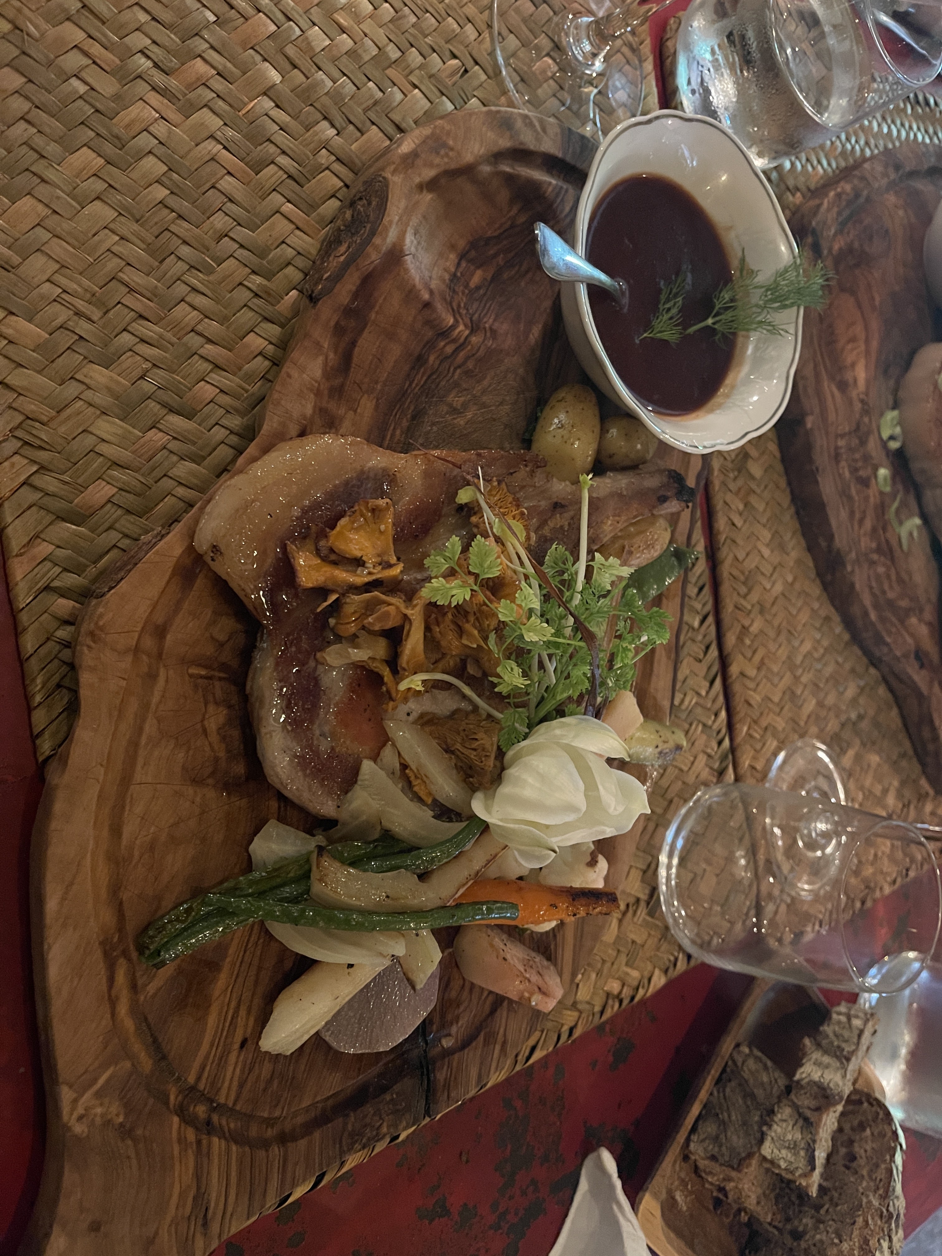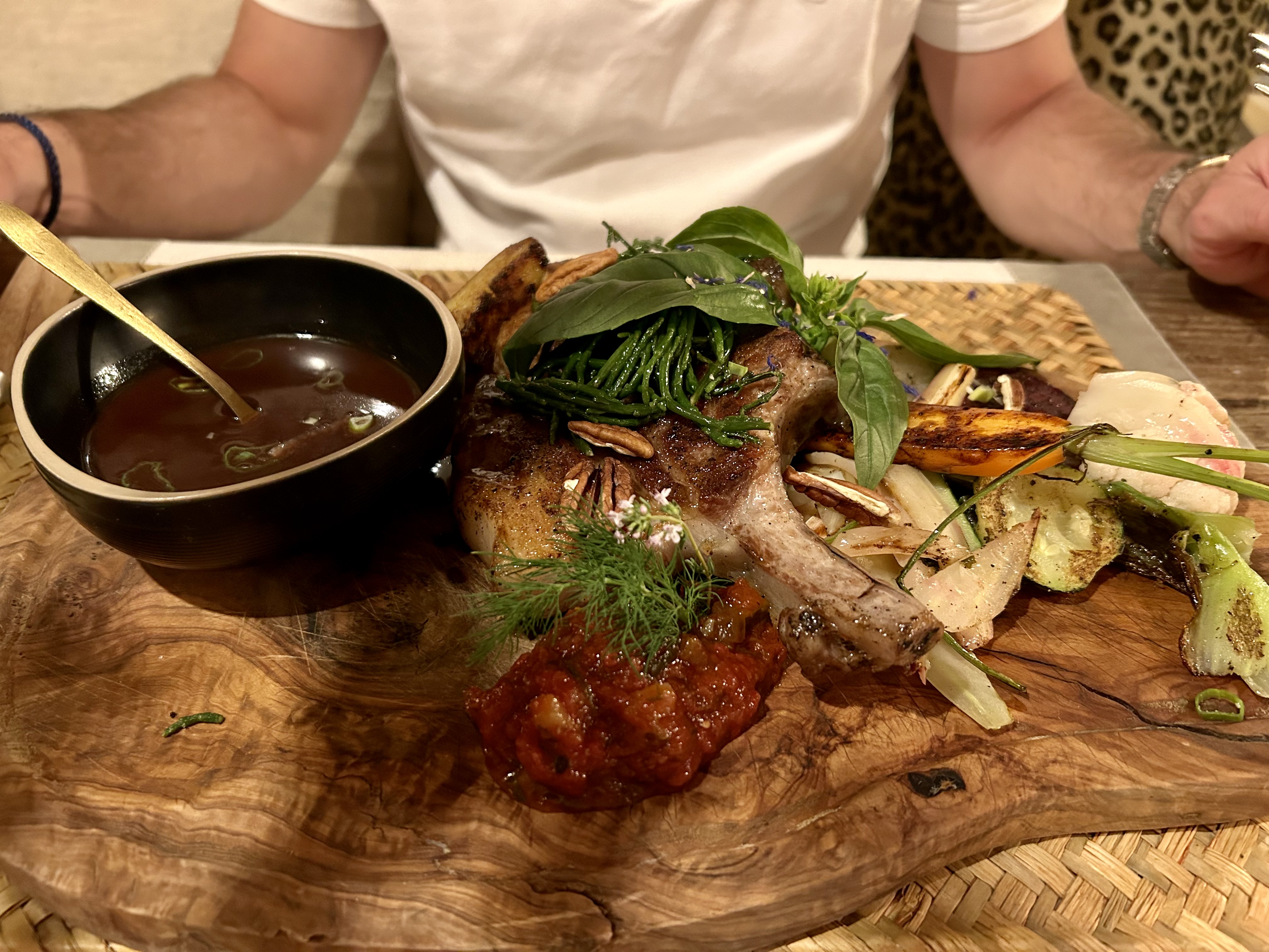 Repas très agréable dans une ambiance cosy, des plats savoureux et des vins exquis, même s'il manque un peu de discrétion : je recommencerai peut-être cet été. J'ai apprécié la rencontre gentille avec Padmé et le petit garçon extrêmement poli qui nous a dit au revoir. ☺️