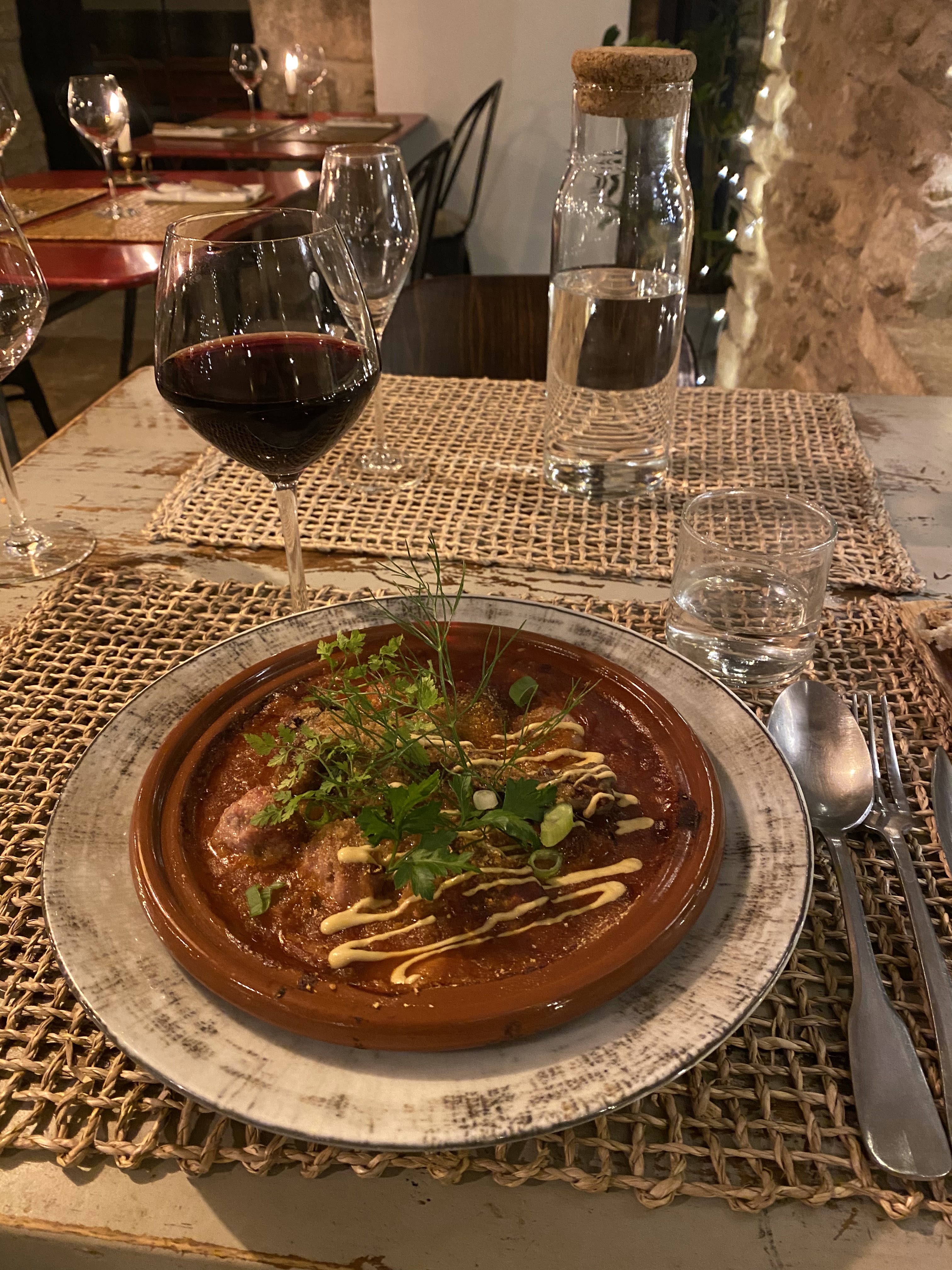 La nourriture était excellente (la meilleure salade que j'ai jamais mangée), l'atmosphère est charmante et romantique, le service est parfait et l'accueil chaleureux du séduisant jeune propriétaire est contagieux. Un endroit à ne pas manquer !