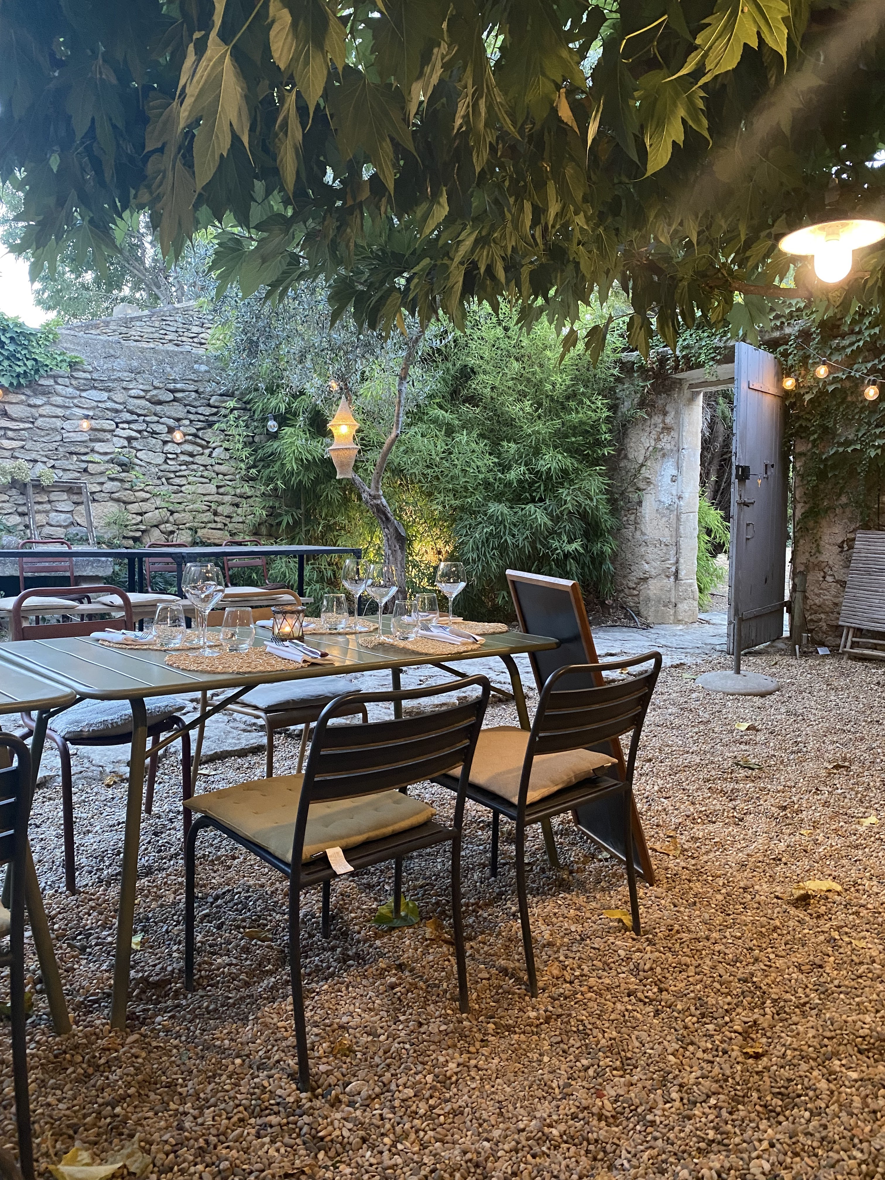 Le Mas a changé de mains depuis notre dernière visite en 2019 (et 2018, 2017 & 2016 !), mais il reste délicieux ! Le cadre dans la cour surplombée d'arbres est toujours aussi magique le soir et la cuisine est tout aussi intéressante, variée, généreuse et délicieuse. Il semble maintenant être dirigé par un jeune couple agissant comme serveur et serveuse occupé mais charmant. Nous leur souhaitons bonne chance et espérons qu'eux et le chef seront toujours là à notre retour l'été prochain.