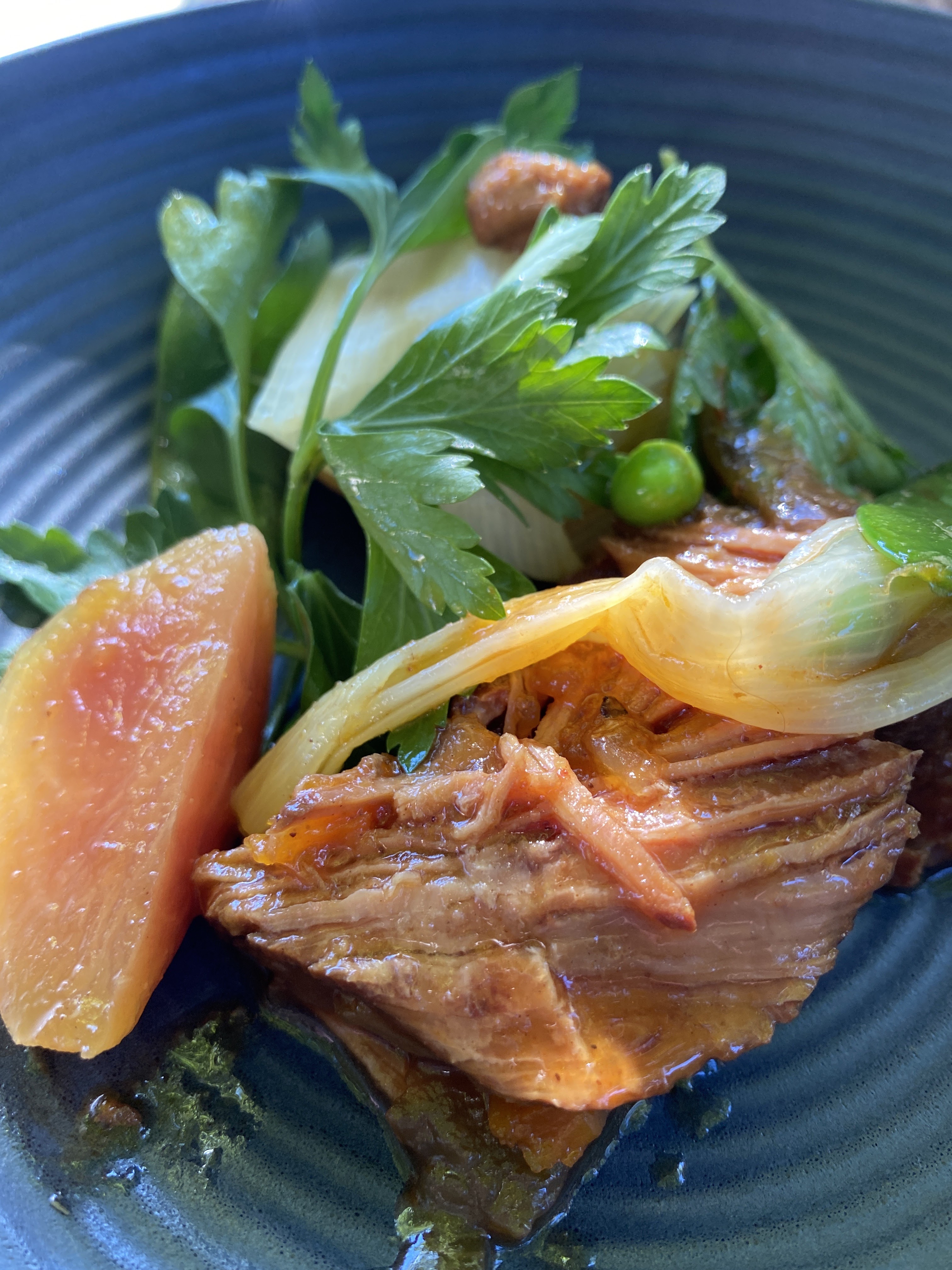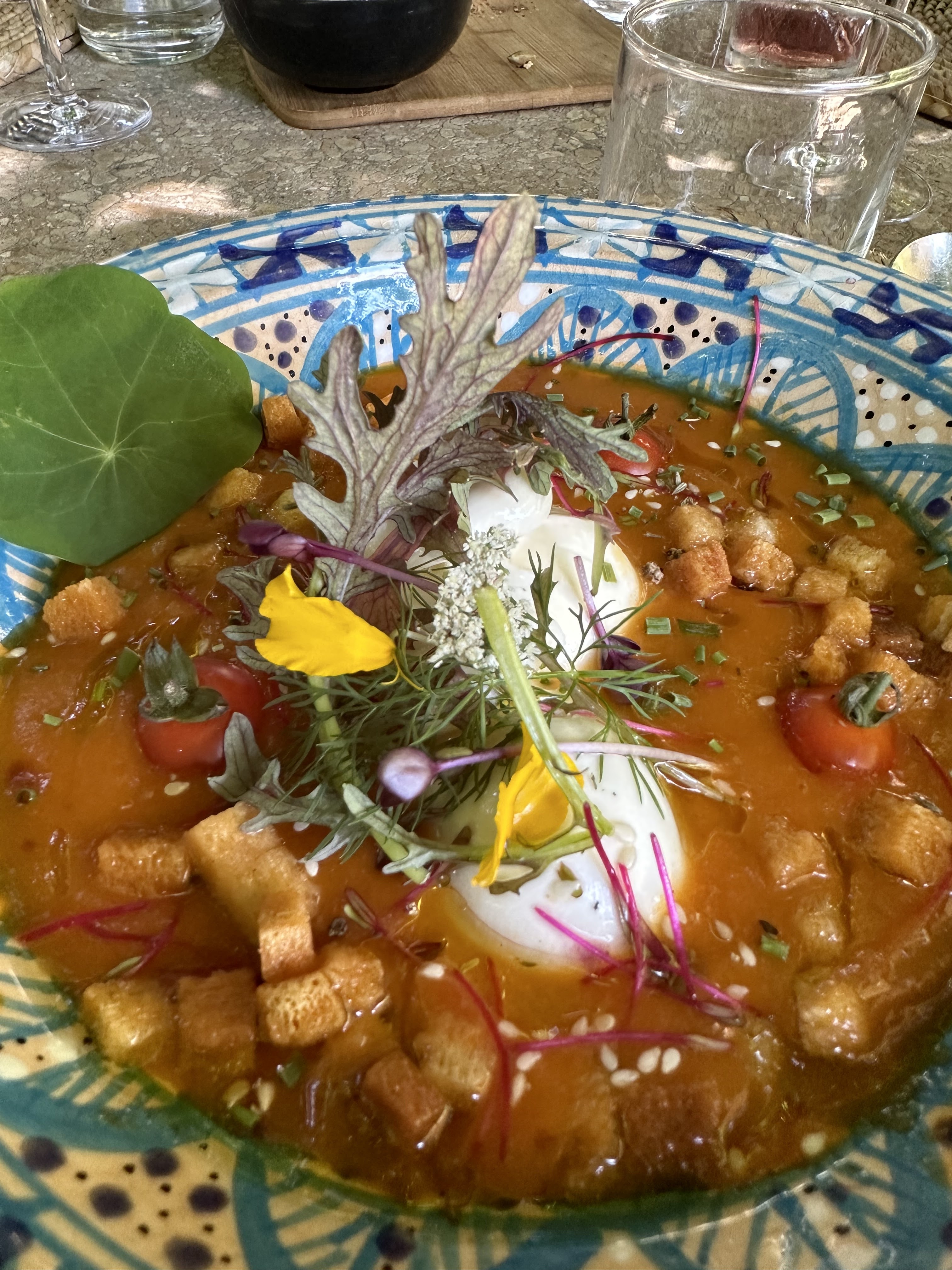 Magnifique dejeunerr à Le Mas. Jardin tres charmant et extrordinaire le soup de tomTe et les jou de boeuf