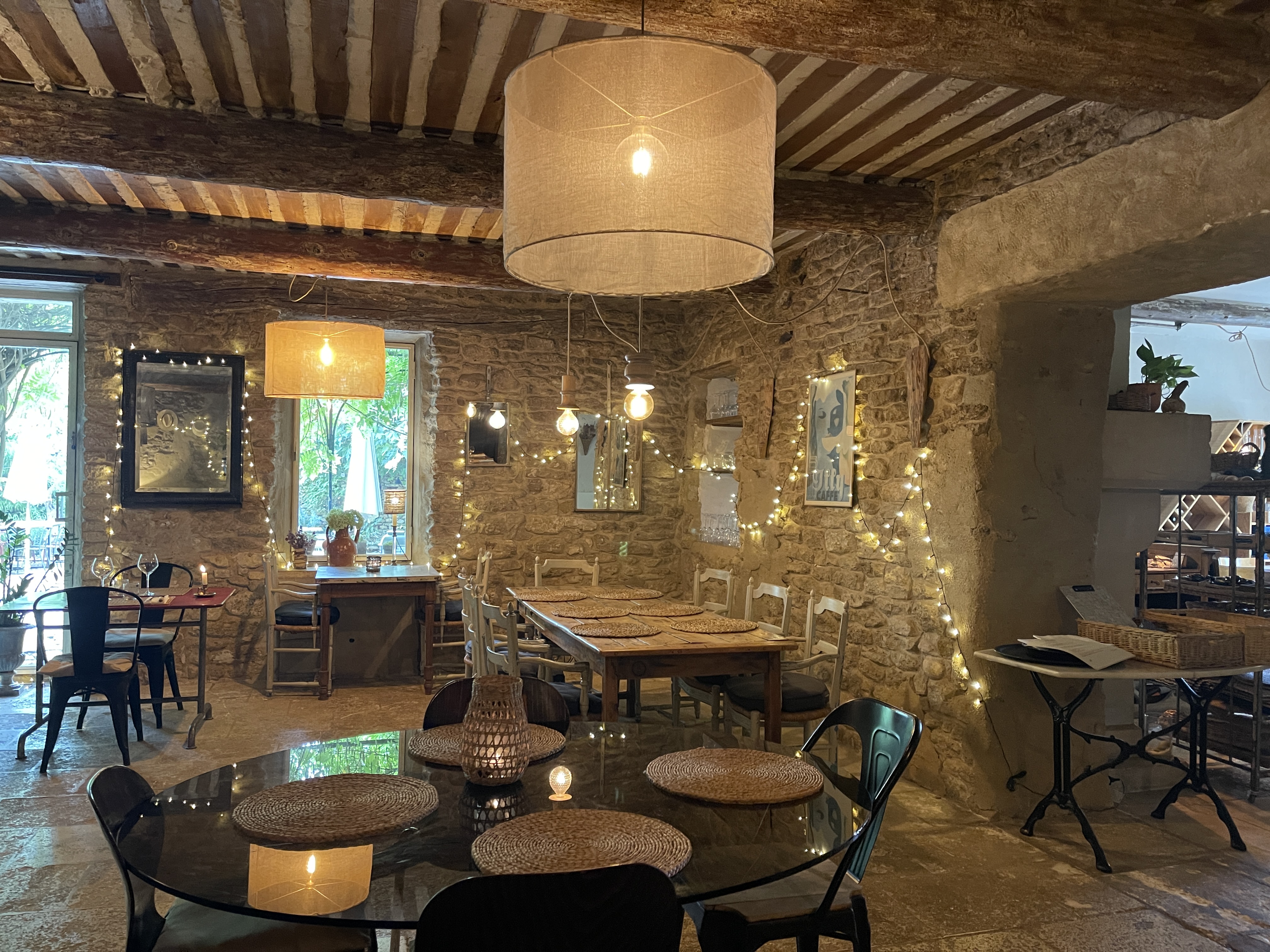 Un très beau restaurant dans un mas du Vaucluse porté par un jeune couple de Normands. Créatifs, la cuisine est raffinée et excellente. Le personnel est très accueillant.