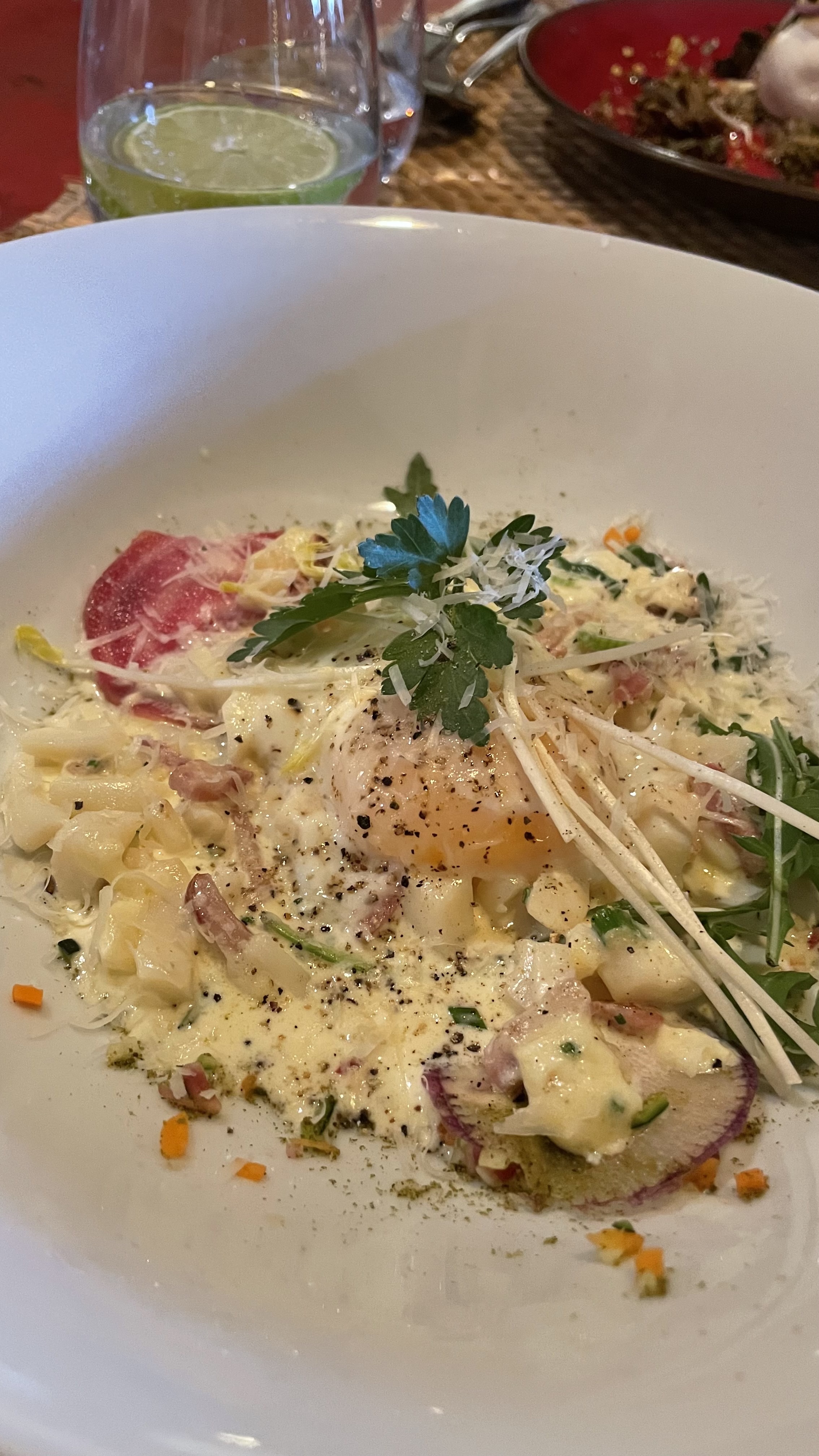 Nourriture absolument fantastique, présentée d'une manière exceptionnellement belle dans un décor de maison et d'arrière-cour! Le chef et le personnel étaient super sympas et arrangeants. J'ai hâte de revenir !
