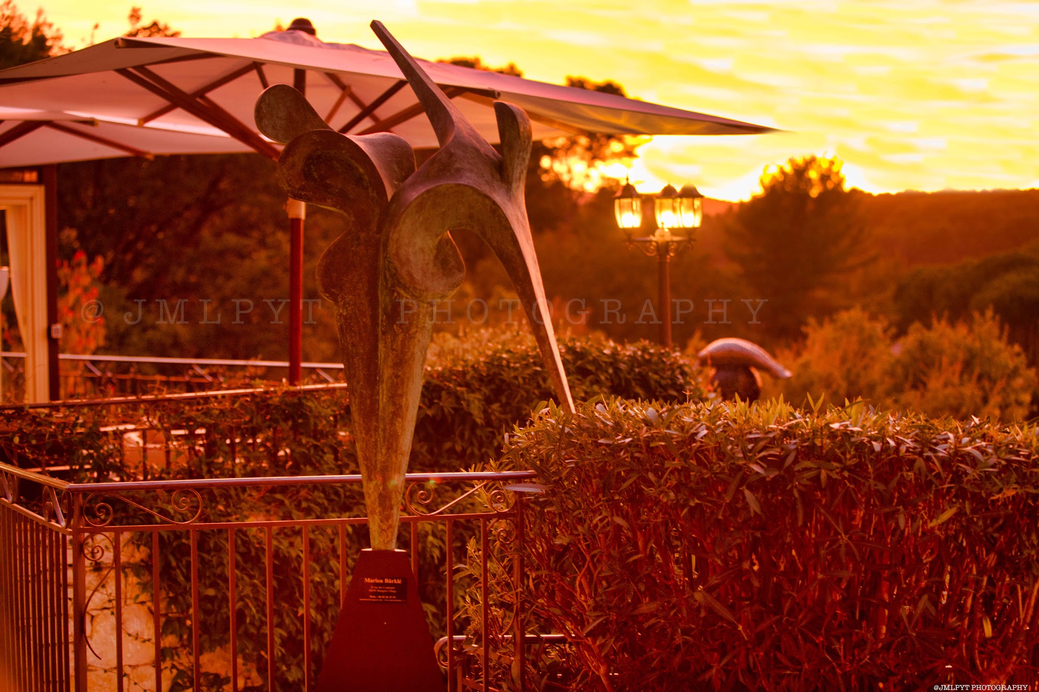 Excellente Adresse Beau Coucher de Soleil Bravo Marion Burcke Statue superbement Placée au bord de la GrandePiscine