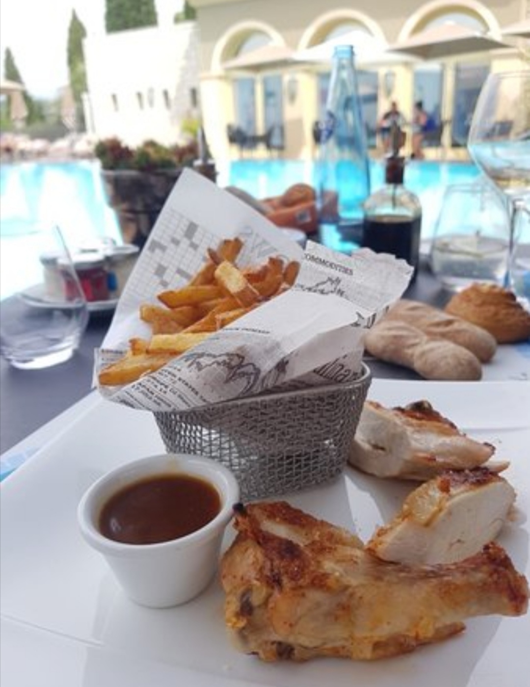 Un déjeuner à la piscine, un lieu chic et convivial , accueil, service,et repas au top.