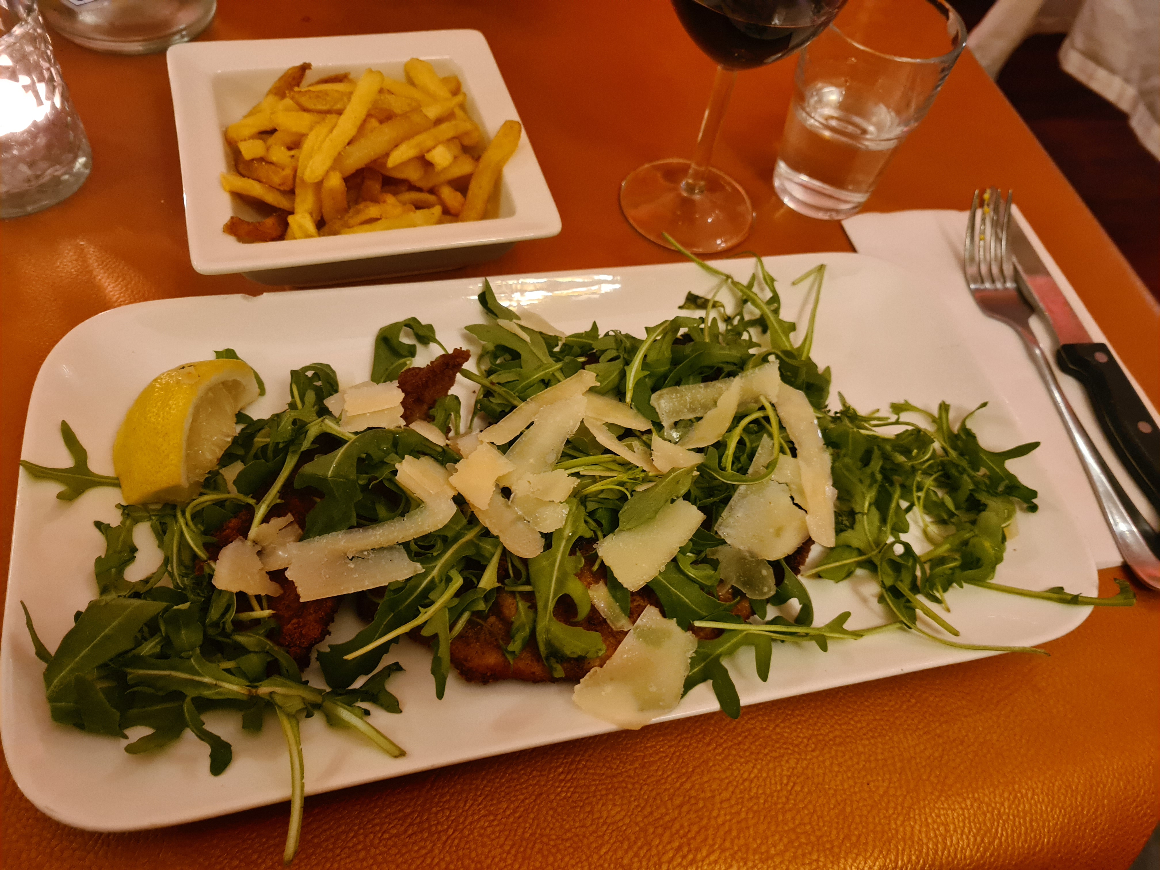 Nourriture abondante et correcte. Carte des vins limitée. Un peu cher.