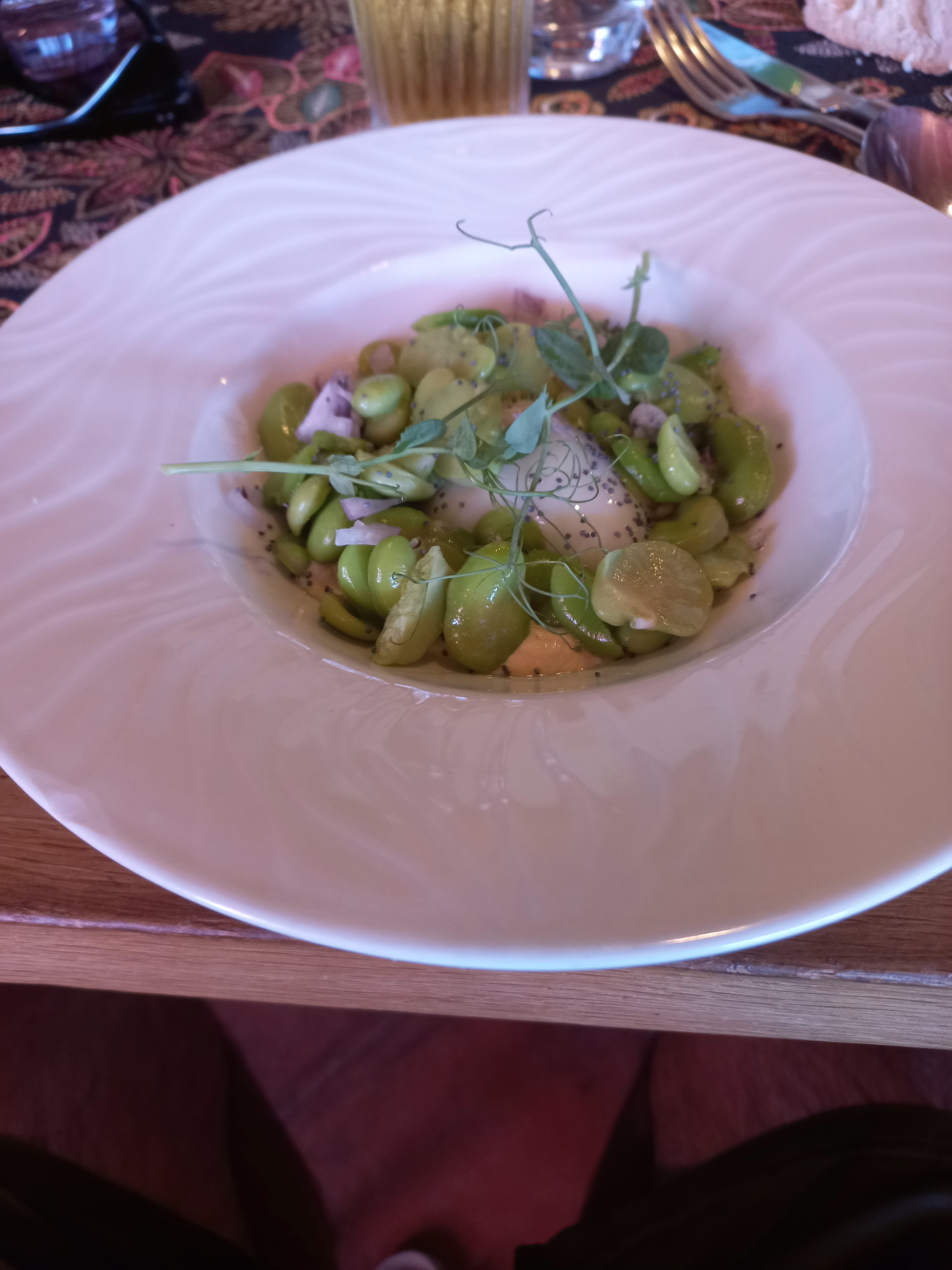 Un excellent moment ...panorama d exception déjà ...un très bon accueil, un service remarquable sourire disponible attentionné vis a vis des clients quand au repas un pur moment de belles couleurs dans l assiette mention pour la salade de fève,met de qualités goûteux copieux je recommande et nous reviendrons Très commerçant aussi !!!!!