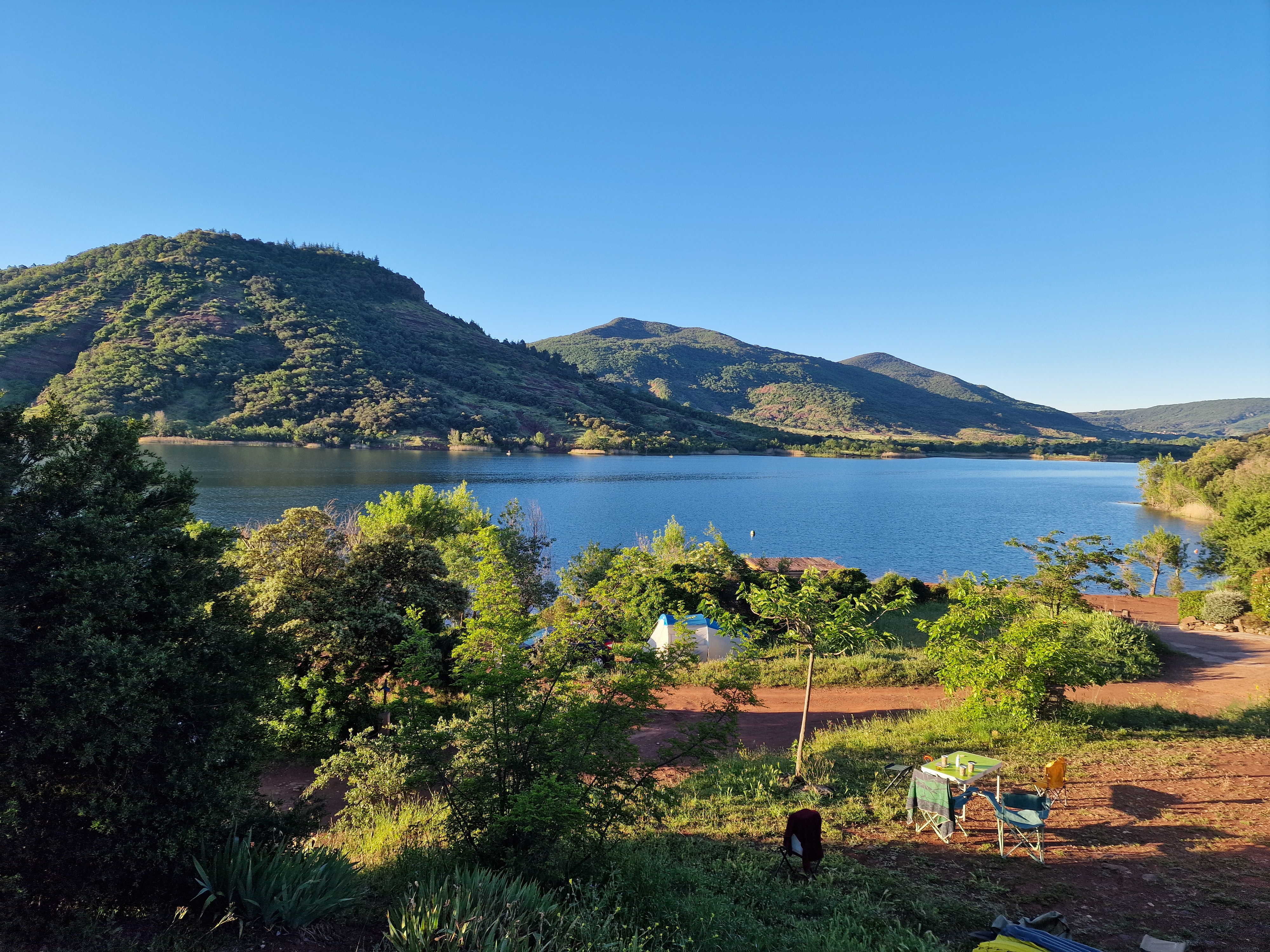 Emplacement fabuleux. magnifique vue sur le lac de Salagou . Camping au bord de l'eau