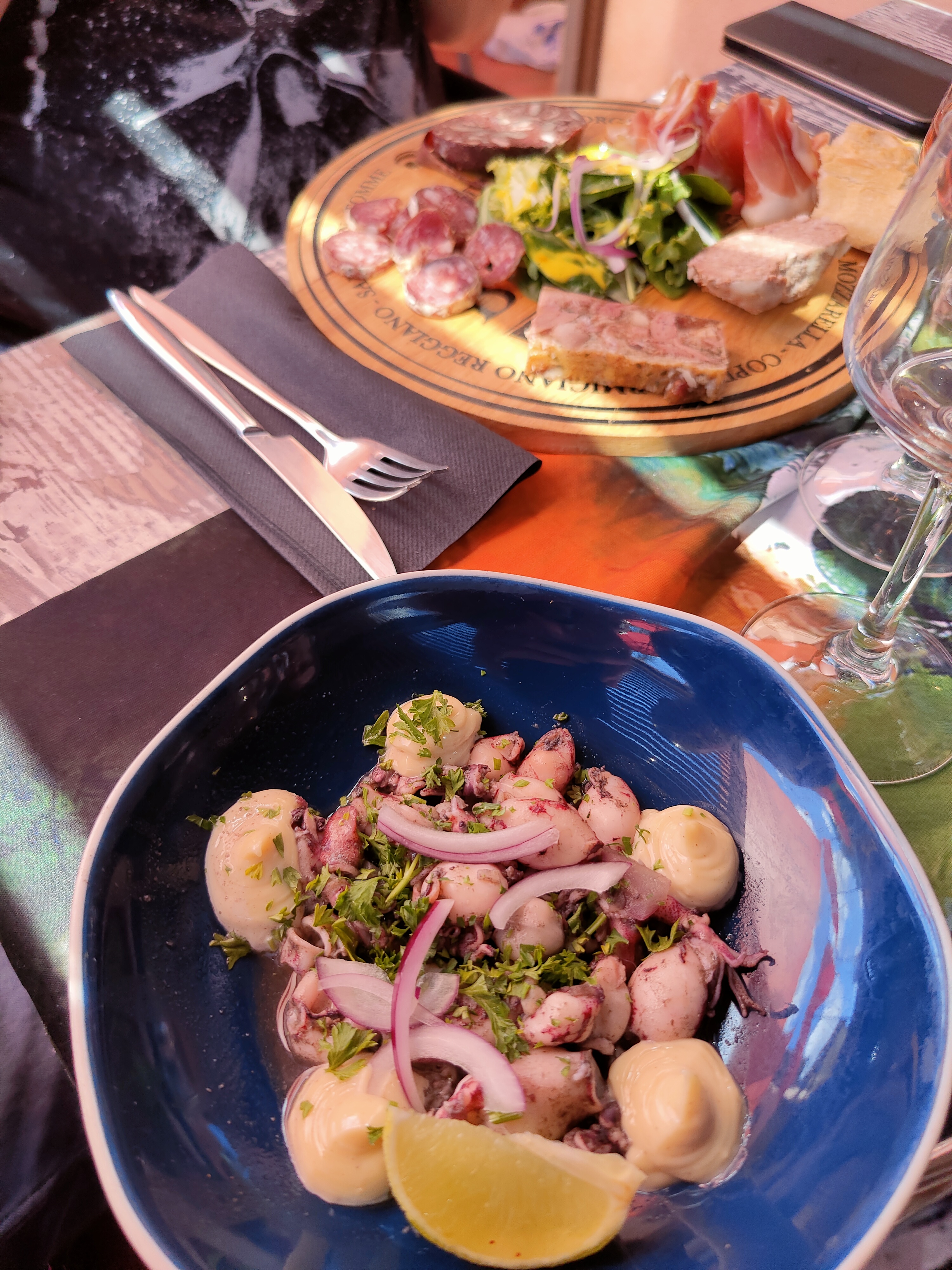 Vue magnifique. Très bon repas, en particulier le poulpe. L’equipe de service gagnerait à être mieux pilotée. C’est pas bien grave car les clients sont en vacances et patients. Cuisine un peu désorganisée également lors de notre deuxième visite : plus de laitue à 13h - il a fallu attendre pour qu’ils en trouvent et puisse faire la salade niçoise. Le chef est super attentif: il est venu à notre table pour s’enquérir de mes allergies. Au global c’est une très bonne adresse.