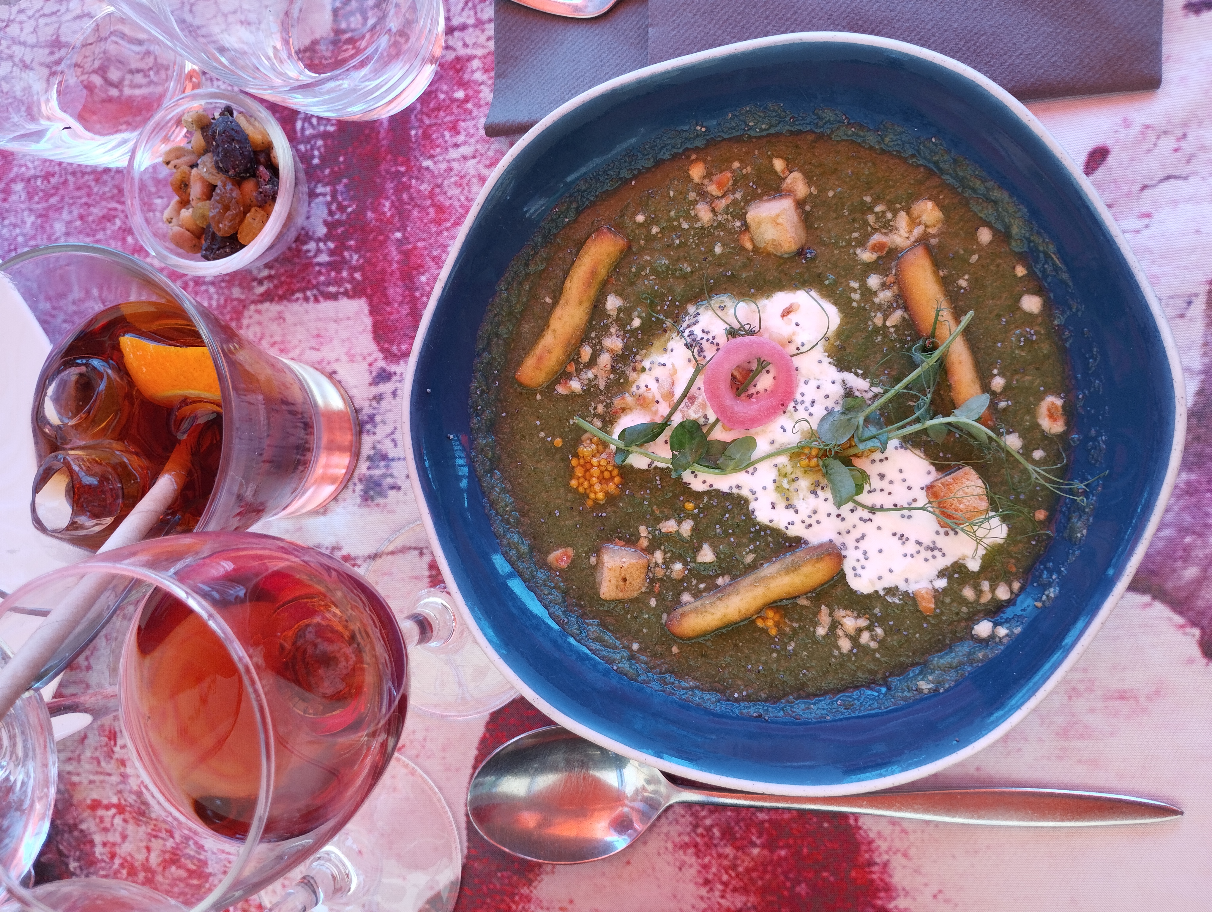 Une vue magnifique. Un repas délicieux de l'oginalité dans les plats avec un subtil dosage des textures, des goûts, des couleurs et des saveurs. Un excellent moment agrémenté d'un excellente carte de vin régionaux. On sent que les produits sont frais et de circuit court. A conseiller fortement. Il est vivement recommandé de réserver.