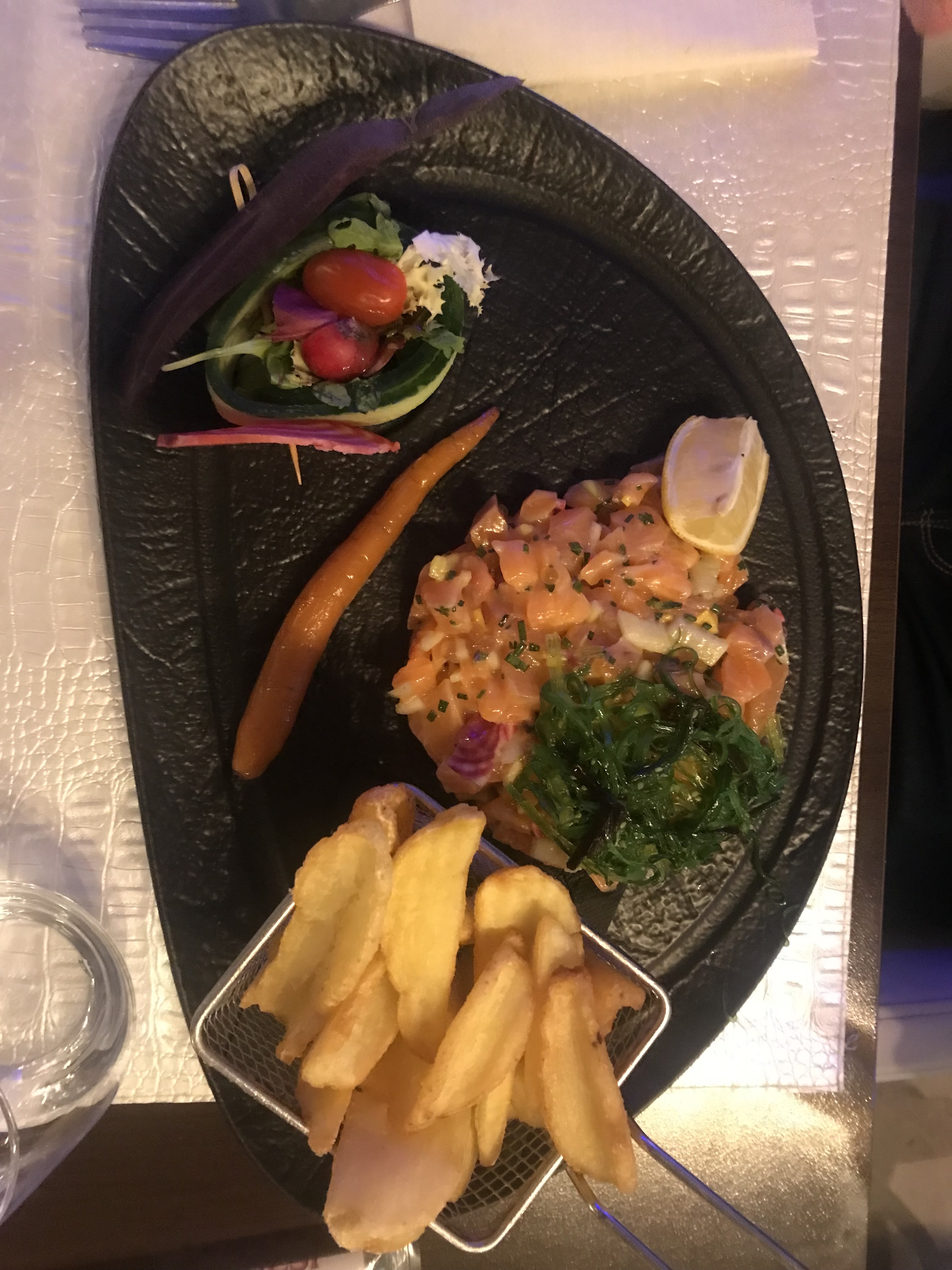 Je suis venue plusieurs fois avec des amis (ies) et j'aime beaucoup cet endroit. Le personnel est sympa, belle présentation des plats, très bons produits avec un bon rapport qualité/prix. J'ai été surprise la première fois que l'on ai apporté autant d'attentions à ma p'tite chienne dès notre arrivée Je recommande vivement...