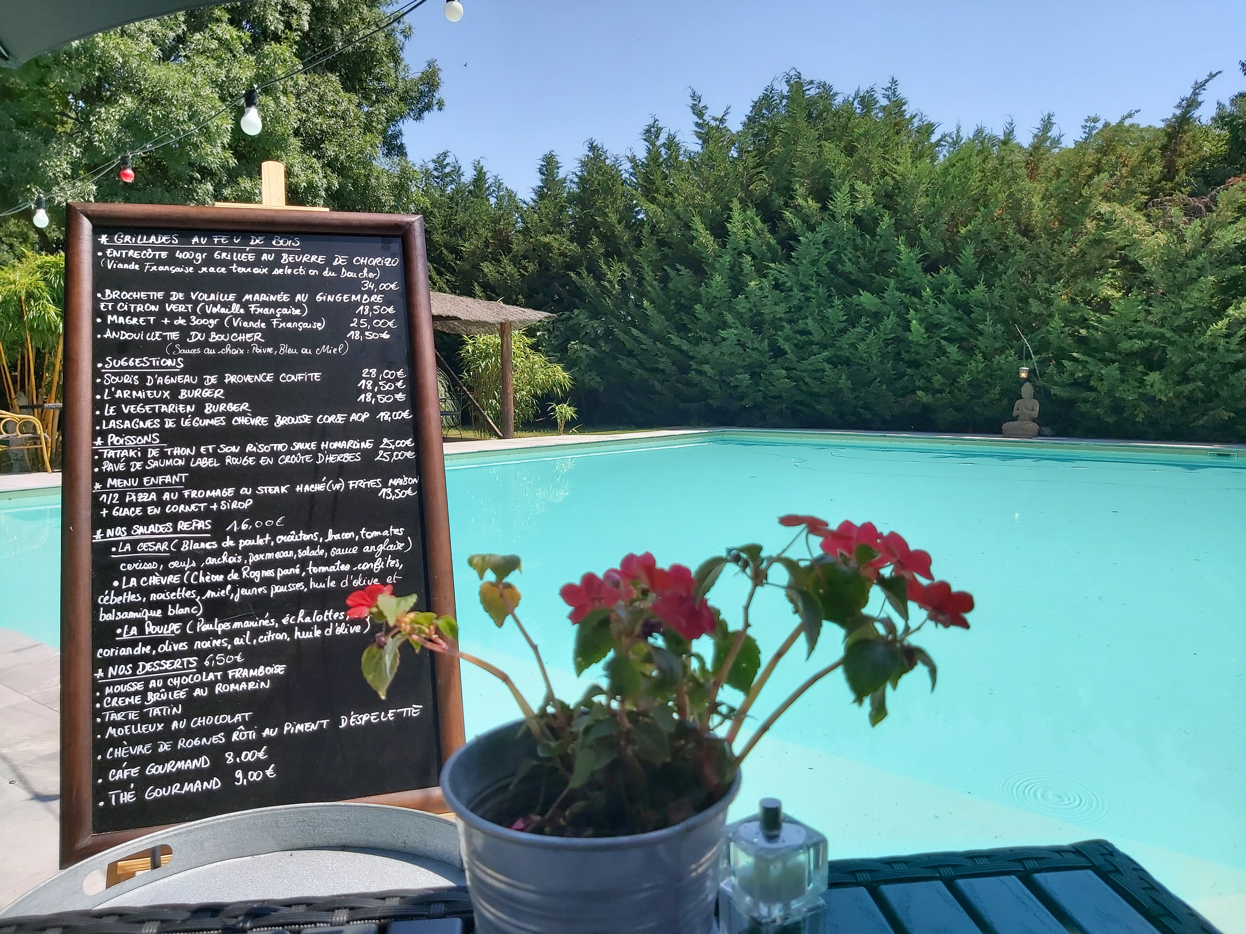 Très bel endroit pour aller manger, ambiance calme, zen et une bonne carte à déguster autour de la piscine
