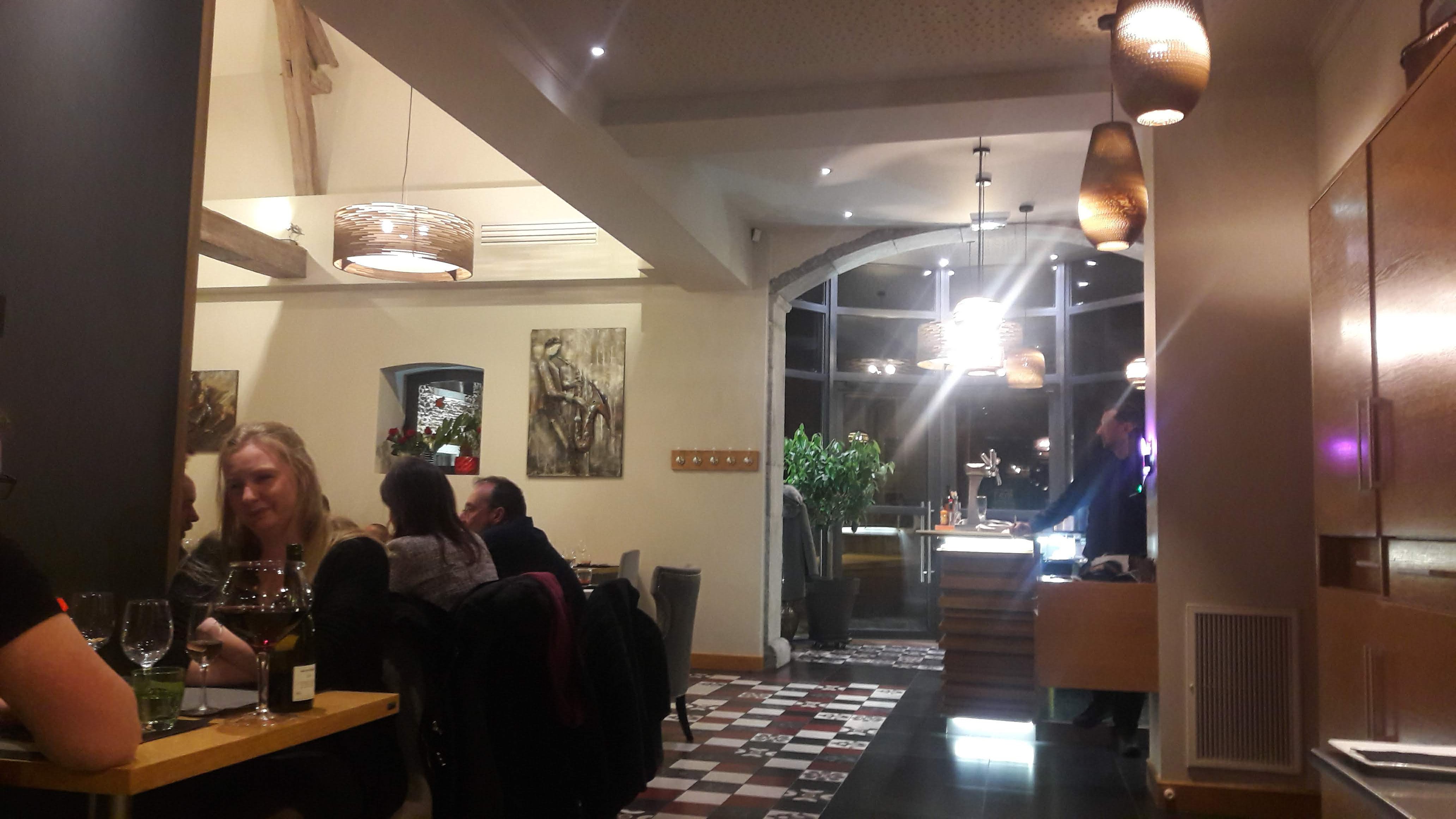 Malheureusement assez déçue. C est correct dans l ensemble au niveau de la cuisine mais on ne fait pas wahou! Il manque des petits détails qui font la différence au niveau des assaisonnements et des jeux de chaleur. Sur la carte la truffe n est pas annoncée dans le plat alors que c est un gout clivant. En revanche le dessert au chocolat était très bon et rattrapait le tout. Au niveau du service en revanche même si tous les serveurs sont très courtois et sympathiques, il y a plusieurs erreurs. Pareil, des petits détails qui accumulés enlèvent l effet wahou. On doit leur rappeler de nous amener le vin, ils ne font pas le tour de la table pour récupérer ou poser chaque assiette, oubli de sauce au chocolat sur le dessert d un convive. Aussi le service était très long. En 1h30 nous n avions eu que l amuse bouche et l entrée. Autrement la salle est agréable et c est facile d accès et de parking.