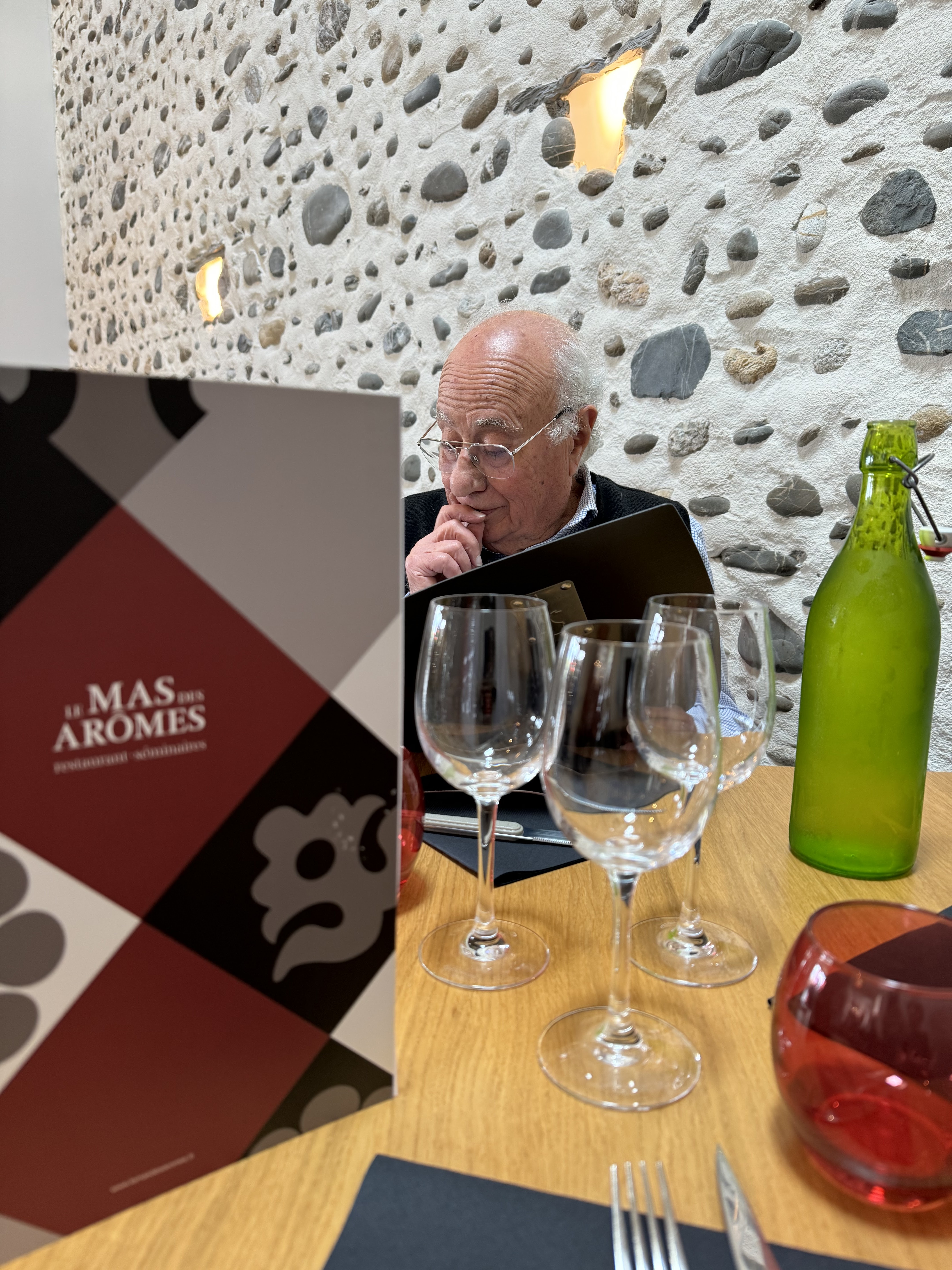 Cela fait quelque fois que nous venons au Mas des arômes. L'accueil est toujours aussi bon et convivial. Nous avons été reçus par le patron qui prend le temps de discuter, de reconnaître ses clients et d'avoir le petit mot de bienvenue, en l’occurrence il s'agissait de la première fois que notre fille de 12 ans venait dîner dans ce restaurant pour la récompenser de sa très bonne année scolaire. La cuisine est fine et exquise, d'ailleurs le chef a fait le tour des tables pour échanger avec chacun et a là aussi pris de l temps de discuter et de parler de sa cuisine et de ce qu'il veut transmettre. Au final, c'est encore une excellente soirée. A quand la prochaine?