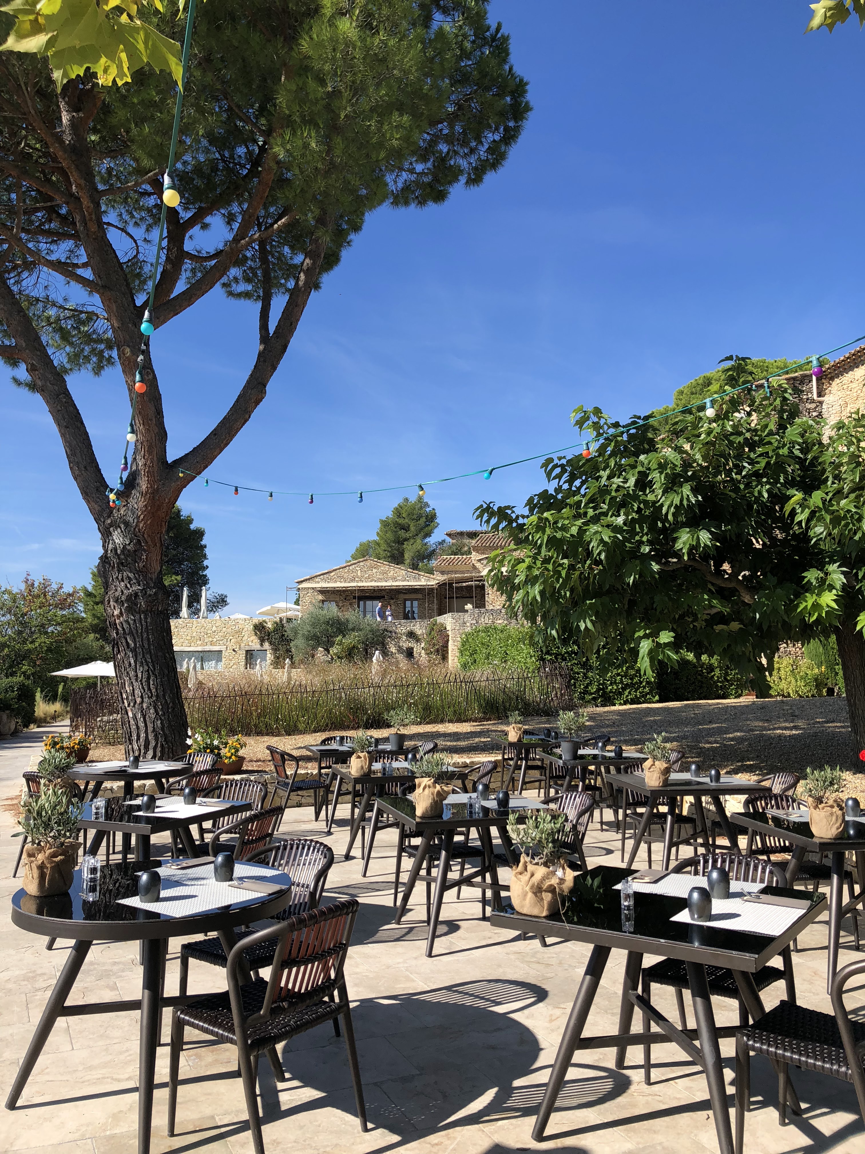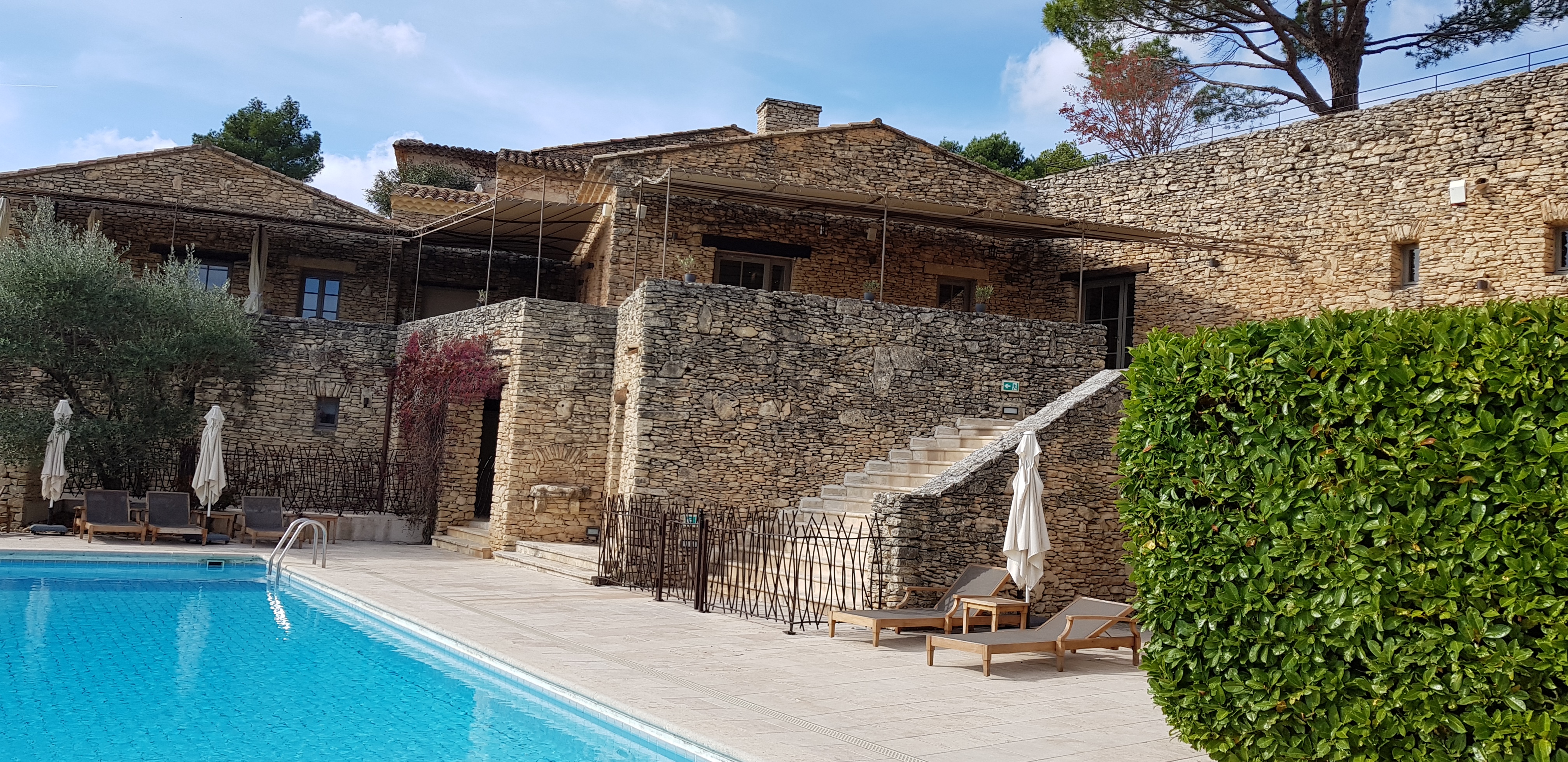 Très déçue de l'état de la chambre (fissures au plafond, poussière dans la salle de bains et joint douche sale, traces de main noire sur la porte des toilettes et le jardinet mal entretenu (plusieurs plants de lavandes morts et pied de parasol tout rouillé), du dîner (veau sec que nous n'avons pas fini), du manque de confort du lit (ressort saillant) et des chaises sur la terrasse du restaurant (en bois sans coussin). Nous nous faisions une joie de s'évader un week-end en amoureux mais nous avons constaté avec regret que cet hôtel n'était pas digne d'un 5 étoiles. Nous avons en partant et après avoir réglé integralement nos suppléments signalé gentiment nos remarques à un employé qui les a bien recueilli mais nous n'avons même jamais reçu un e-mail d'excuses de la part de la direction. Tellement décevant. Je n'aurais pas écrit ce commentaire autrement. Nous n'y retournerons donc jamais. Autrement le site est très joli et calme assez proche de Gordes et le personnel agréable.