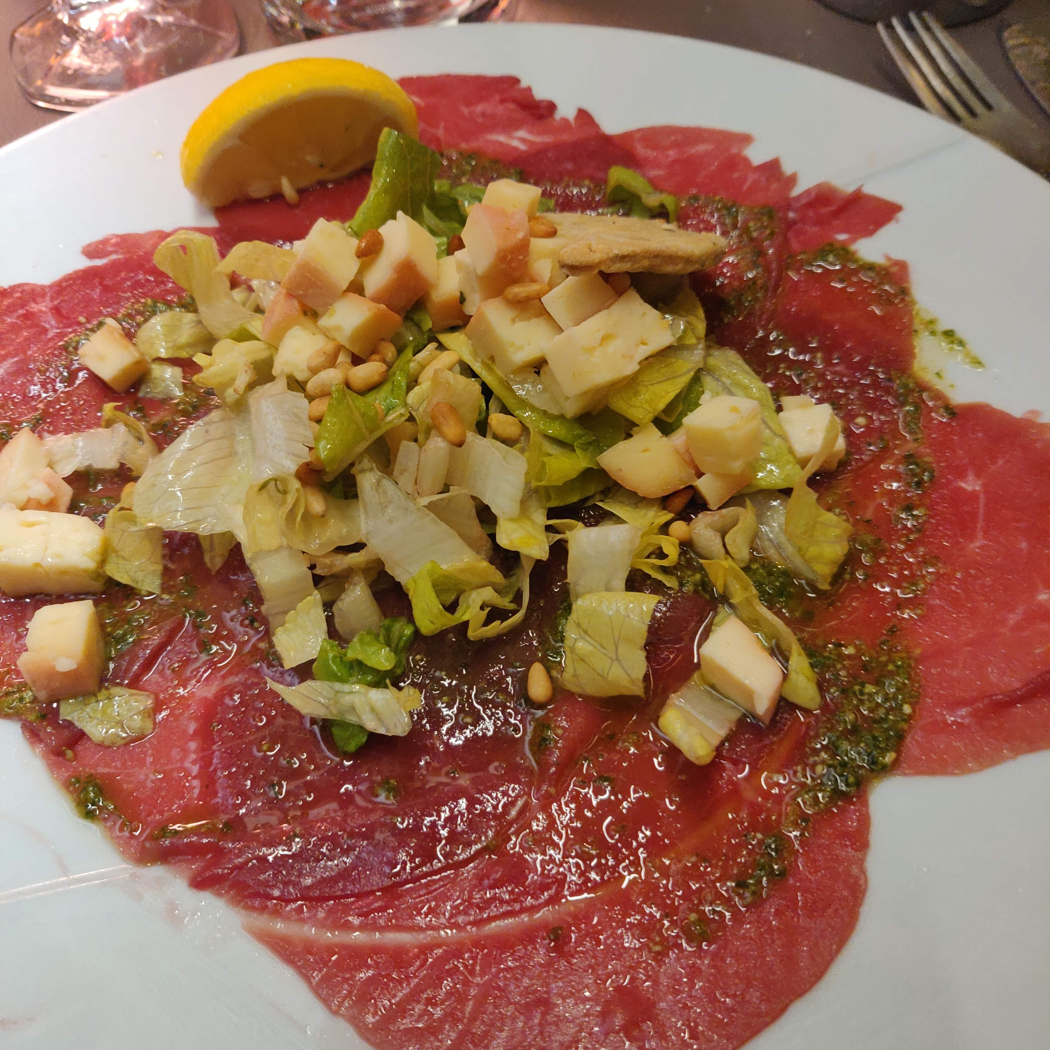 Cadre magnifique Dîner correct avec un bon rapport qualité-prix. Petit plus, le carpaccio à volonté. Belle soirée en duo