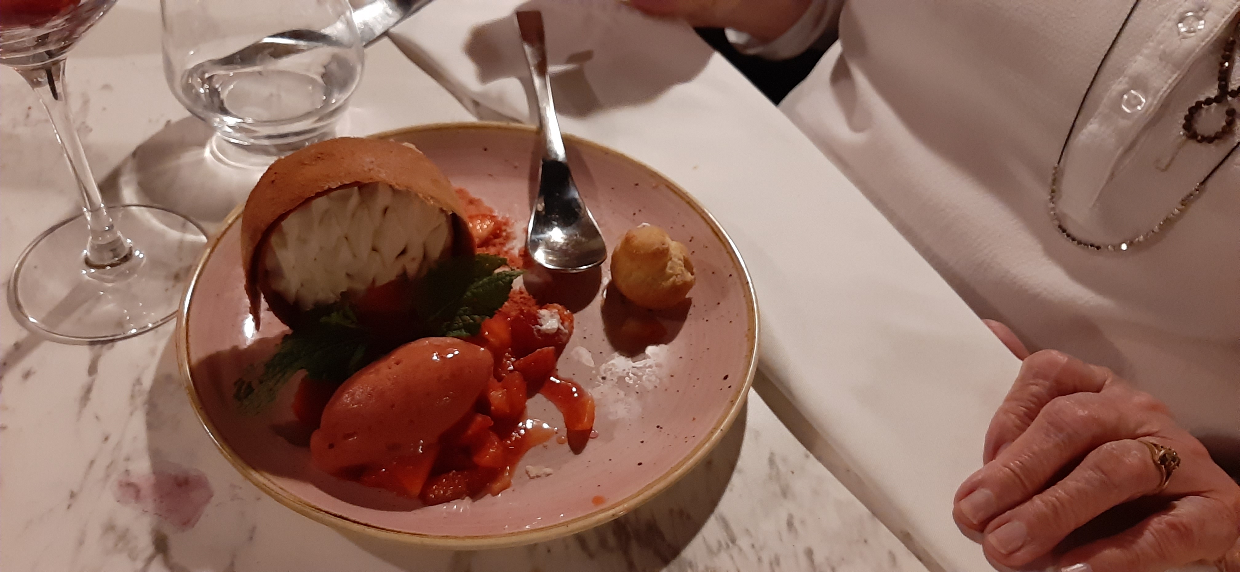 Personnel très agréable, pas insistant comme dans les autres restaurants ce qui est un gros plus. La nourriture était vraiment excellente, j’ai découvert que les fraises chaudes étaient un délice ! Endroit plutôt romantique pour un couple, nous avons été bluffés et avons passé une excellente soirée. Restaurant à tester absolument ! Nous y reviendrons. Dommage que les tables soient très proches les unes des autres et que les 3 robinets des toilettes ne fonctionnent pas...