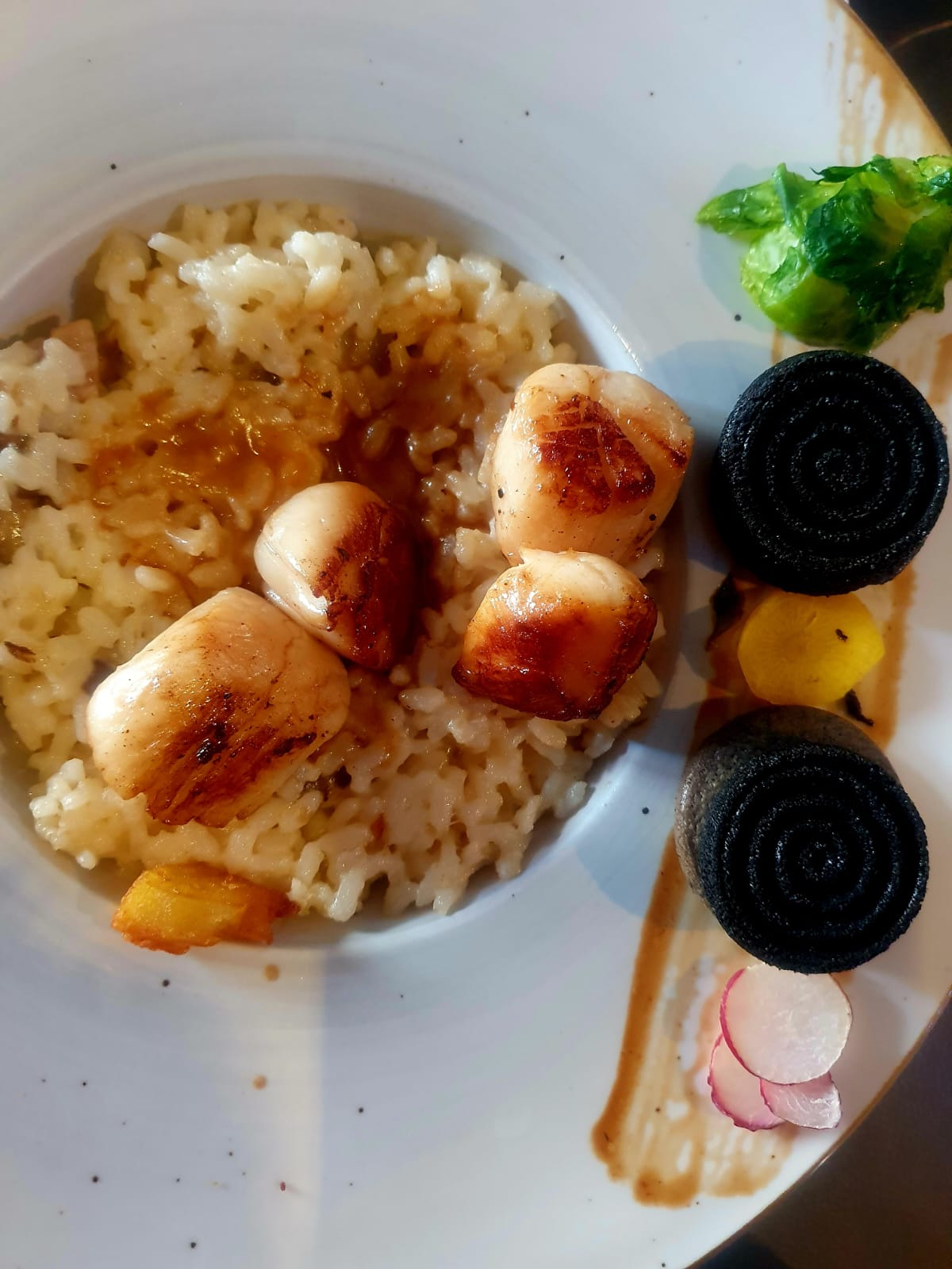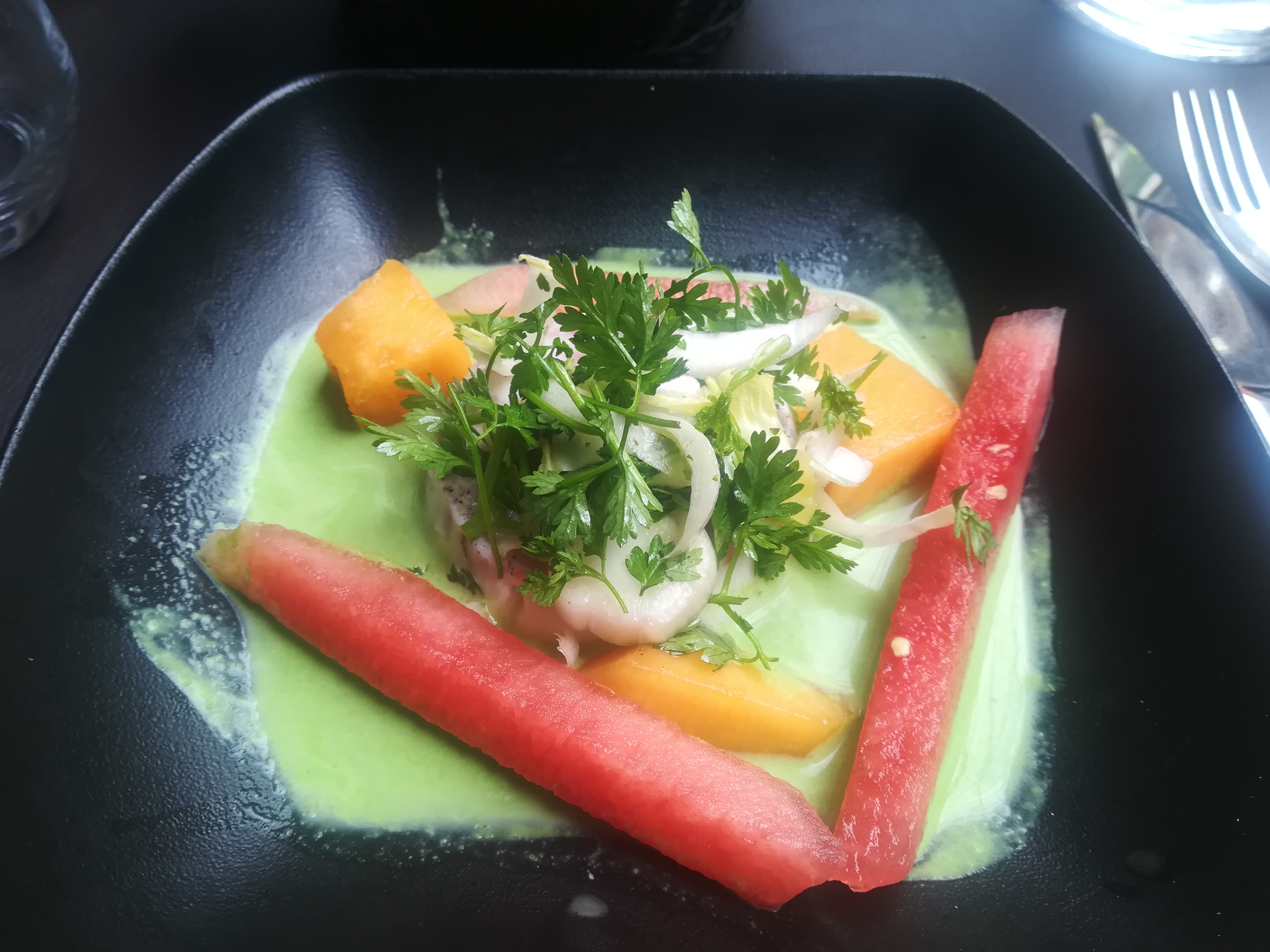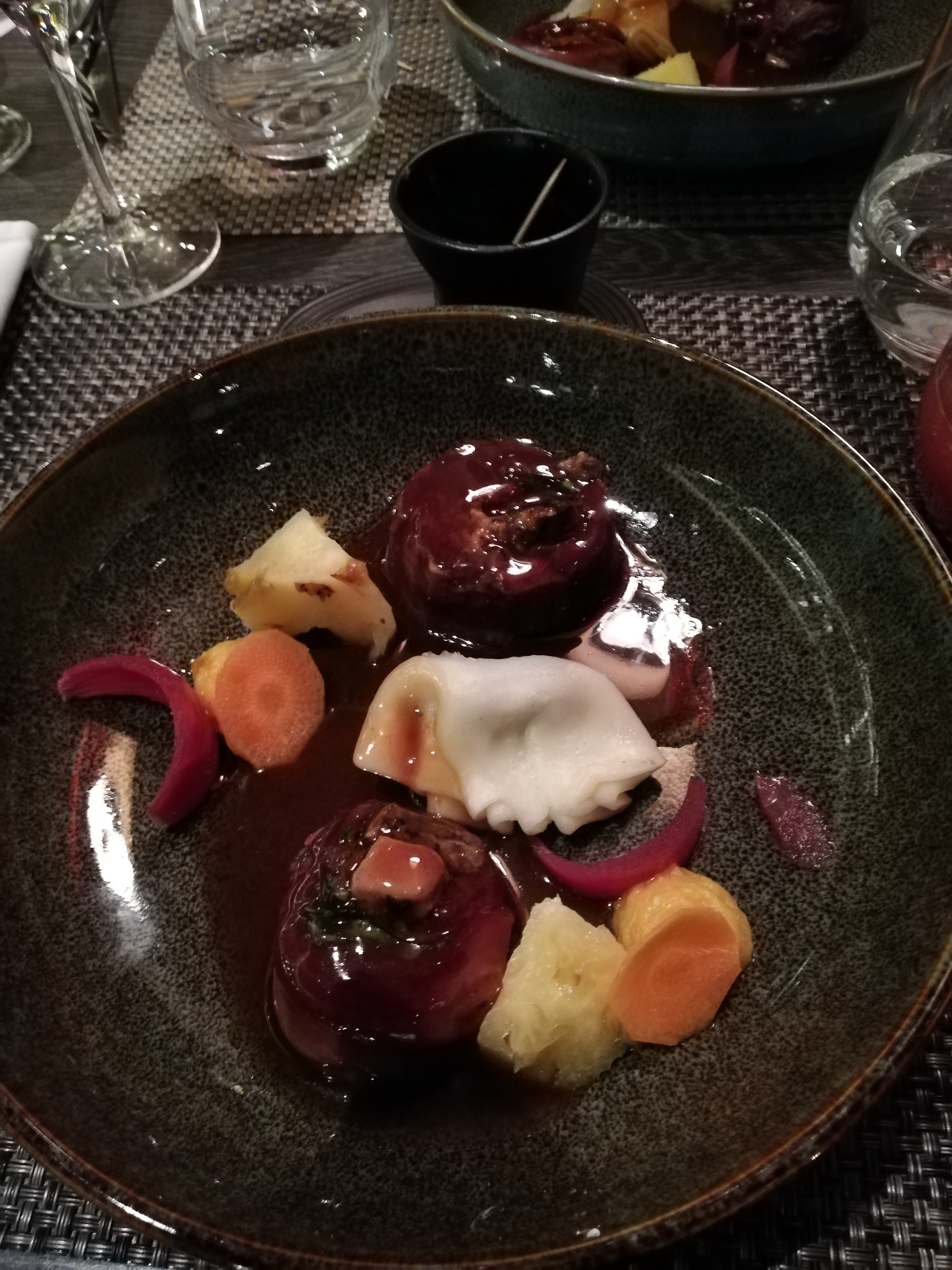 Un repas excellent Du personnel agréable et avec de l'humour et serveur super sympa Une superbe présentation et des goûts excellents