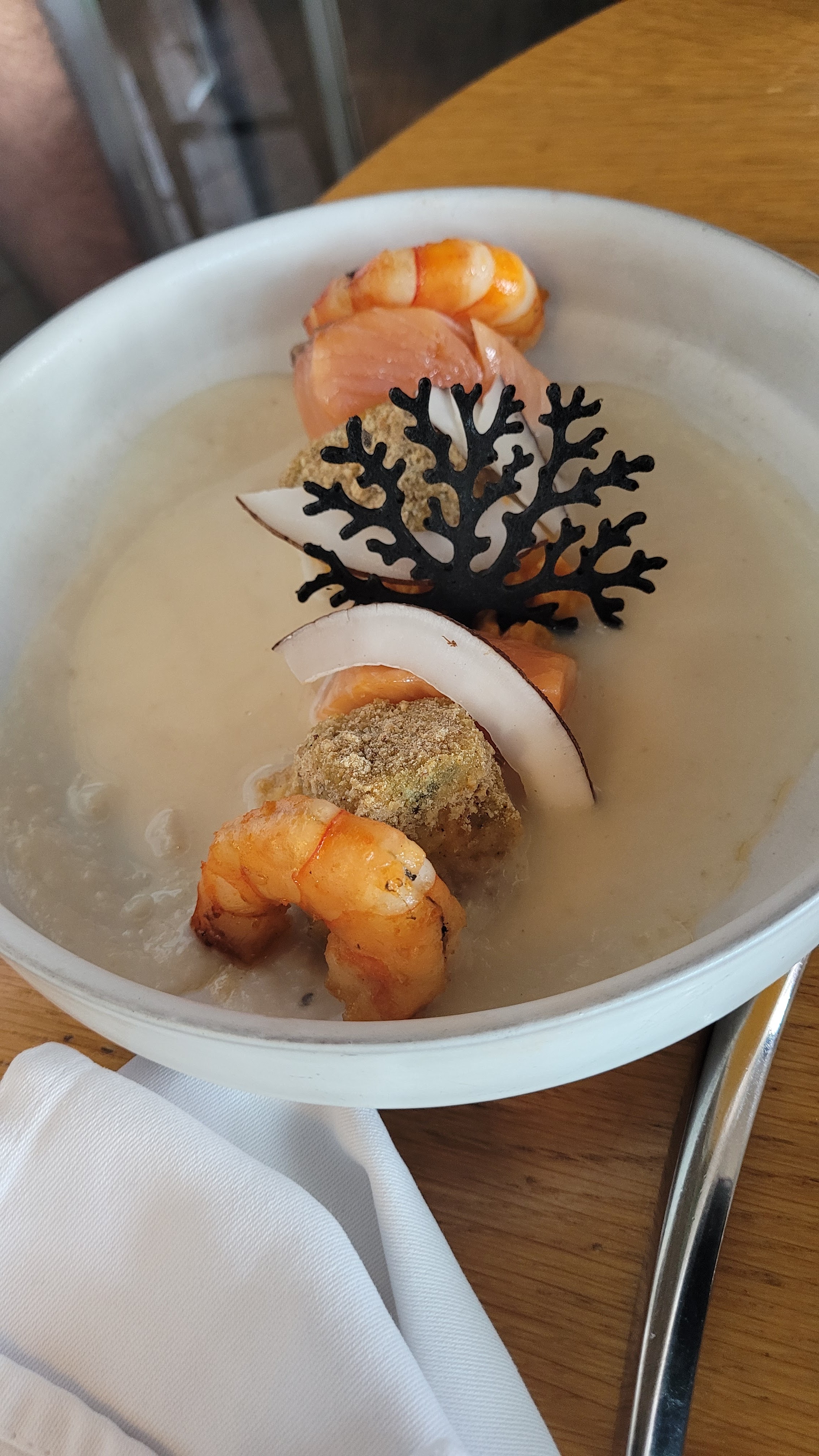 Très bon moment ce week-end pour un repas très correct, produit frais, décoration du restaurant très belle ambiance chaleureuse 👌juste une petite note en dessous pour les frites et J aurai bien aimé un peu plus de gambas et poulet dans mon plat qui était très bon malgré tout 😋