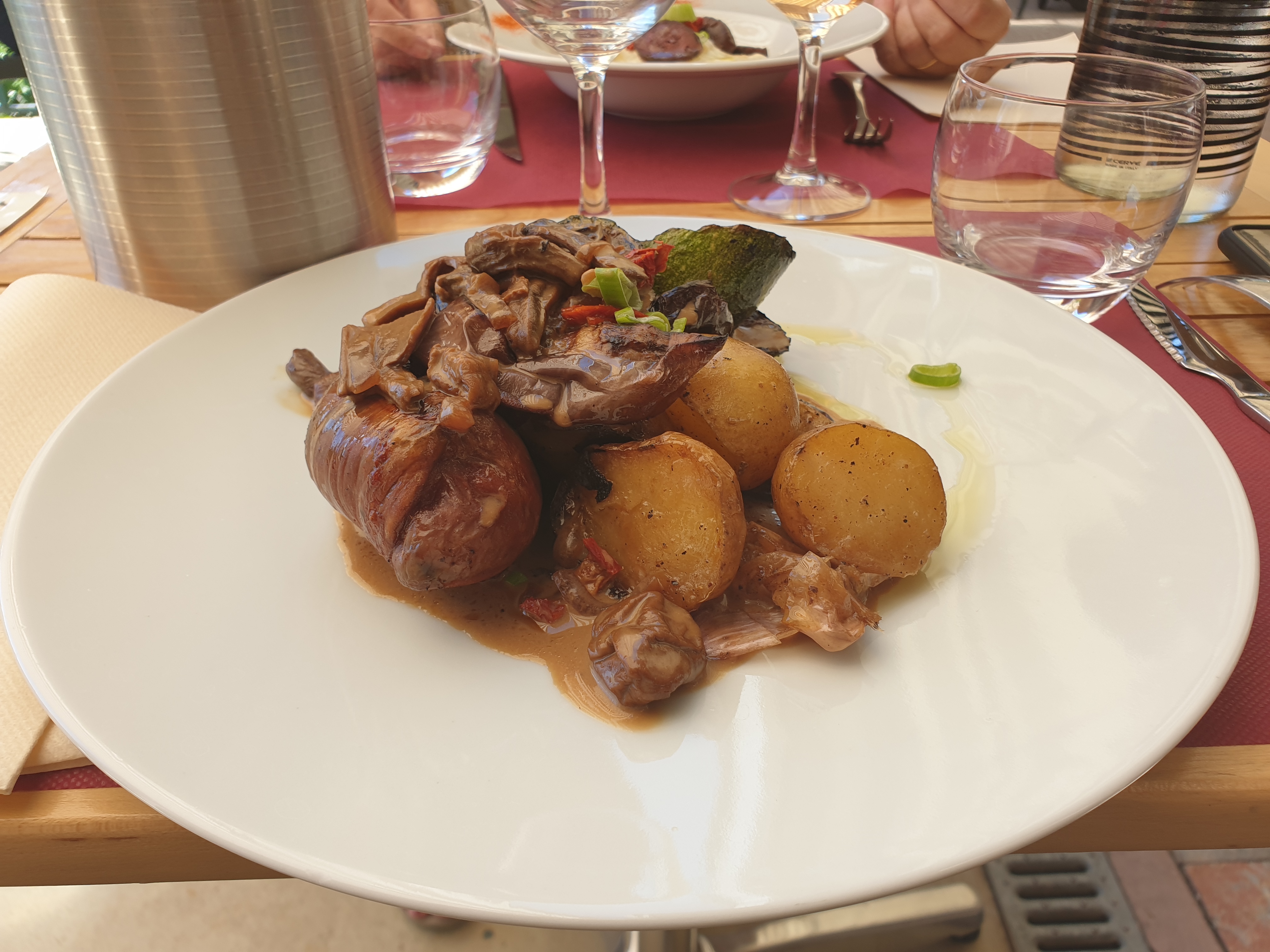 Bon repas (salade alpine, pieds paqués d'agneau et délice au chocolat, avec un quart de rosé), mais pas mal d' attente entre les plats. Je recommande, si vous avez un peu de temps, comme un touriste.