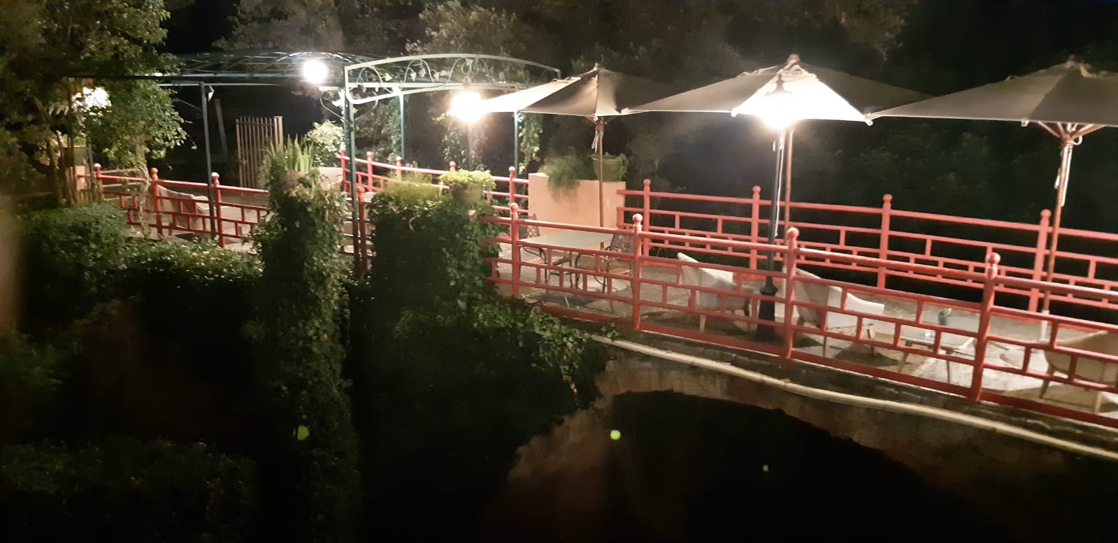 Un lieu d'exception pour tout! Nous y sommes allés lors d'un événement privé (repas de l'association Cercle d'or des vins du terroir Pierrefeu) et ce fut un succès. Je commencerai donc par le restaurant en lui-même refait à neuf il y a peu. L'architecte d'intérieur, les peintres-décorateurs et les électriciens ont travaillé sur les volumes en soignant les plafonds(voir photos), le revêtement des murs (pierres sèches, badigeons ou autres techniques dont je ne connais les termes). La grande terrasse à l'ombre des platanes surplombe un petit cours d'eau qui rend l'atmosphère plus fraîche les soirs d'été. Tout est fait pour que vous passiez un très bon moment. Et la cuisine alors? Excellente... De quoi vous réveiller les papilles à chaque bouchée. Je vous ai photographié les menus afin que vous vous fassiez une idée. J'ai particulièrement aimé le tartare de Saint Jacques en apéritif, le foie gras associé à un confit d'orange et le financier d'amandes à la compote de fraises à la rhubarbe surmonté de chantilly au poivre (mais oui, c'est très bon!) Tout est fait pour vous surprendre agréablement et vous ravir tous les sens! Une adresse à retenir pour vos grands événements familiaux ou professionnels!