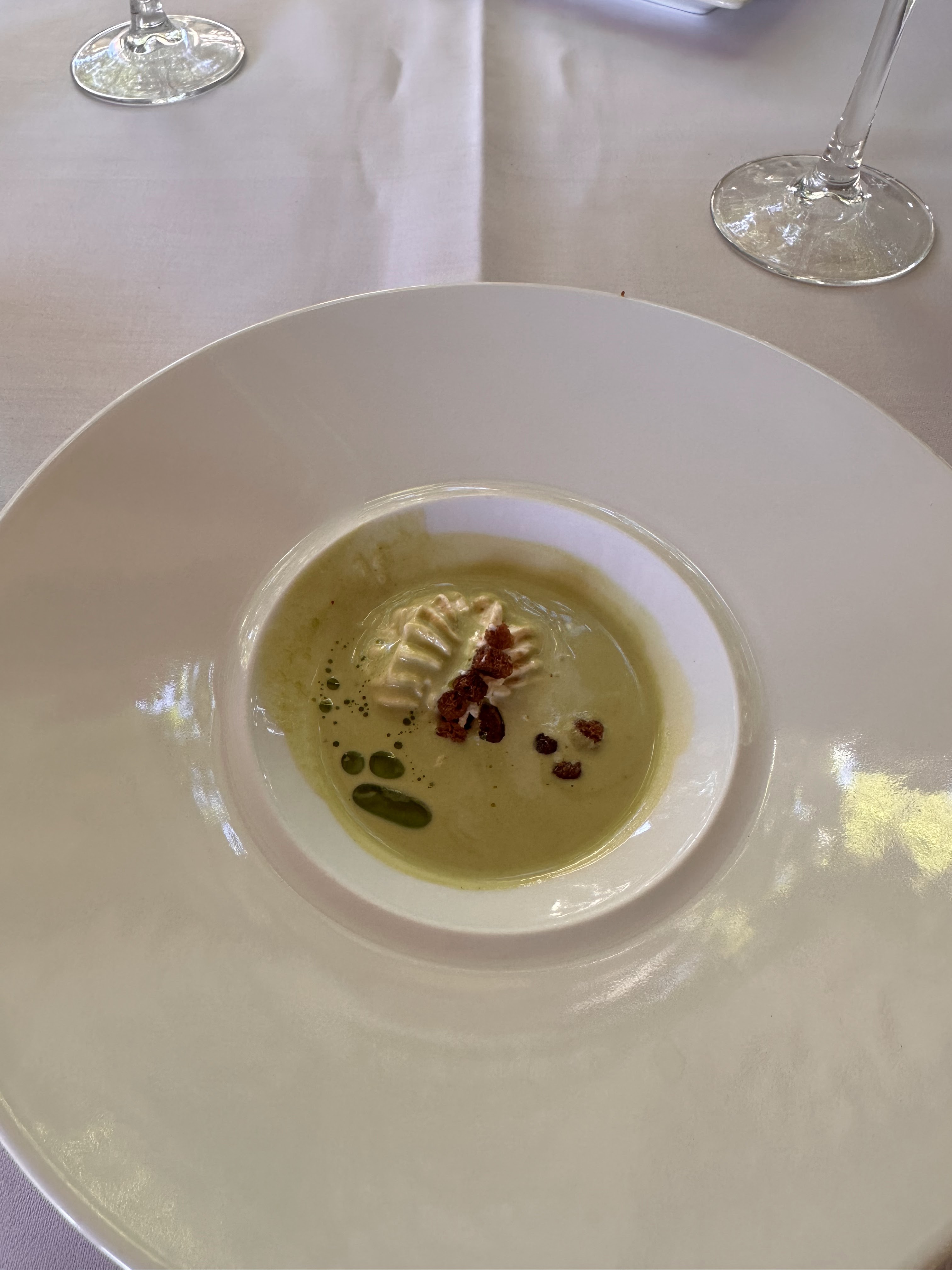 Un cadre magnifique pour un repas en extérieur. Une belle expérience pour cette cuisine à 4 mains avec Pascal de top chef qui sera un grand en devenir. Merci également au service avec un professionnalisme exemplaire. Merci au sommelier qui nous a fait partager sa passion du vin. Juste un point d'attention sur l'omniprésence du boss qui doit laisser son équipe de professionnels à la manœuvre à qui il peut faire confiance au regard de ce que nous avons vécu. Continuez avec ce binôme de chef. Bravo tout simplement.