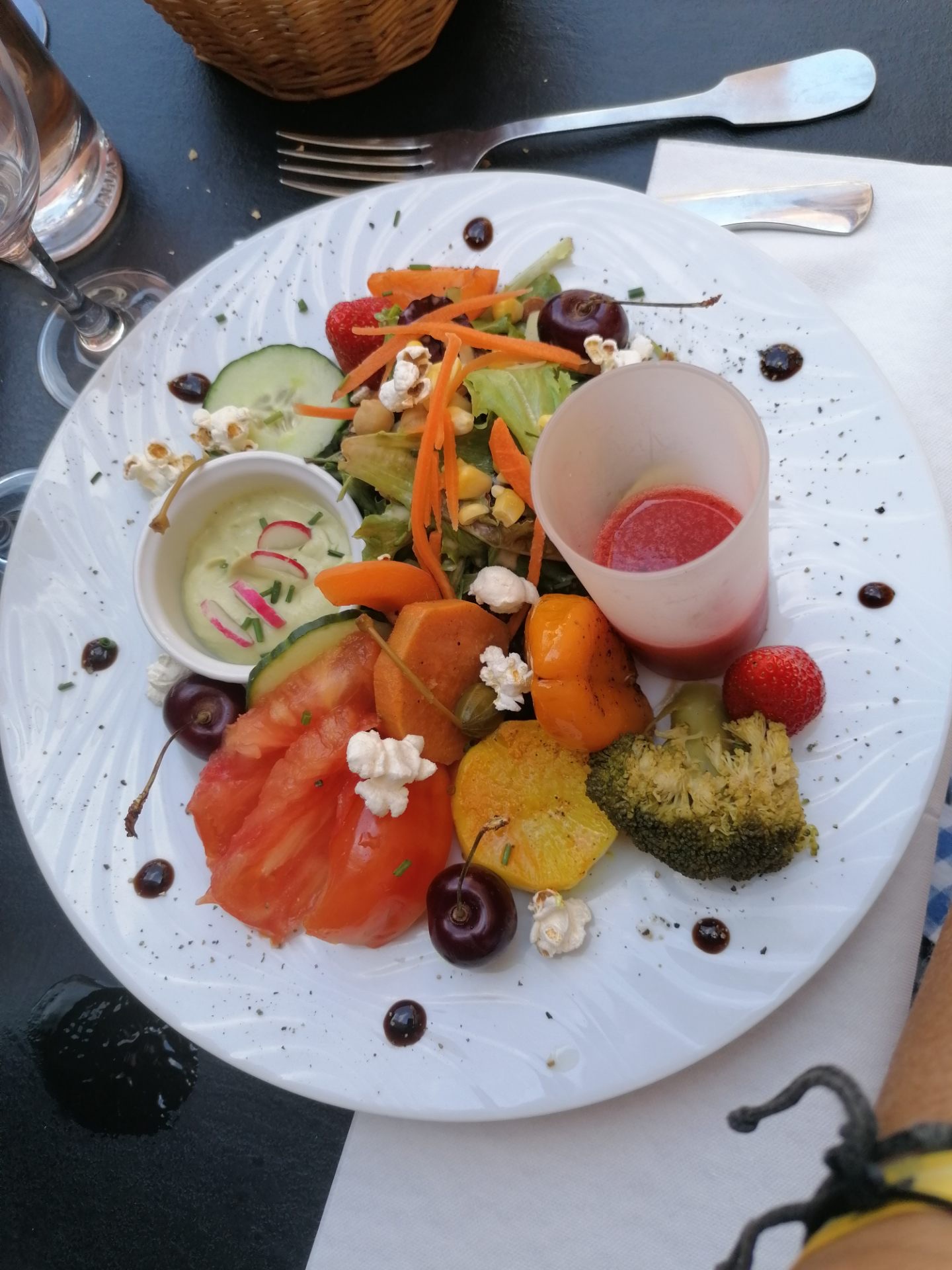 Un dimanche soir en terrasse et même pas froid malgré la pluie, ca aurait été la seule touche négative de ce moment. Un dîner sans prétention avec un service en toute humanité. Etre professionnel sans se prendre au sérieux..bravo Merci pour cela, à très vite,