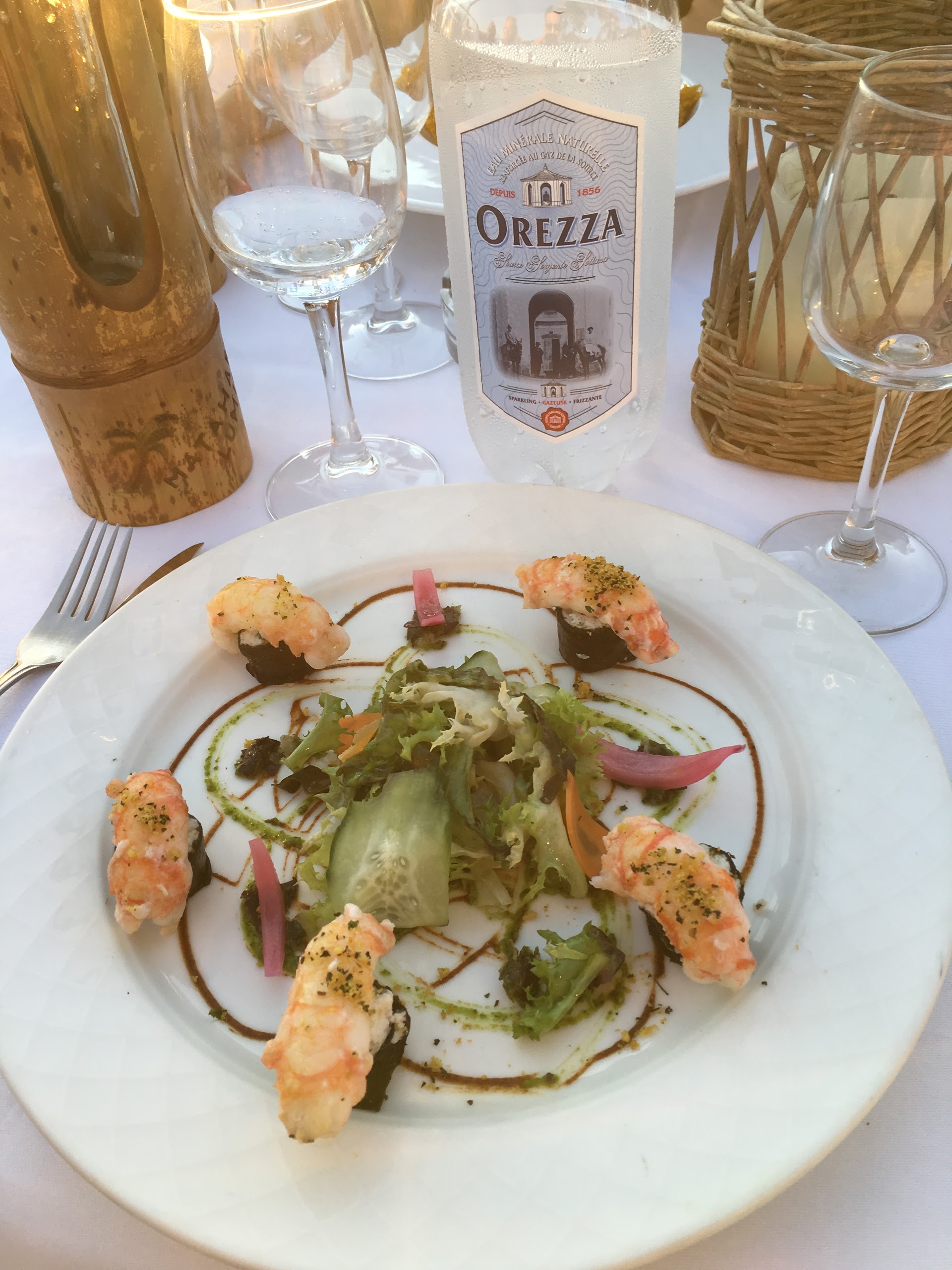 Dîner sur la plage les pied dans le sable, avec un coucher de soleil magnifique… Le rêve. Nous avons en prime très bien mangé, mention spéciale au risotto aux gambas qui était top! Et serveurs très sympa, nous recommandons +++