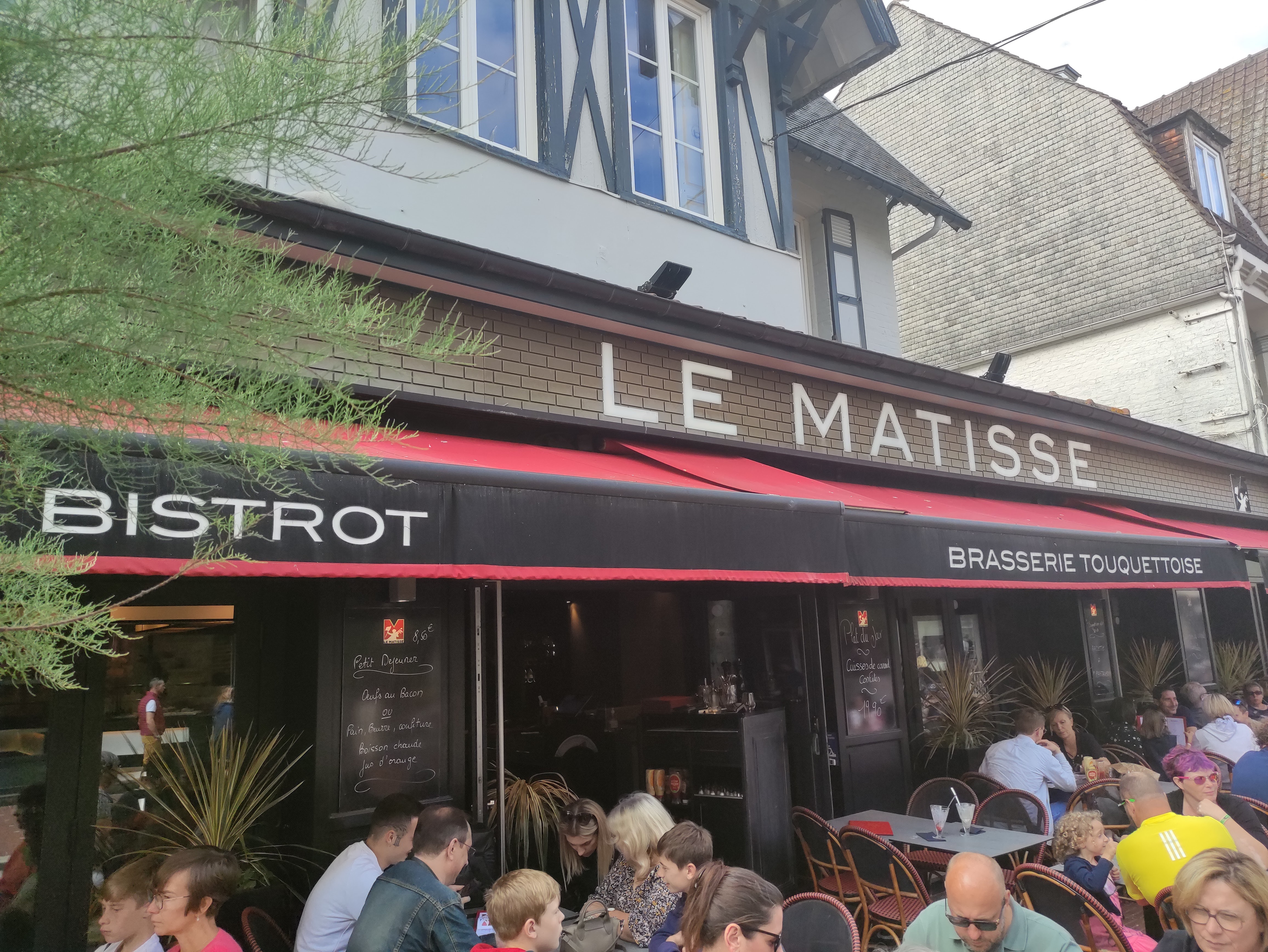 De passage au Touquet, nous nous sommes arrêtés pour déjeuner au Matisse. Après avoir patienté une dizaine de minutes, normal vu l affluence, nous avons été installés correctement, mais déçus dès notre arrivée à table par l'ambiance... Certains serveurs et le responsable crient, critiquent les clients, ( et on s en fout un peu que son chien adore faire pipi sur son canapé...) Mais le pire c est la cocotte de moules à 20€..... à demi remplie et archi cuites...quant au poisson, du bar sauce chorizo il était bon mais la sauce sans goût. Une mousse au chocolat ( sans commentaire) à 9€ avec plus de chantilly que de mousse. Bref 70€ pour 2 plats, un pichet de rosé et un dessert... Nous invitons tout le personnel, responsable y compris à suivre une formation au lycée hôtelier du Touquet pour retrouver une dignité. Bref à fuire !