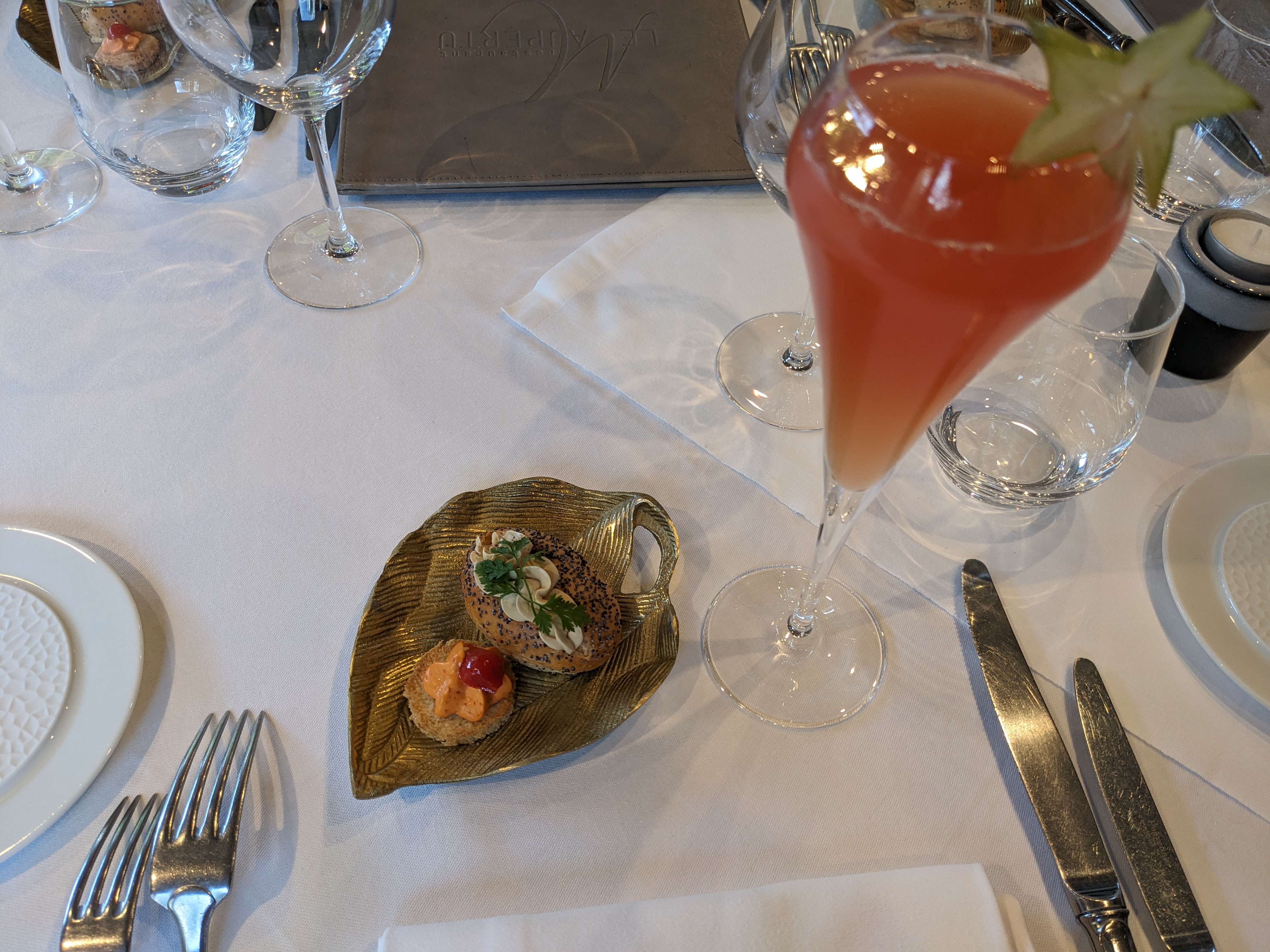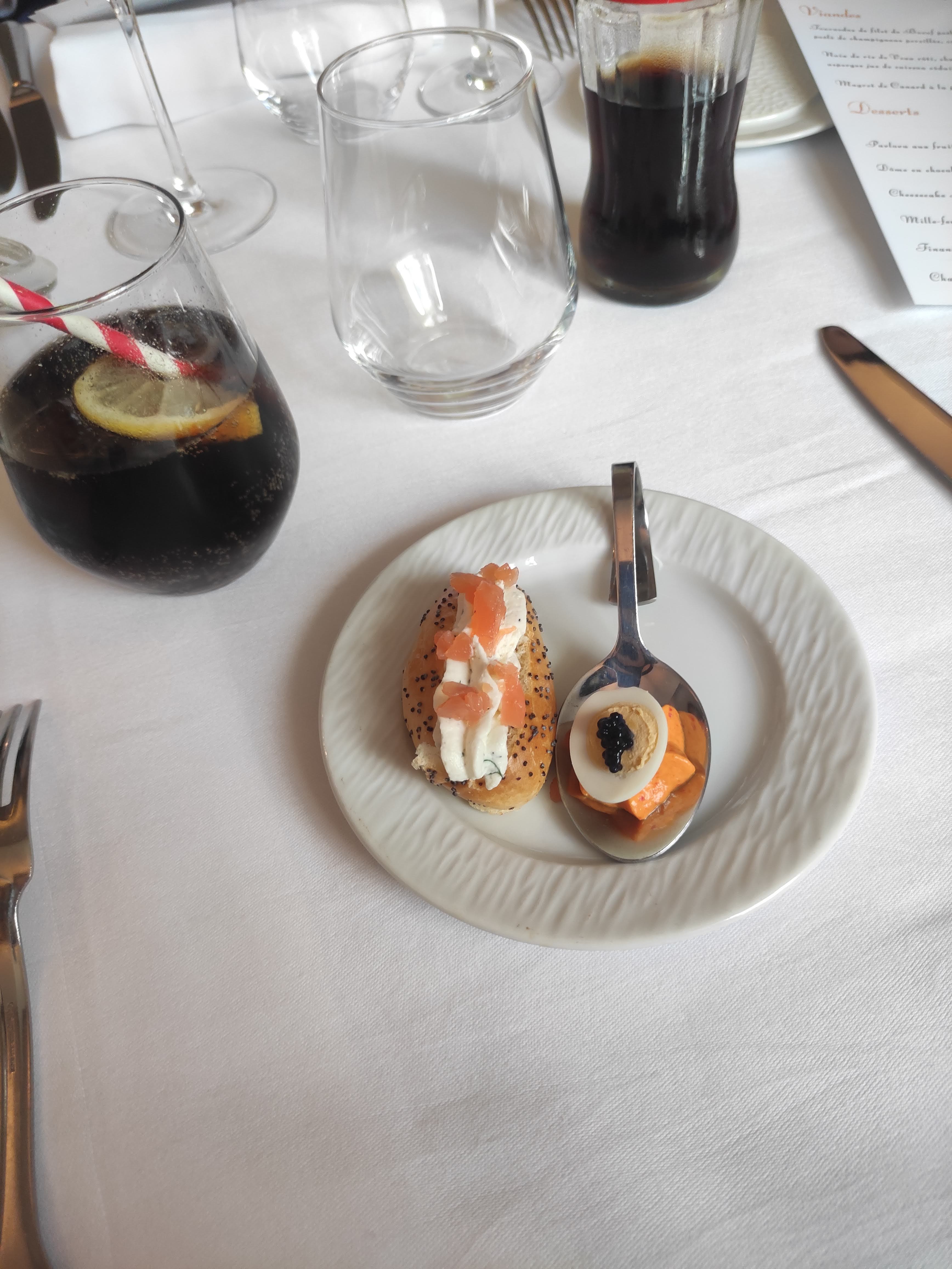 C'est la 2eme fois que je viens ici et j'ai été une nouvelle fois conquise par ces plats délicieux, le cadre ainsi que le service. Je ne m'arrêterai pas de venir et vous conseil ce restaurant à 300%. Ps: uniquement photos de l'apéritif et des entrées. Je n'ai pas pu attendre la photo pour déguster le plat.