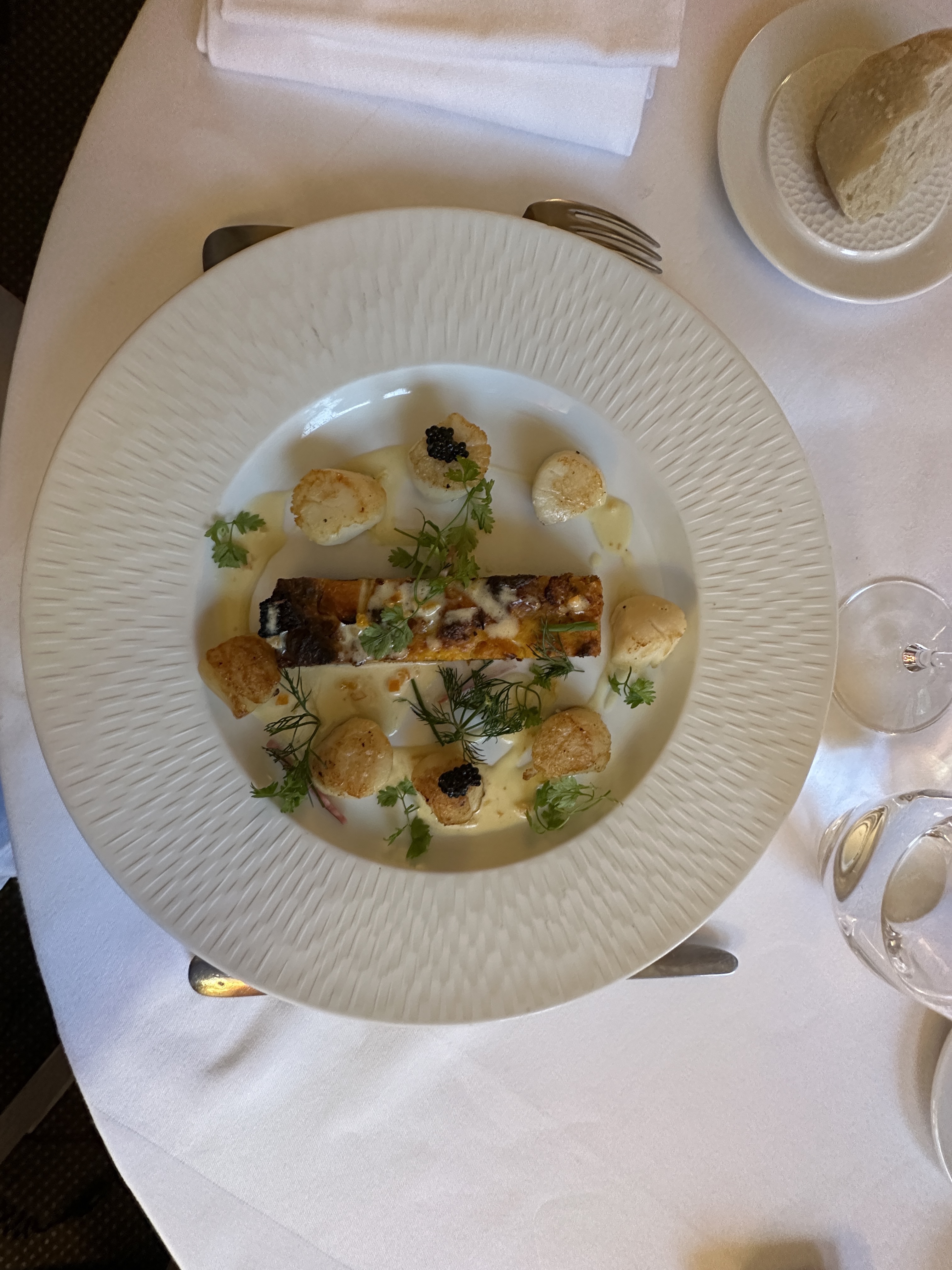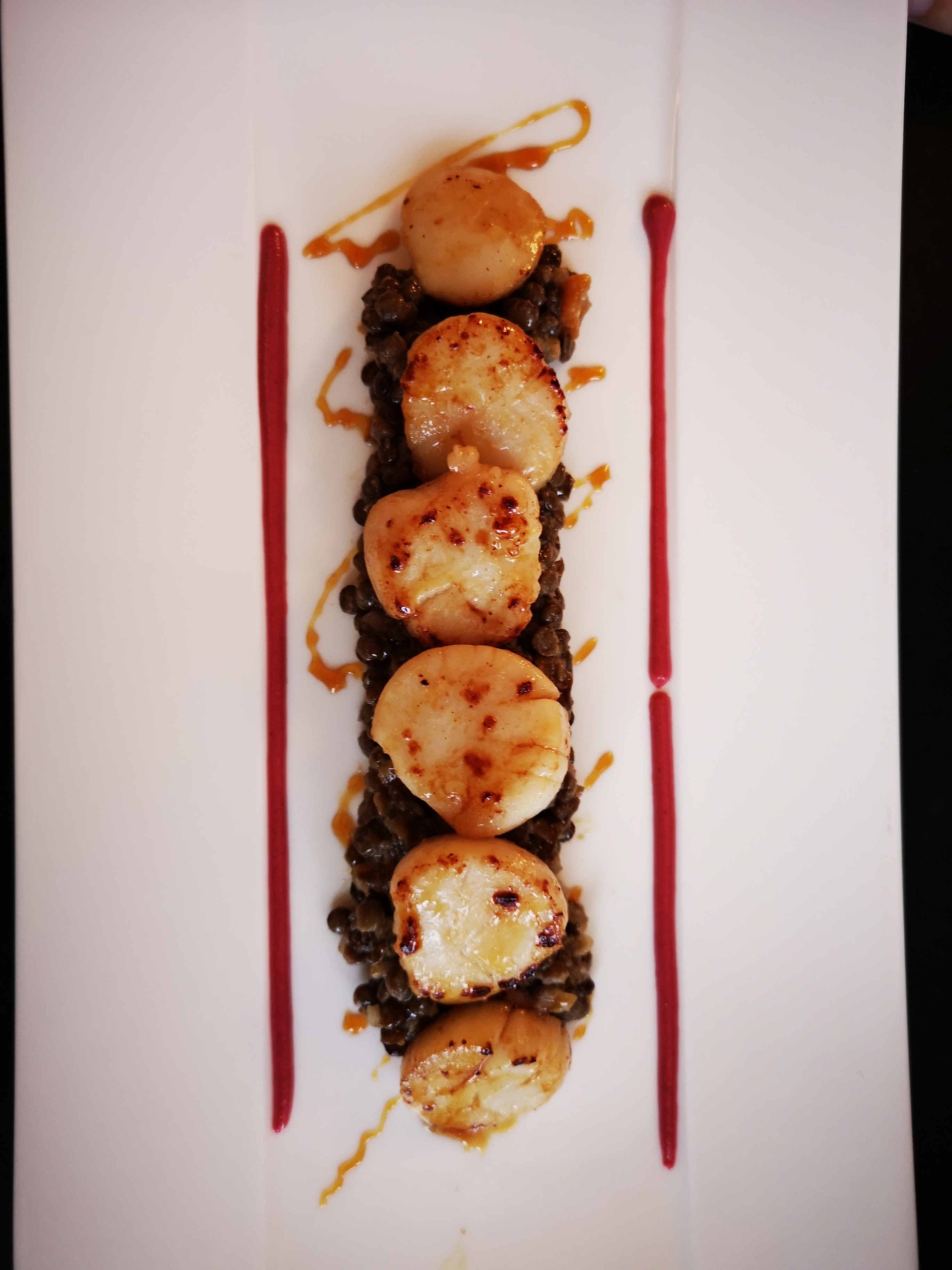 véritable dégustation, entrée raffinée et noix de St Jacques fondante, seul le mi cuit était légèrement trop cuit à mon goût. une bonne soirée avec de belles personnes.