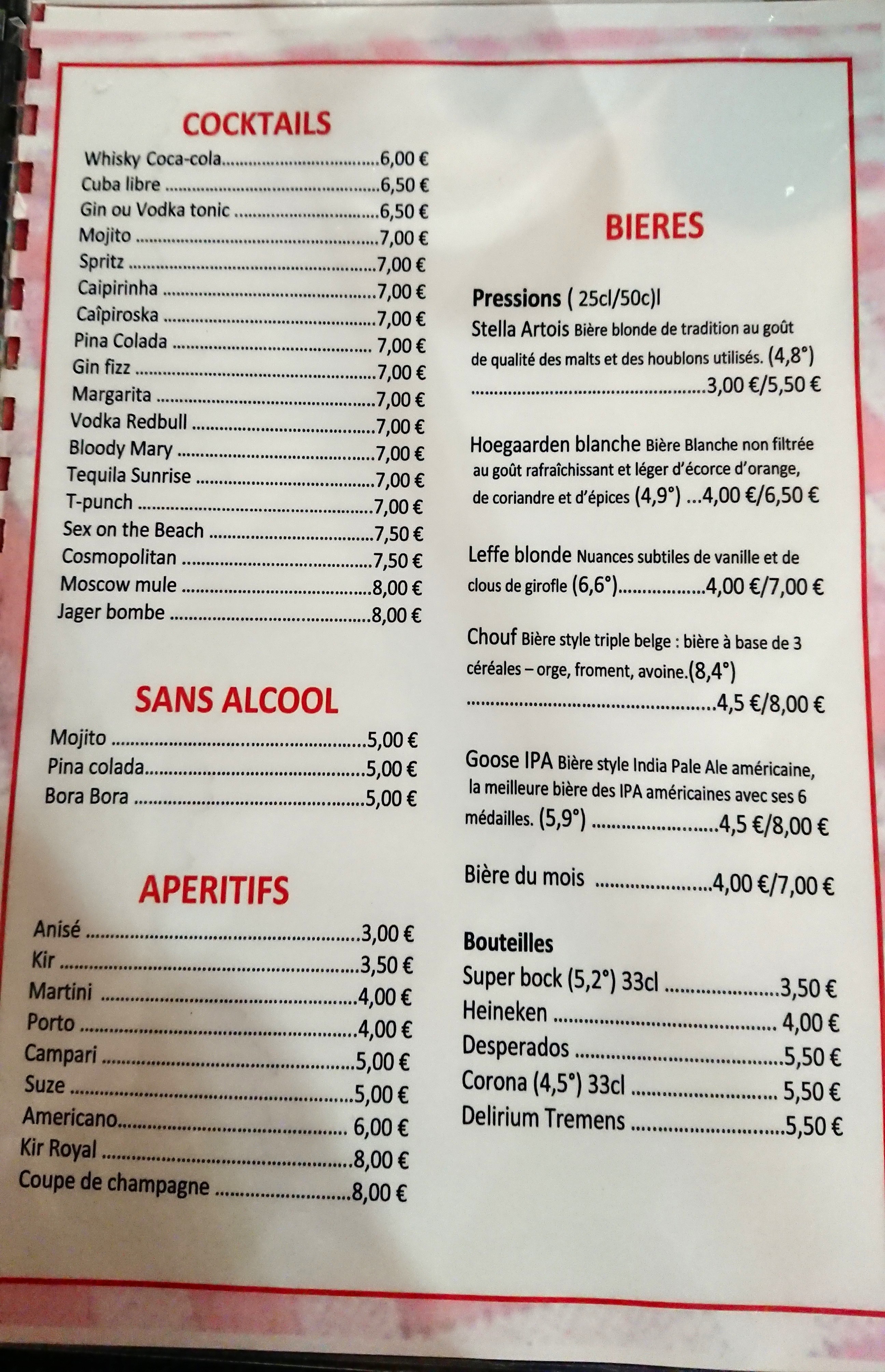 Nous avons eu la mauvaise surprise de constater que le Barman vendait le verre de vin rosé à un prix different selon la personne 3 ou 3.5 même 4€. Vin qui provient d'un cubi. Et en plus le verre est plus ou moins rempli. Et pour clore le tout tentative d'arnaque à la monnaie