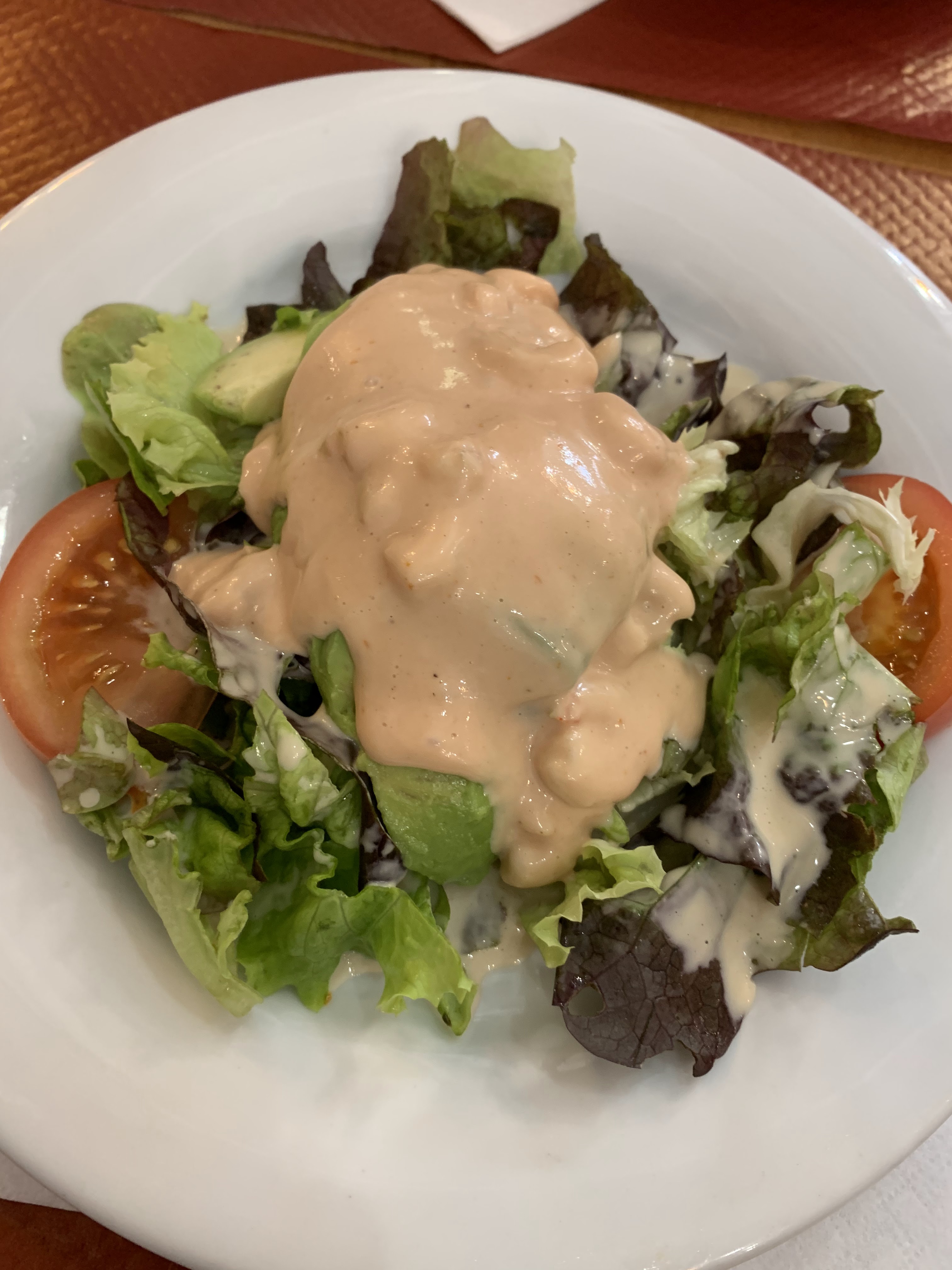 Nous étions dans un groupe pour faire des visites. Salade composée, Tajine de poulet, tarte fruits. Agréable repas, serveurs très bien.