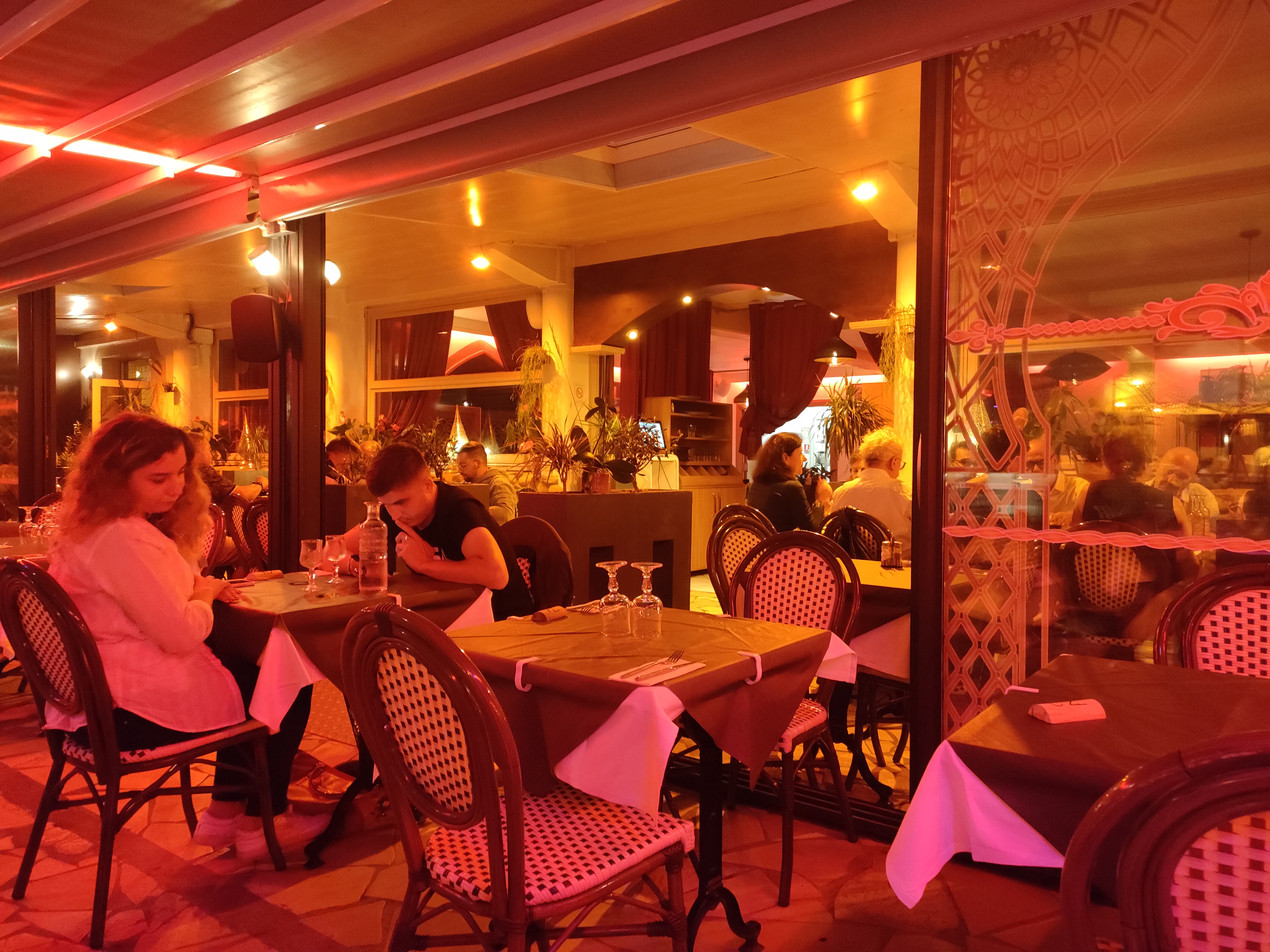 Nous étions en terrasse très agréable par contre le service pas assez dynamique on avais une serveuse mais pas souriante pas de pain a table dommage car la nourriture est très bonne juste a modifier c est point là je le recommande quand même