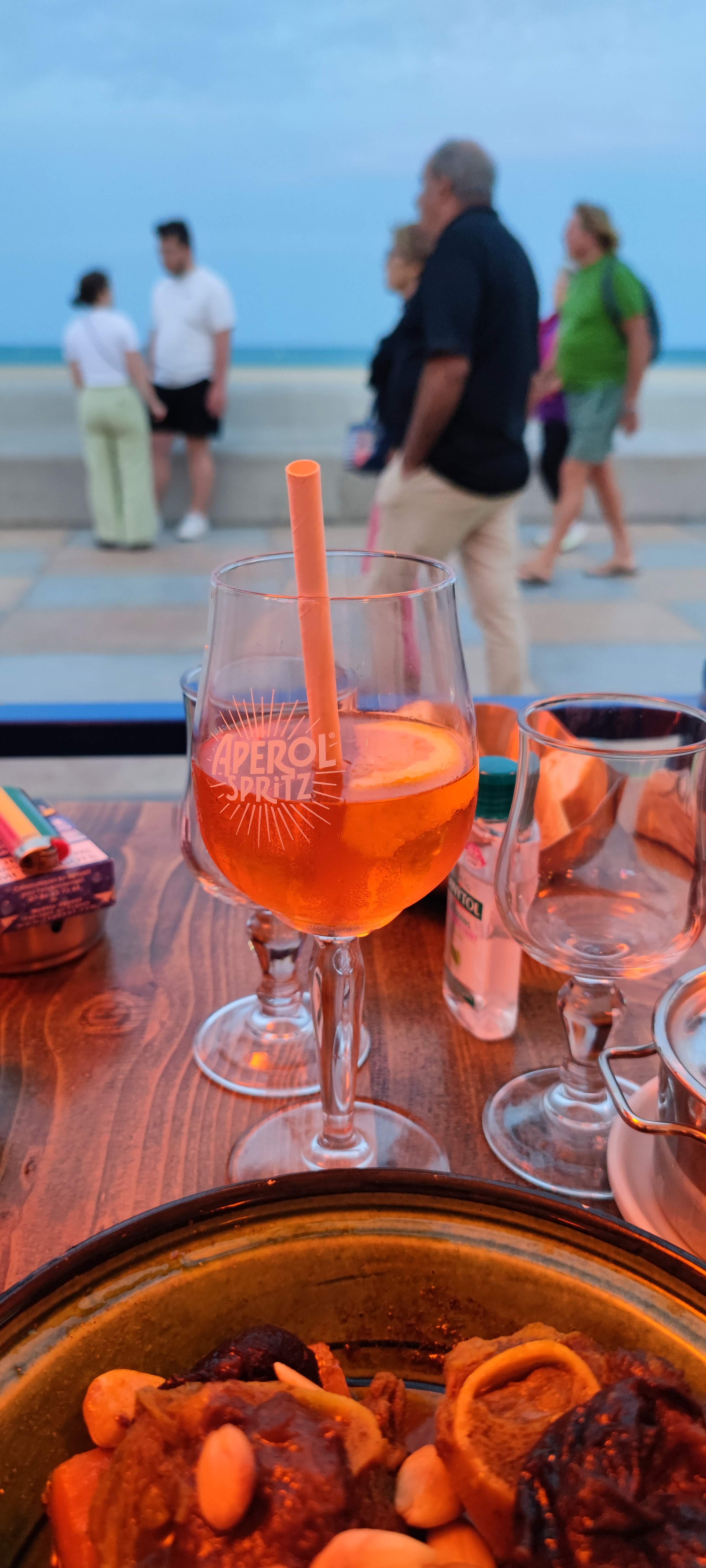 Apéritif et repas du soir . Le tout vu sur la mer . Endroit agréable et soigné. Nous avons goûté les moules , la soupe de poisson , le rumsteck sans oublié le super Tajine Marrakech ....tout était bon et frais . Et bien servi . Rien a redire . Vous pouvez y aller les yeux fermés. Merci à Chad et Mathilde pour le service chaleureux. Une bonne adresse, et prix plus que corrects :)