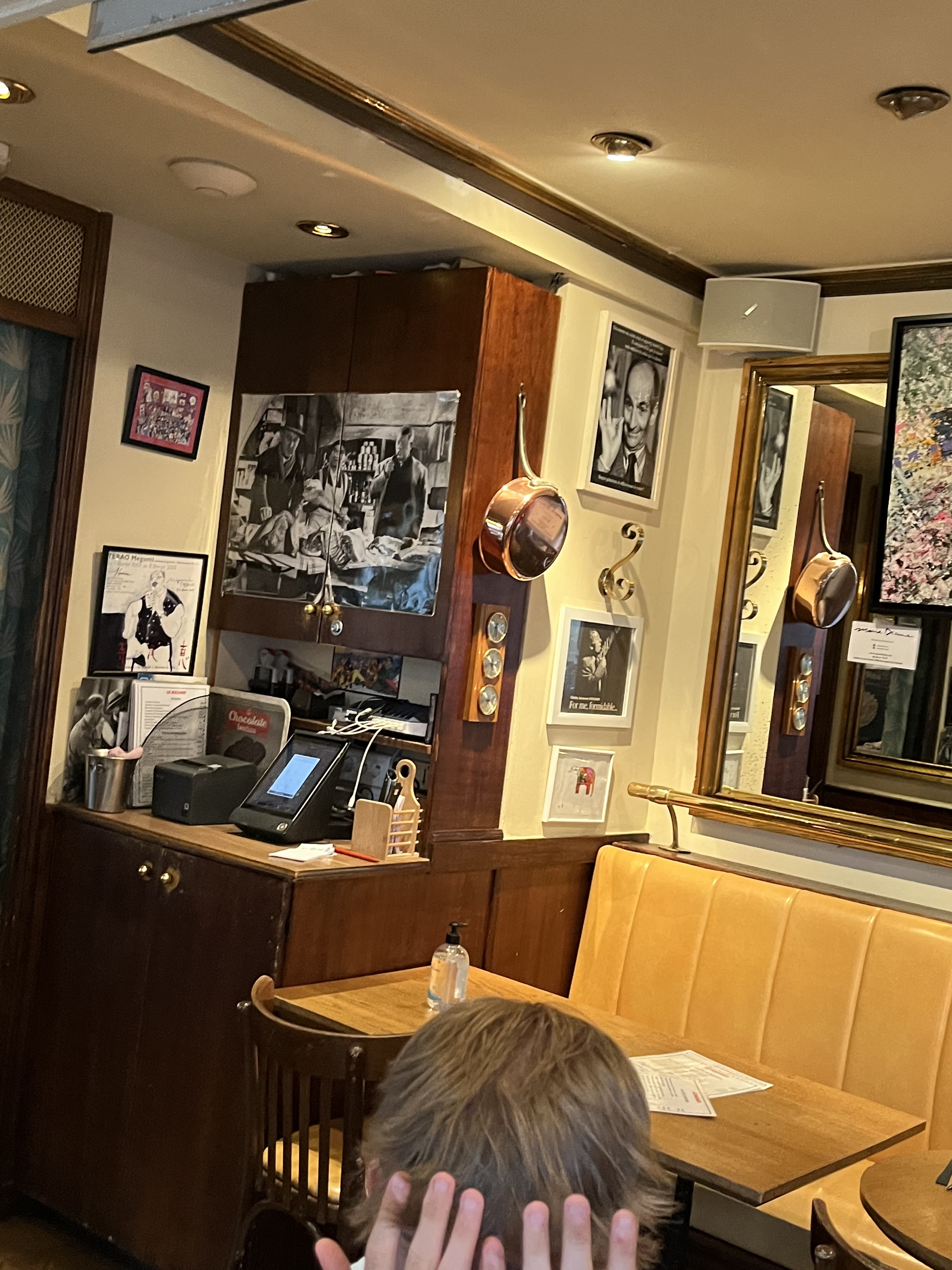 Ah !! Enfin une bonne adresse très sympa souvent fréquentée par des personnalités. L'accueil est chaleureux et les plats très bons (Saucisse de Morteau aux lentilles servie dans un poêlon en fonte, du coup ça reste au chaud, mousse au chocolat généreuse et pas écœurante). Déco tournée côté ciné. La musique est audible juste comme il faut. Eh bien, ils ont gagné un client !!