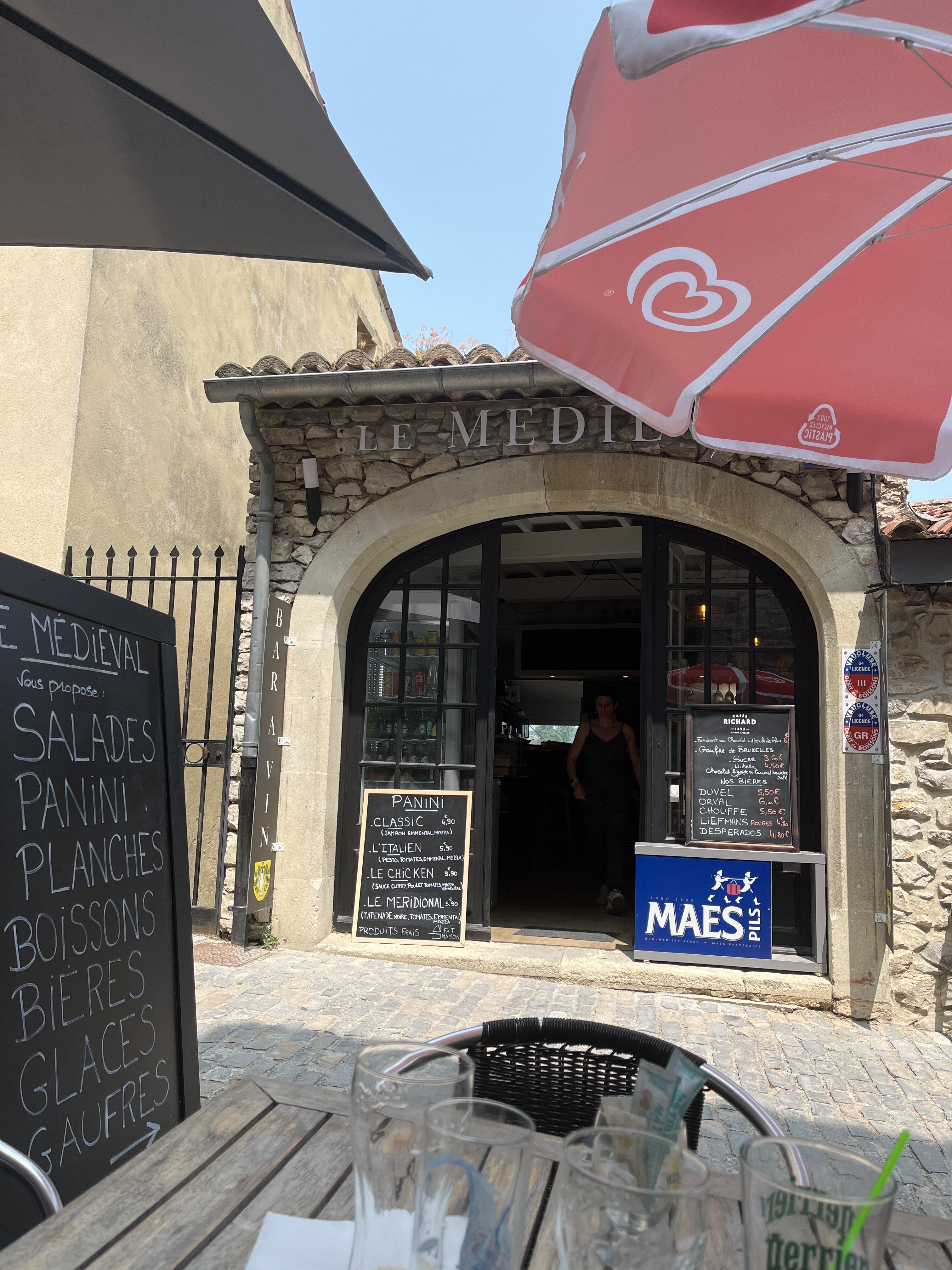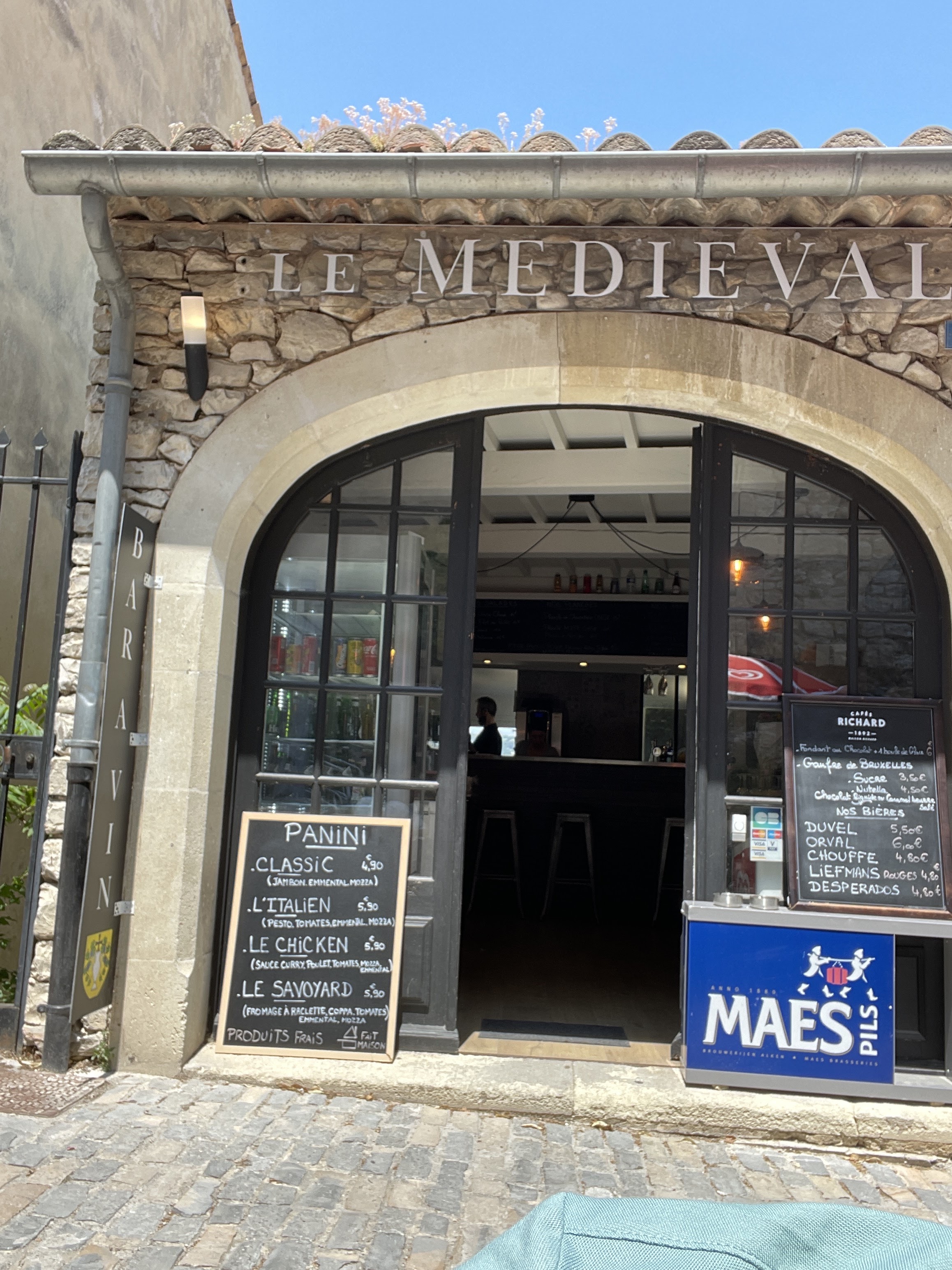 SUPER ! Oui, vous pouvez visiter tranquillement cette magnifique commune, voir tous ses vestiges et vous restaurer avec un petit budget et vous régaler. L'accueil est sympa, l'établissement est petit, vous vous installez en extérieur, petites tables, parasols juste à l'entrée de la cité médiévale. Vous dégusterez, salades, croques, gaufres .... boissons avec ou sans alcool, vins. Accès PMR sans problème, la rue est en légère pente et pavée. Le service est rapide et dans la bonne humeur et bon rapport qualité-prix. je recommande sans modération. Cet avis n'est pas une critique sur les tarifs des autres établissements.