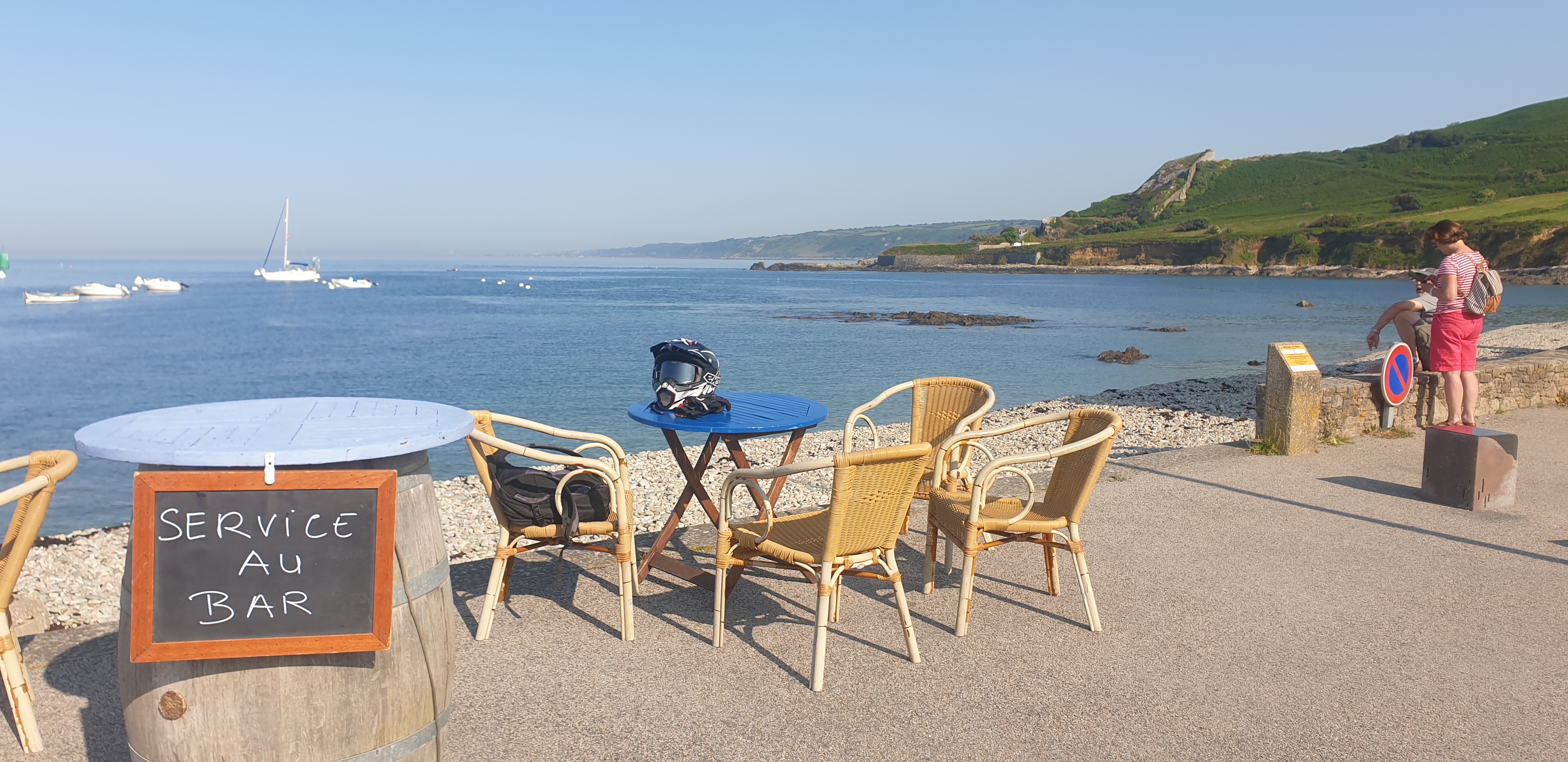Après une magnifique promenade sur le sentier des Douaniers rien de tel qu un petit verre en terasse avec une magnifique vue... Pour le moment on avait tout bon. Mais aïe aïe aïe !!! un accueil des plus déplorable ! et résultat de l assiette de crevettes et de la douzaine d huitres => une bonne indigestion pour mon pote. À fuir ! en même temps quand on s appelle le méditerrané en pleine manche on aurait dû se méfier :P