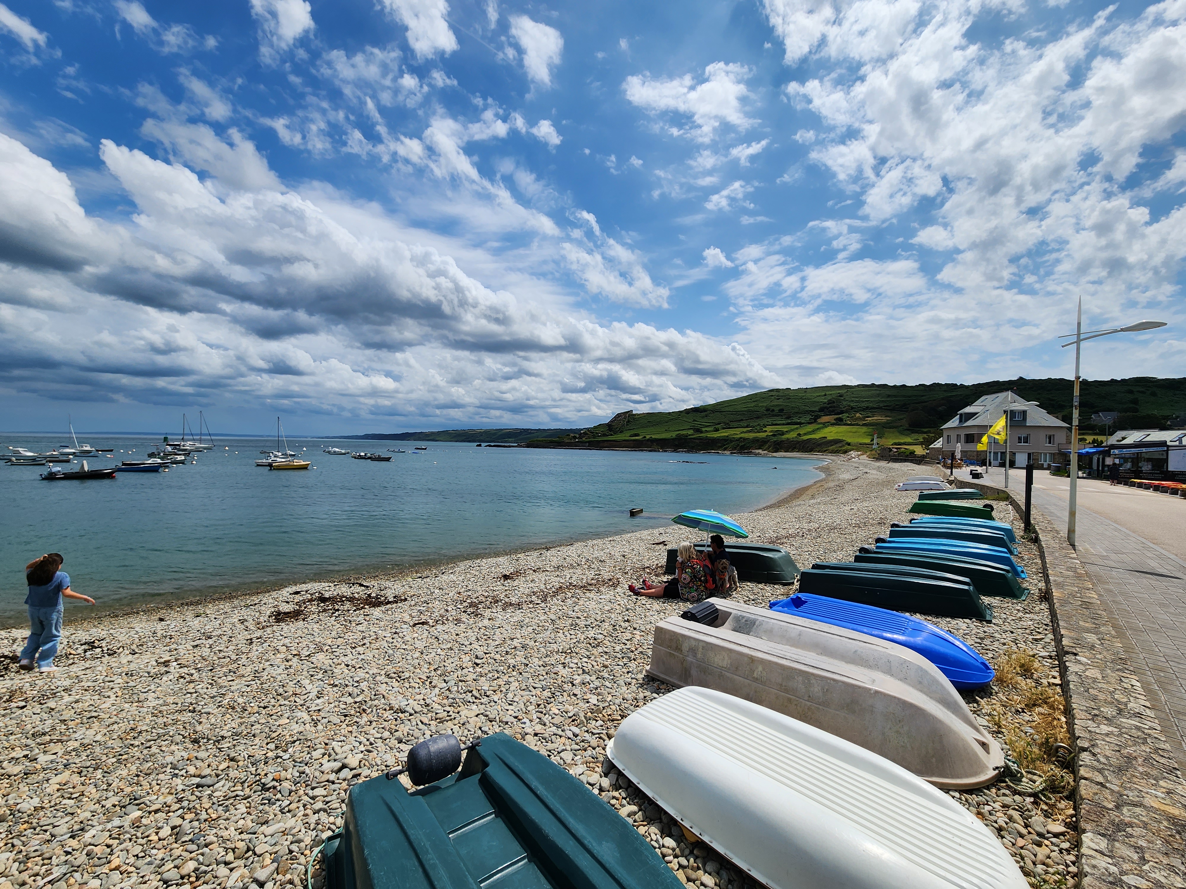 Établissement sympathique perdu au milieu de nul part! Nous n'avons pas gouté la cuisine car nous étions juste de passage dans l'après midi. Très jolie vue sur un tout petit port de plaisance, sa plage de galets et sur la campagne environnante, ambiance familiale et très calme! Pas de service a table en extérieur.