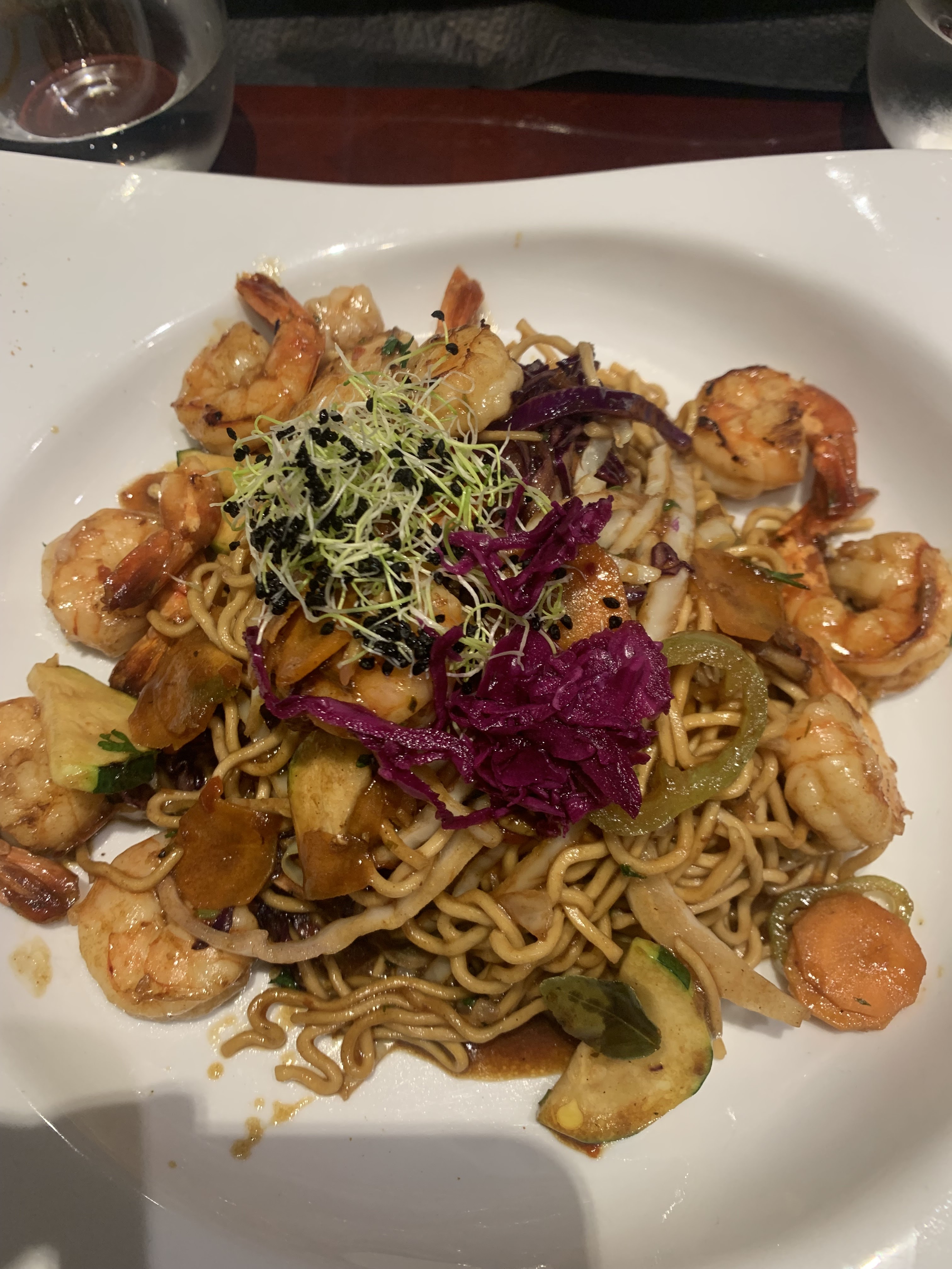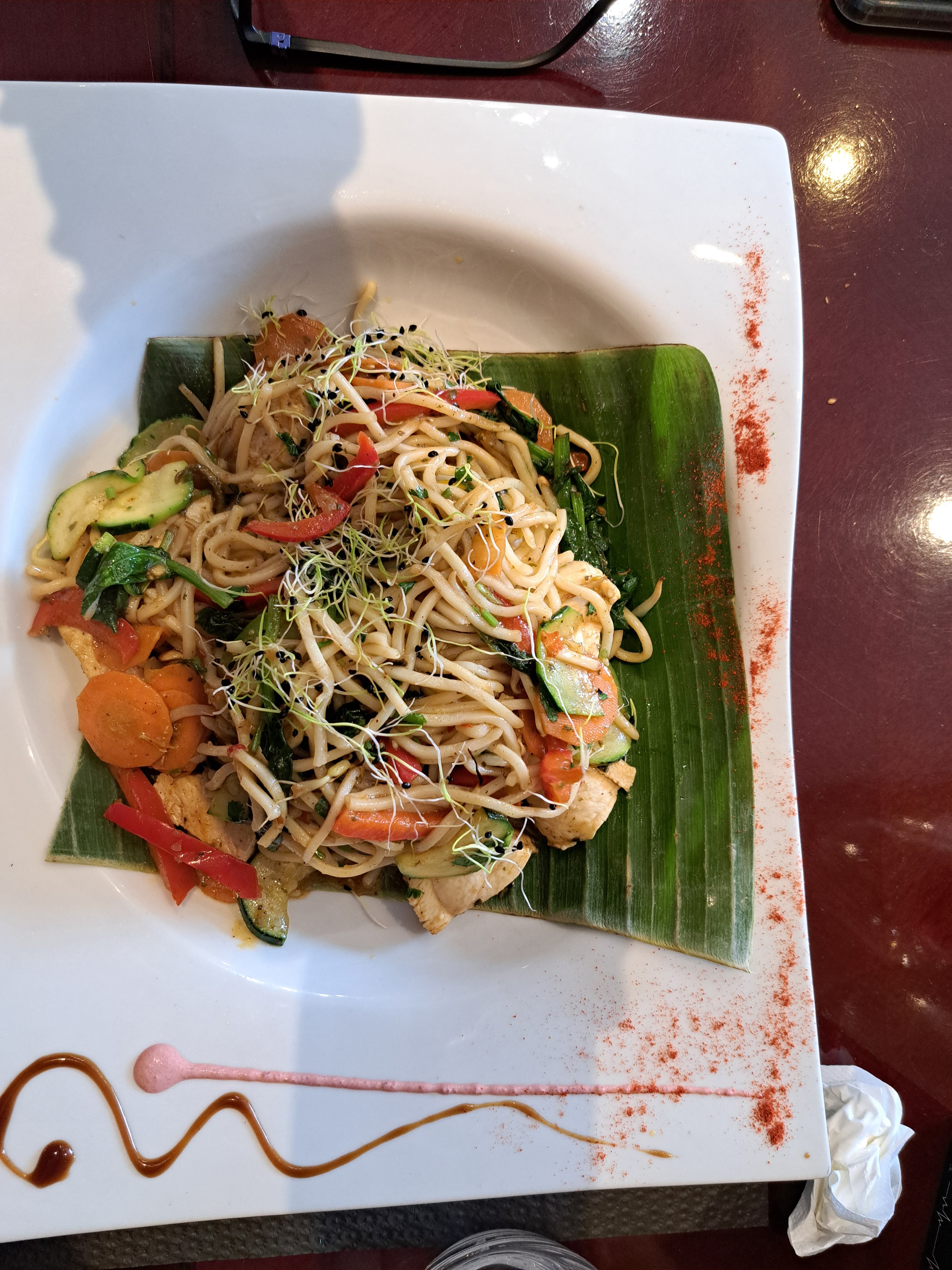 Serveuse très accueillante et sympathique, soirée très agréable. En plat j'ai choisi le Wok de Nouille au poulet, plat plus que classique et pourtant j'en ai rarement mangé d'aussi bon ! Bravo !