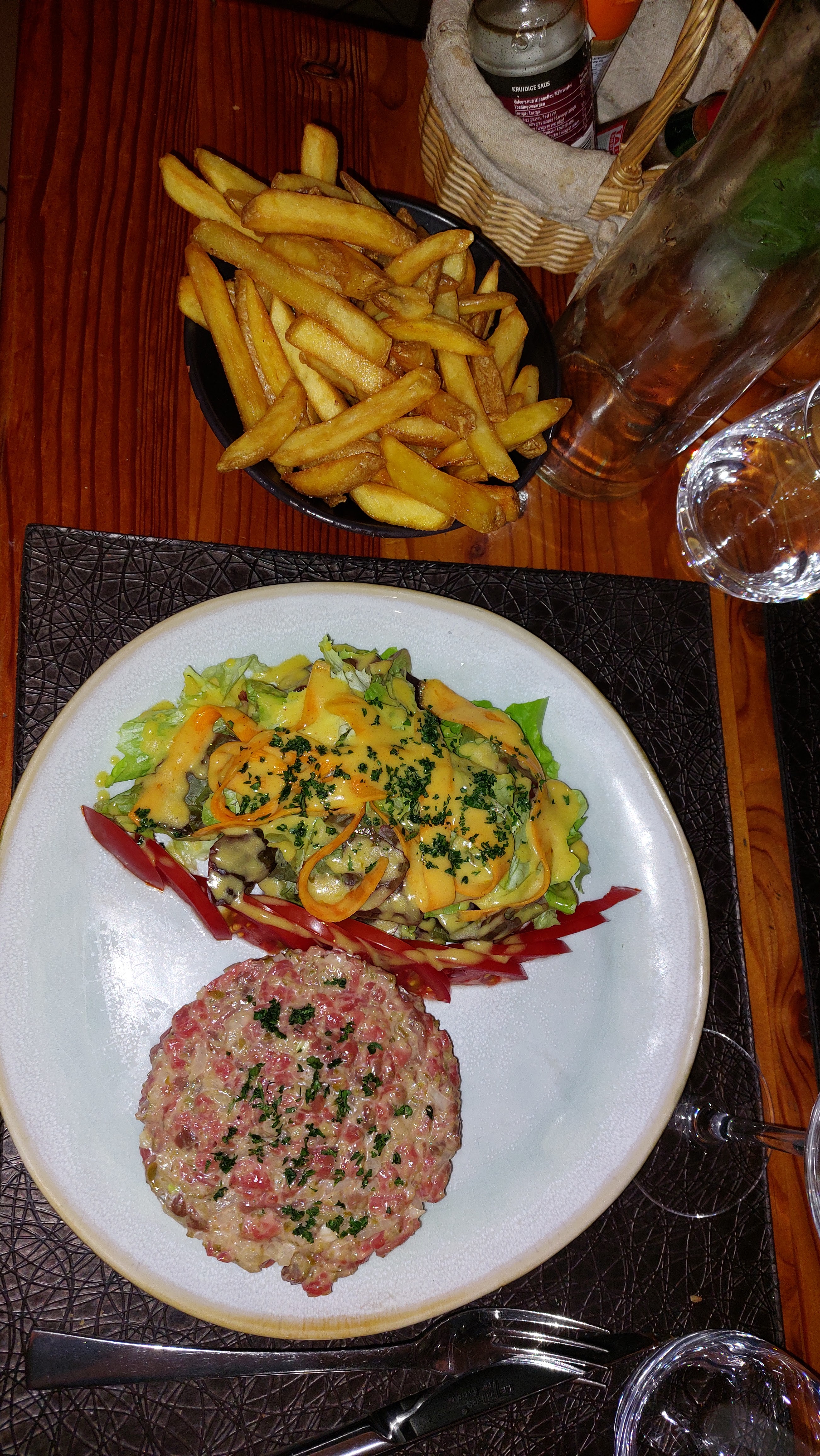 Viandes excellentes : tartare et faux filet. Dommage que les Frites ne soient pas fraîches ( surgelés donc peu goûteuses et sèches)..