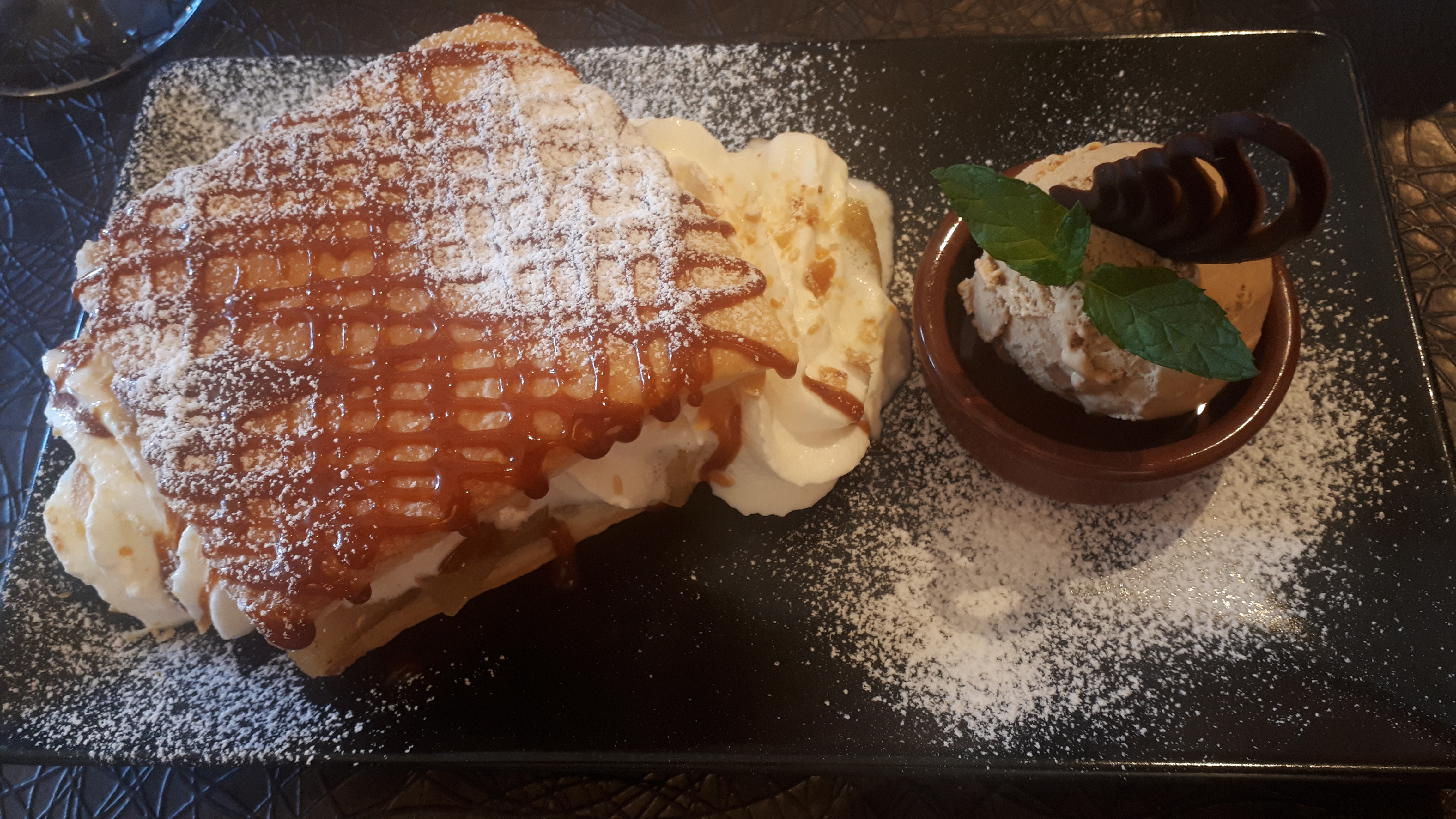 Cadre magnifique ! le personnel très accueillant et avec le sourire les plats un délice, copieux, magnifiquement bien présenté digne d’un grand restaurant. je vous recommande sans hésitation ce restaurant.