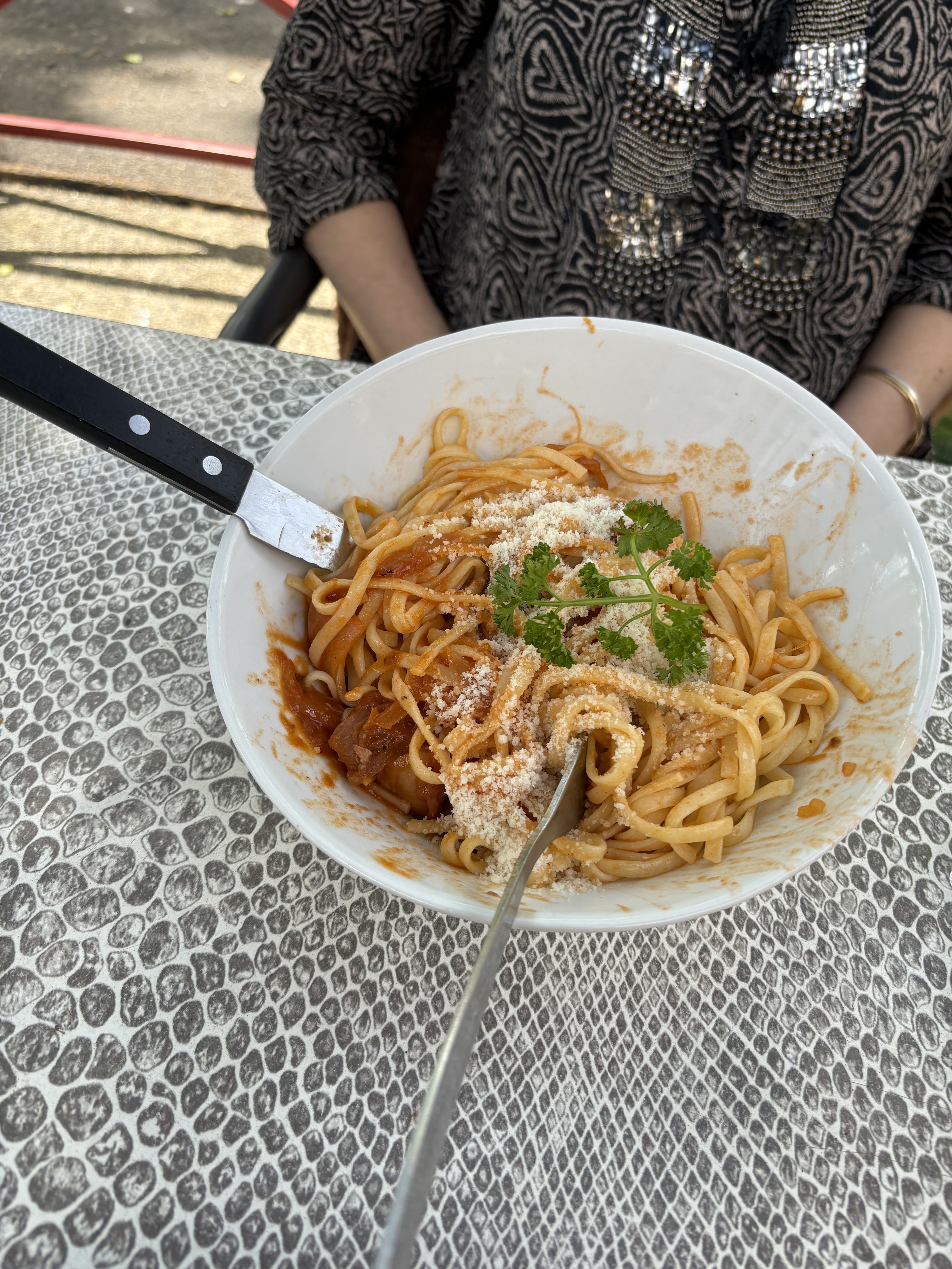 Très bon accueil, enfin un Virgin Mojito digne de ce nom sans des tonnes de glaces et de quoi boire tout le repas. Excellentes Carbo (prix très raisonnable). Dommage je n’ai pas eu le temps de goûter un dessert (cause départ du train).