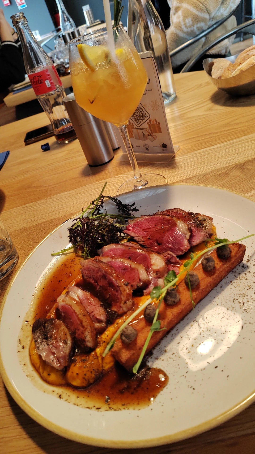 Resto sympa on a très bien manger On a pris une planche rillette maison pour l'apéro ensuite Magret d'oie excellent personnels agréable. Nous avions une Wonderbox qui nous a été déduit de la note totale . Je vous le recommande