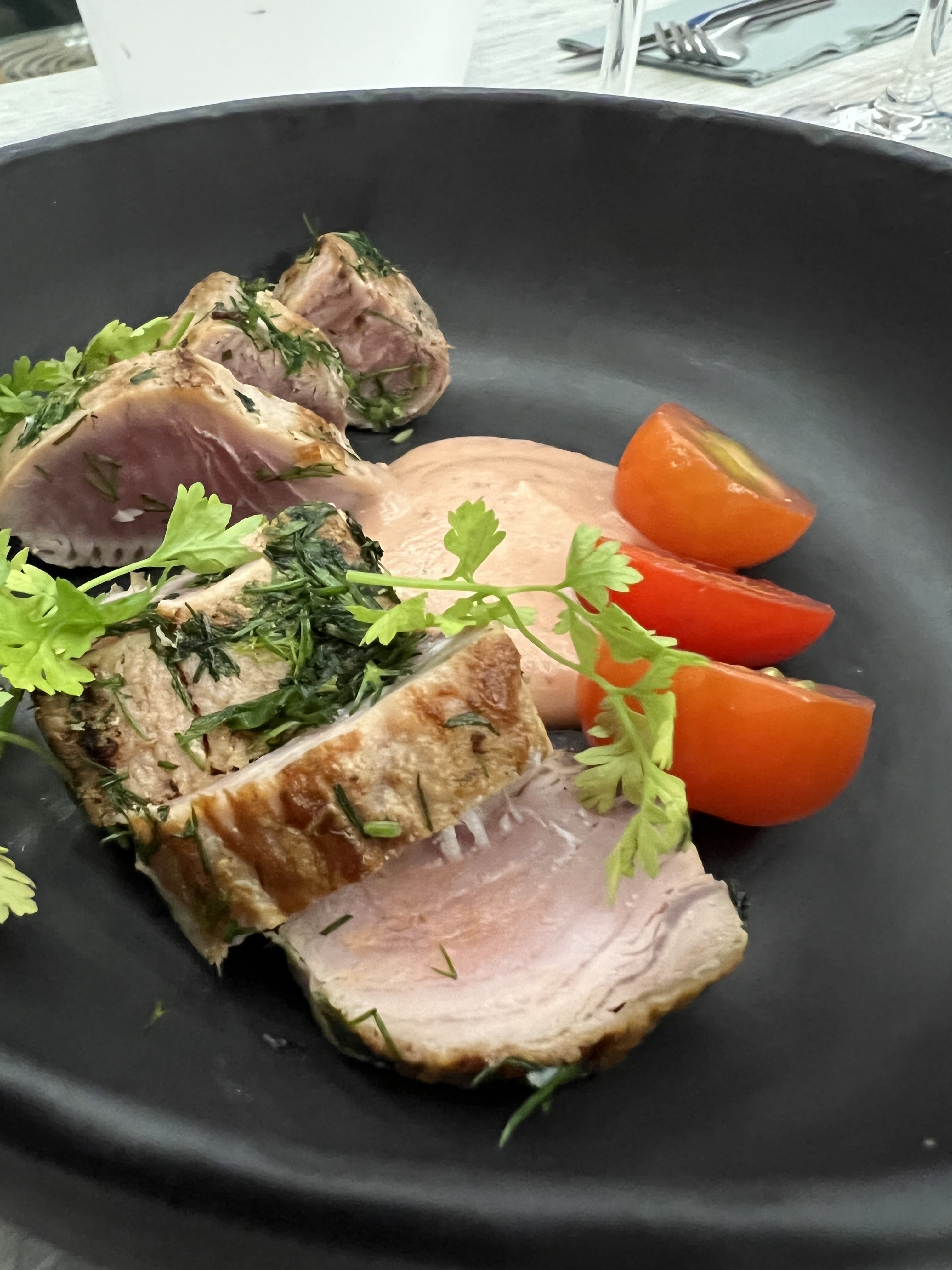 Du cocktail au dessert en passant par l'entrée, le plat et le vin, tout était très bon. Assiette belle et raffinée, service impeccable. Je recommande totalement !