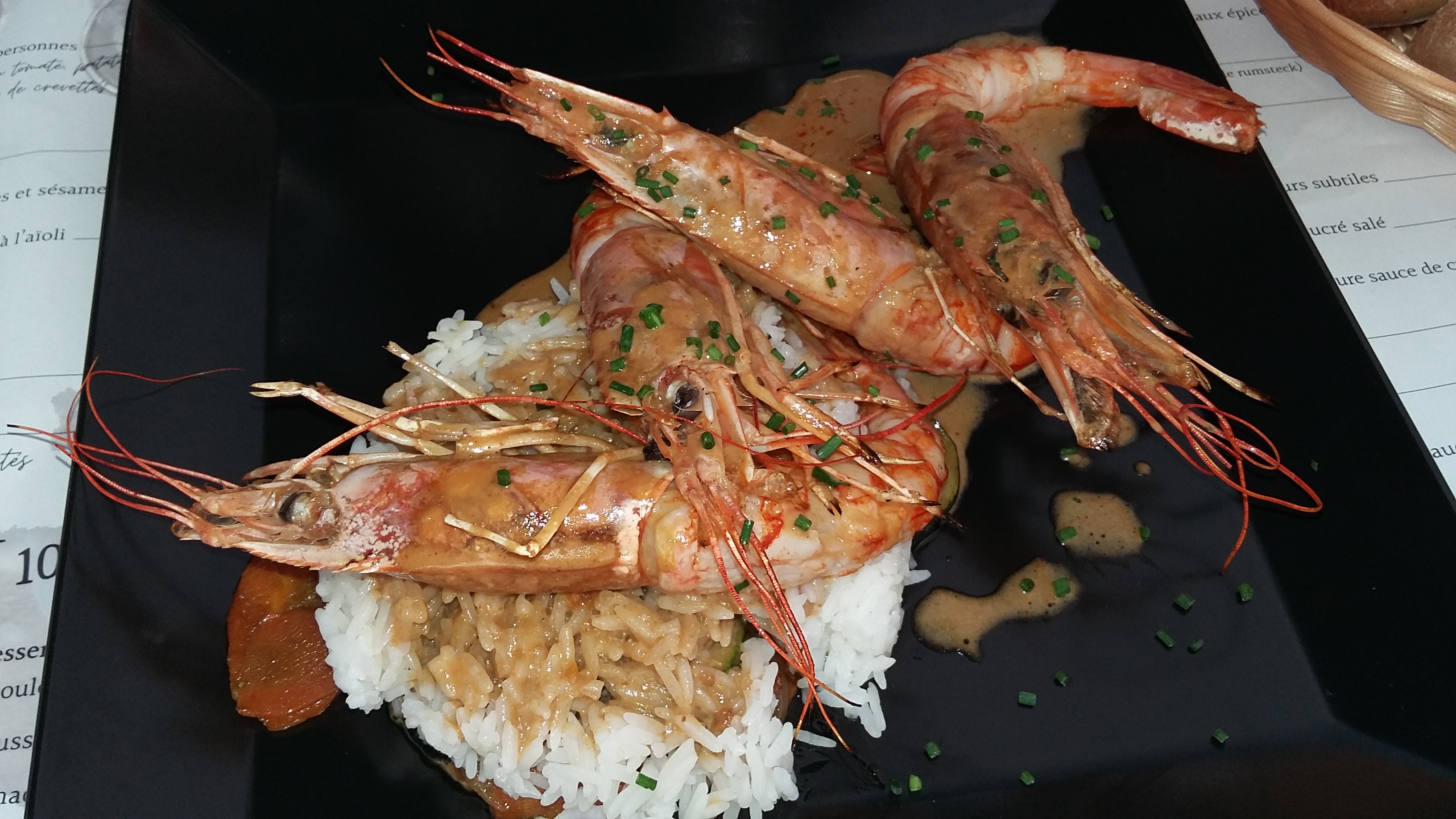 Accueil chaleureux. Repas en terrasse. Gambas délicieuses servies avec un riz parfumé et une ratatouille maison. Desserts maison panna cota fruits rouges. Tarif abordable pour une qualité remarquable.