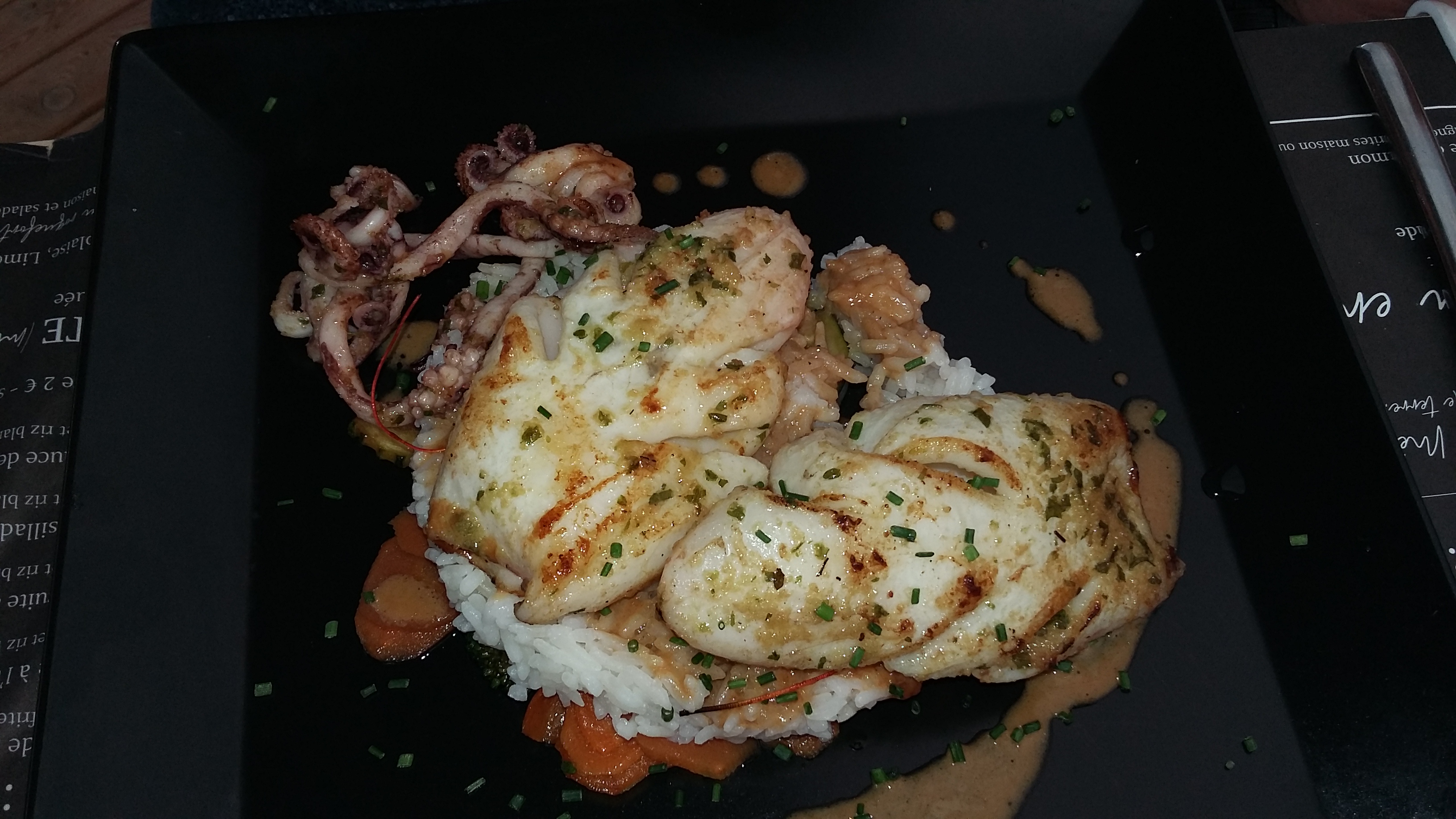 Très bonne adresse, à recommander. Gambas, calamars grillés, magret laqué ..même le menu enfant steak /frites a été dévoré ☺ Très bonne cuisine, accueil chaleureux.
