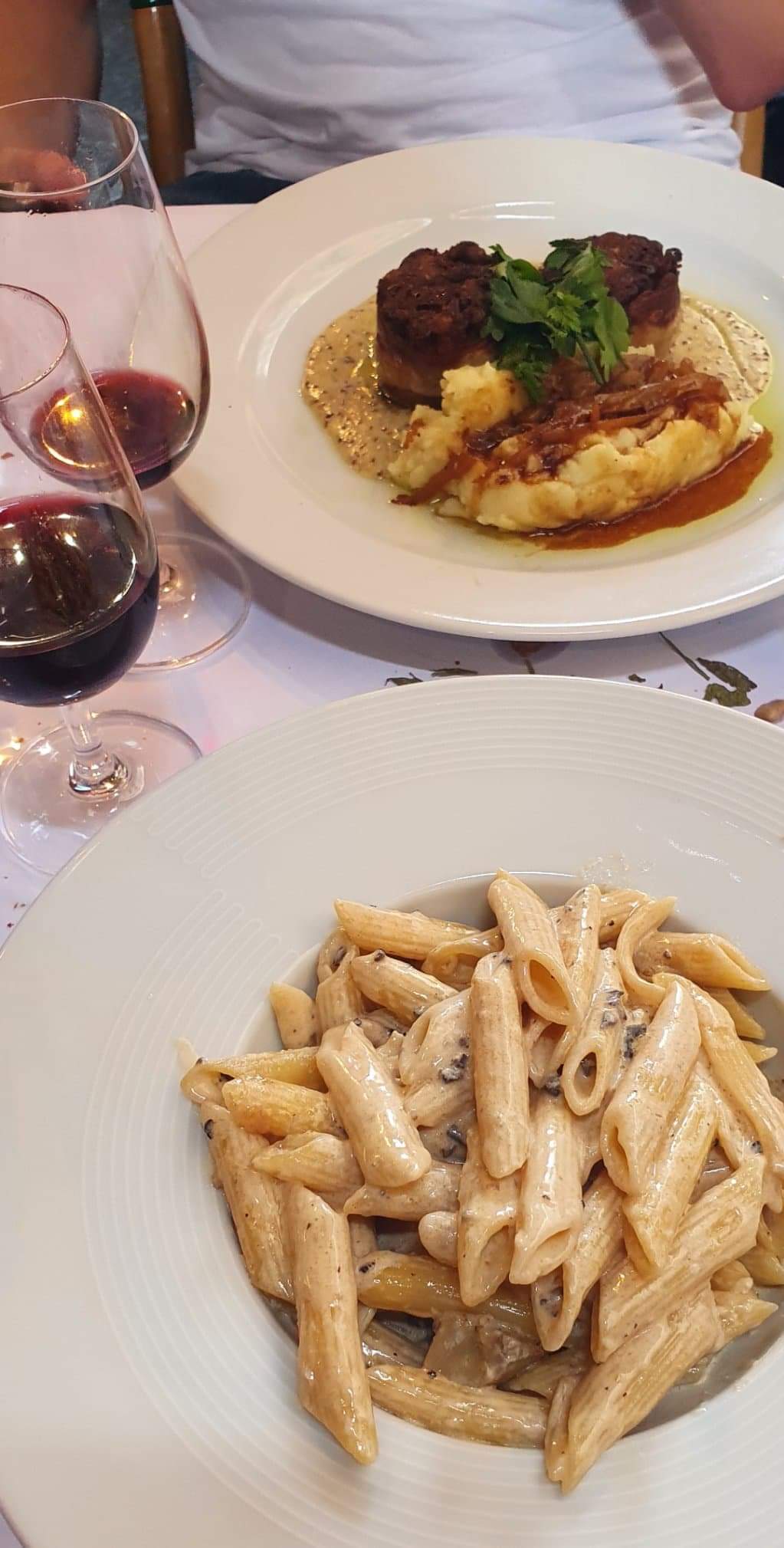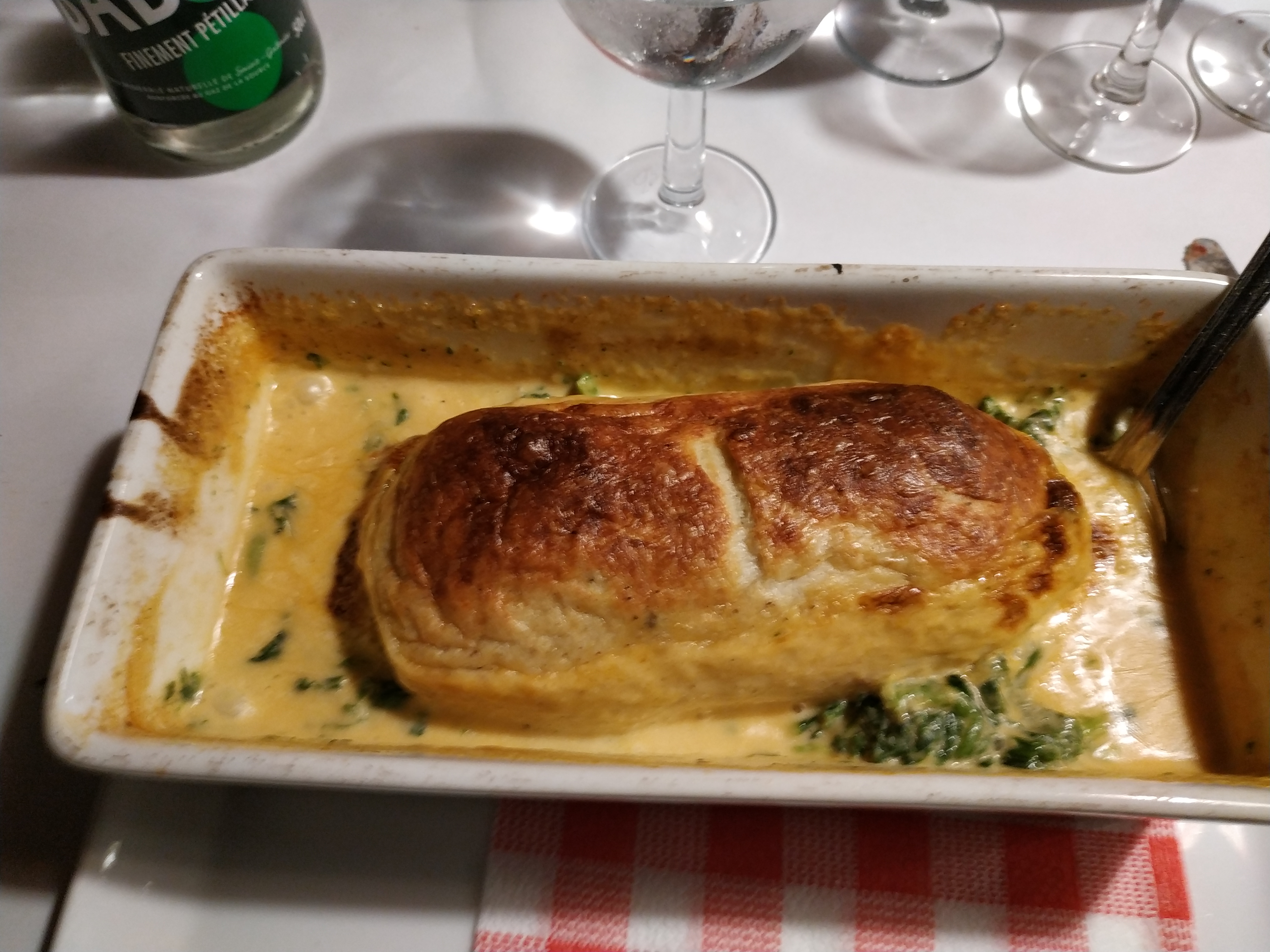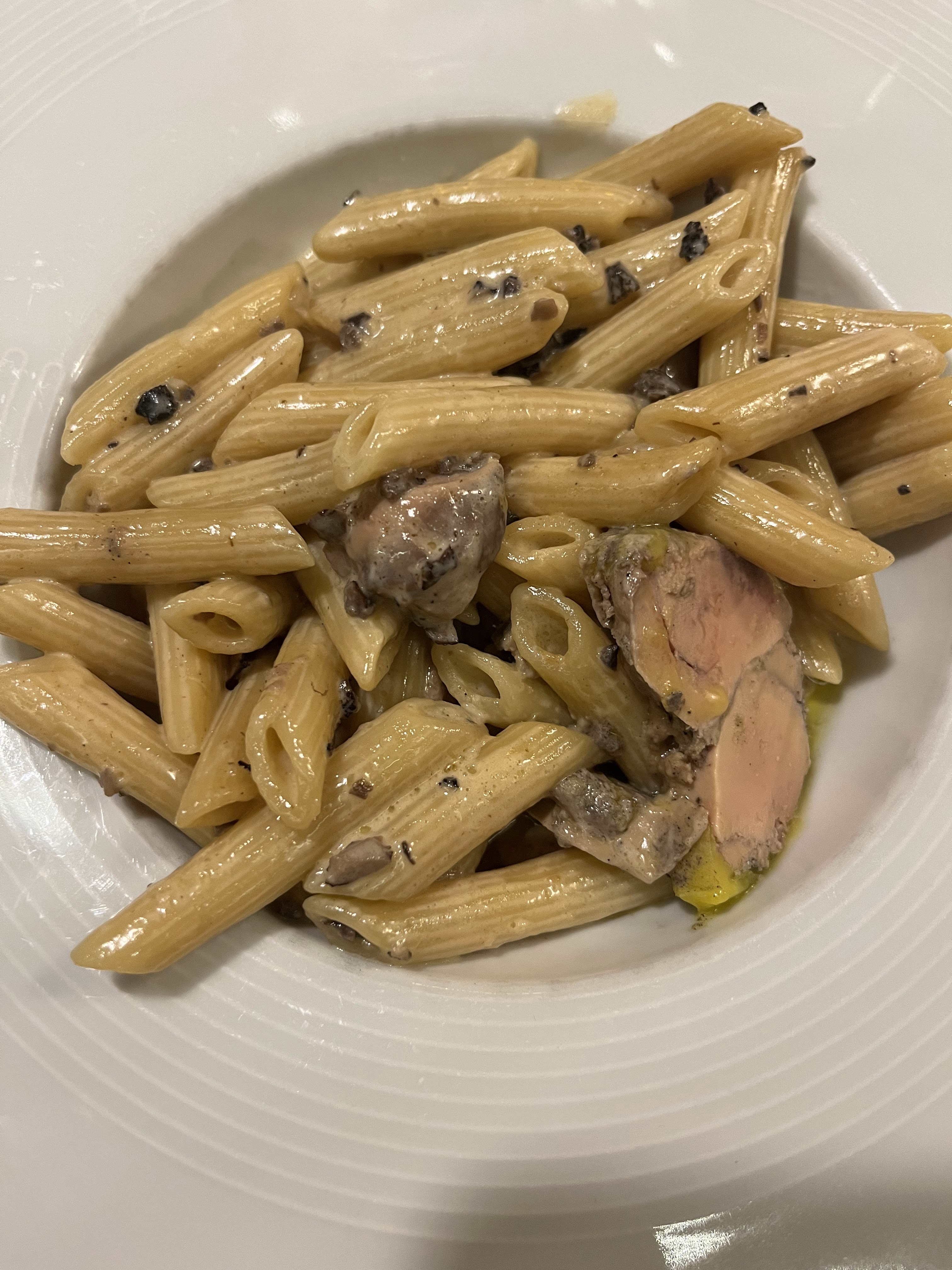 Plats délicieux (nous avons pris des Penne à la truffe et au foie gras et un Feuilleté de boudin noir). La carte du menu de printemps n’était pas très clair en ce qui concerne les plats et entrées. Nous avons aussi l’accueil peu chaleureux, et les serveurs et peu froids…