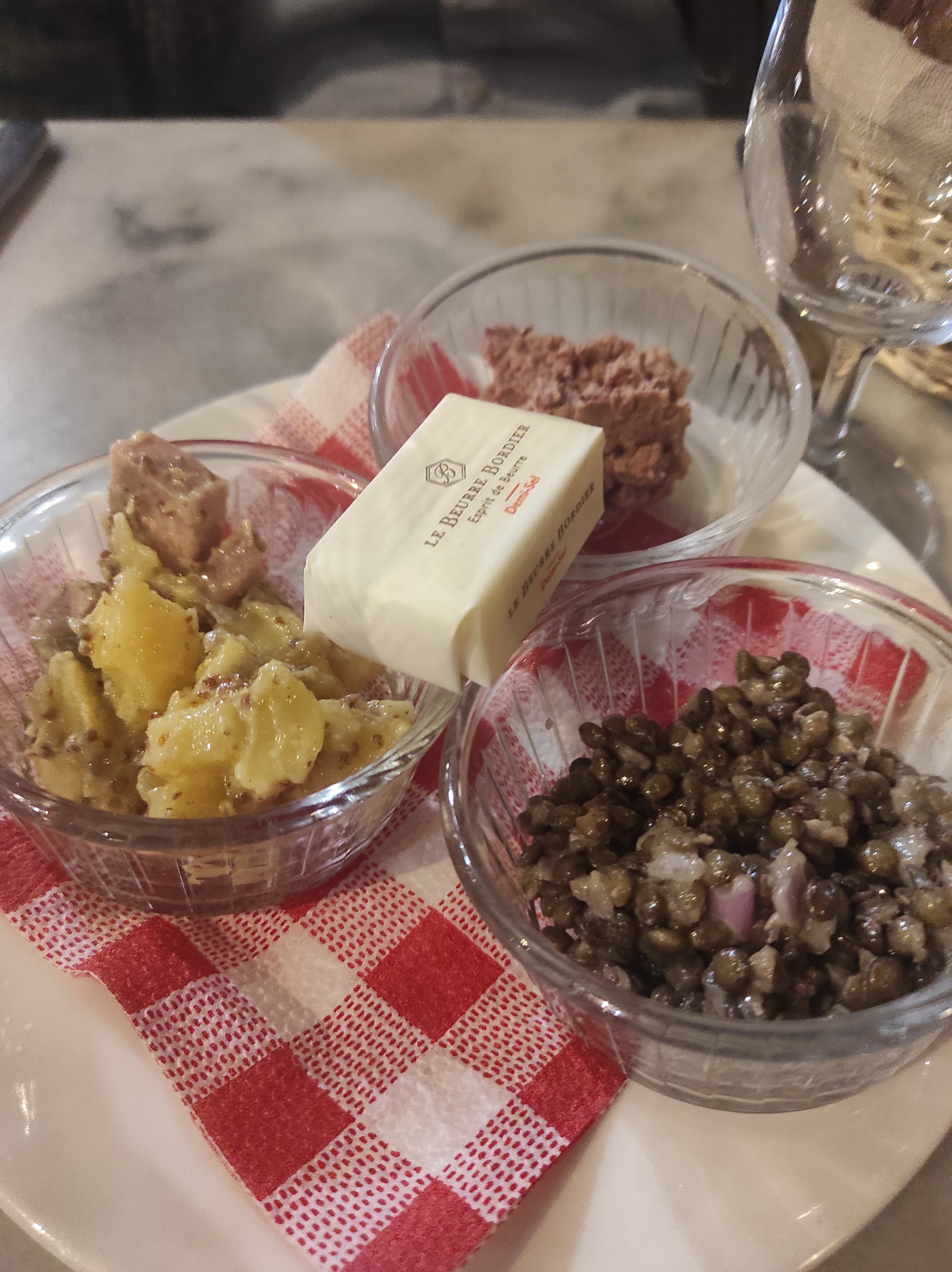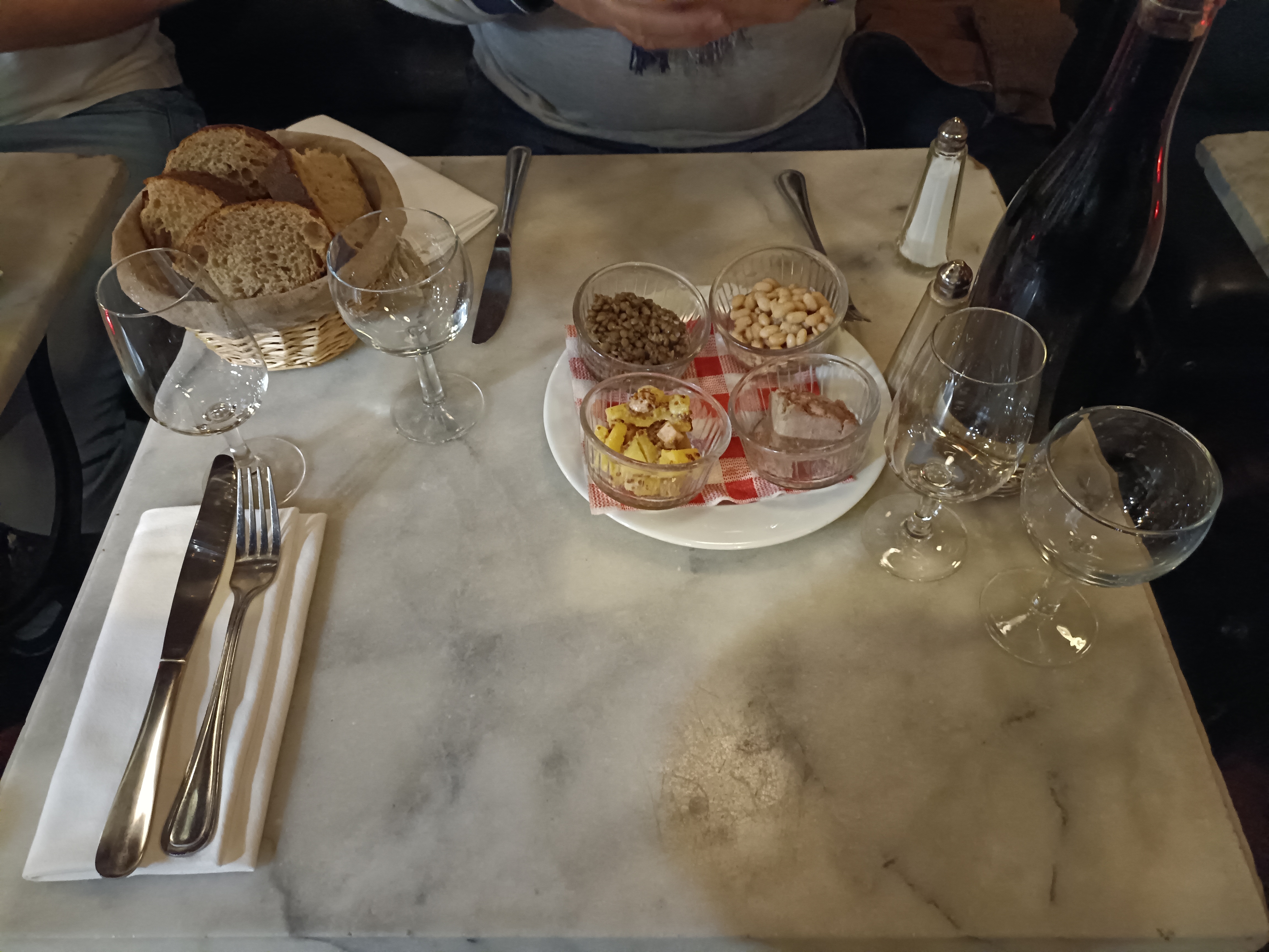 Un repas très agréable. L'occasion était particulière. La retrouvaille d'un ami venu à Lyon pour la journée. J'ai été surpris par la proximité avec nos voisins, un couple. Même table en terrasse sans séparation. Mais on a fait connaissance et plaisanté. Ce ne fut pas gênant.