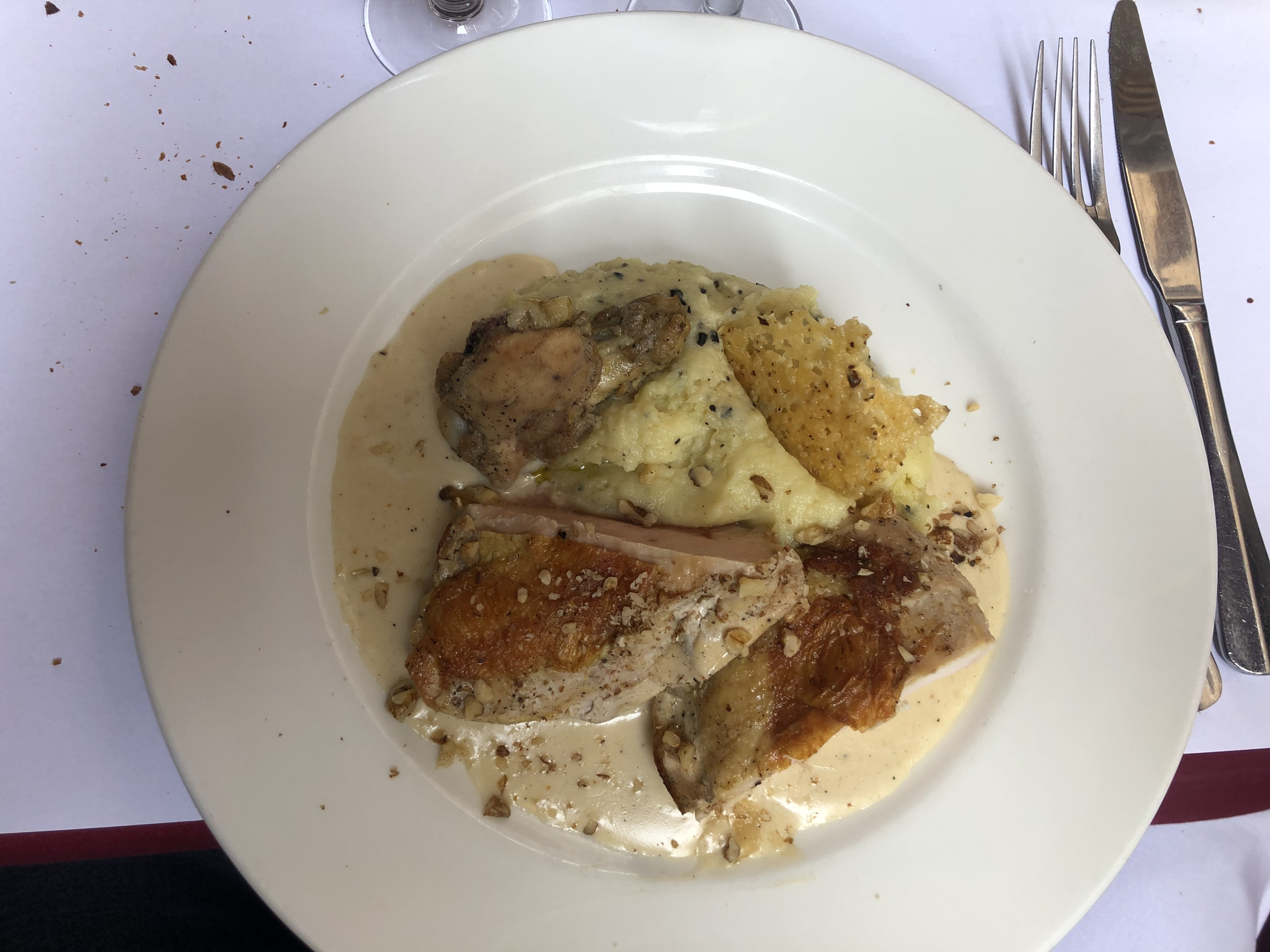 Excellente cuisine ! Foie gras, suprême de volaille un vrai délice. Très bon service dommage que l'on soit si serrés mais cela n'enlève rien à la beauté du lieu.
