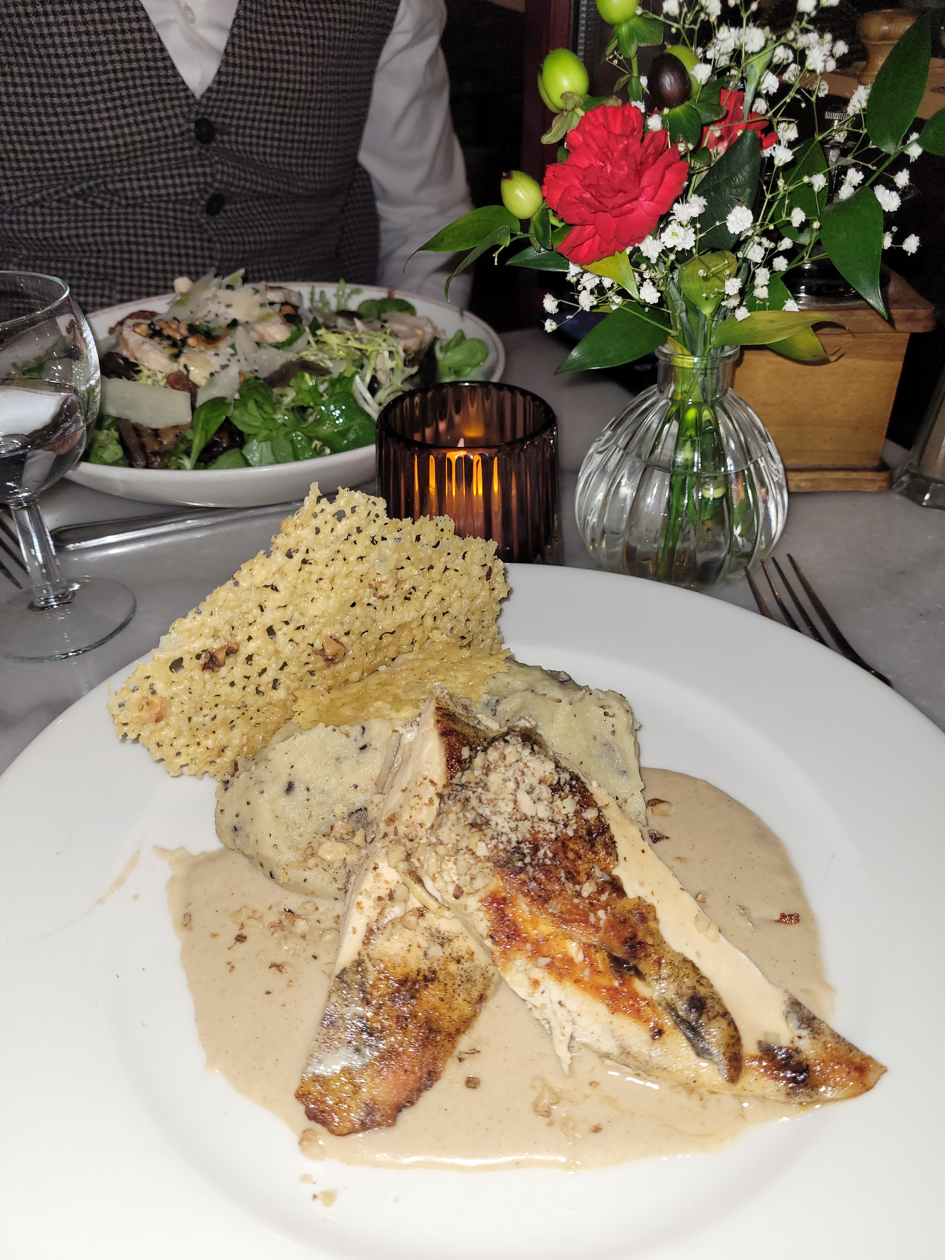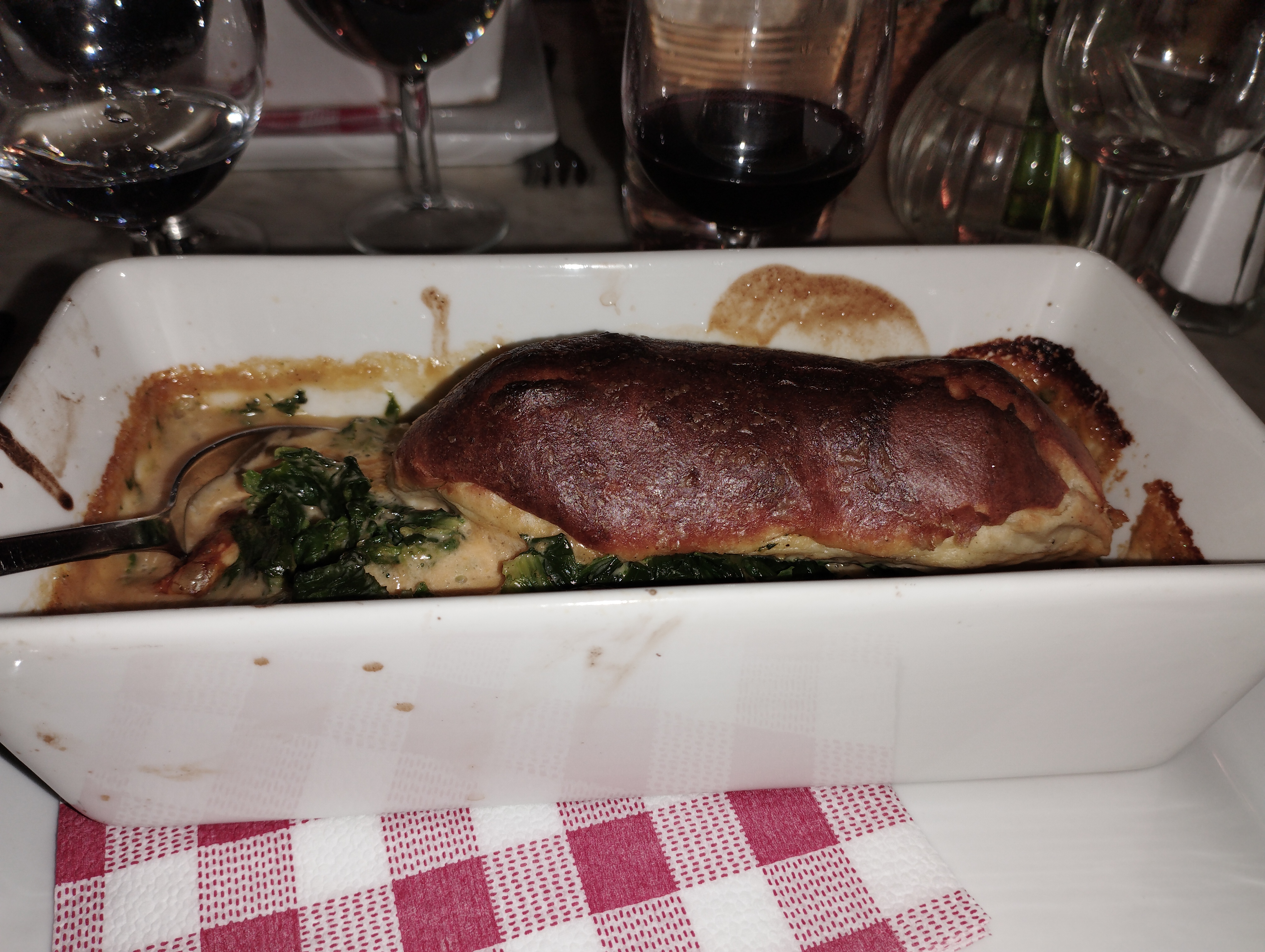 soirée de réveillon. beaucoup trop de réservations, trop d'attente pour être installé et servi, et serré dans la salle ; un serveur qui a renversé de la sauce sur une chemise sans excuse, ni geste commercial, mais la nourriture était bonne.